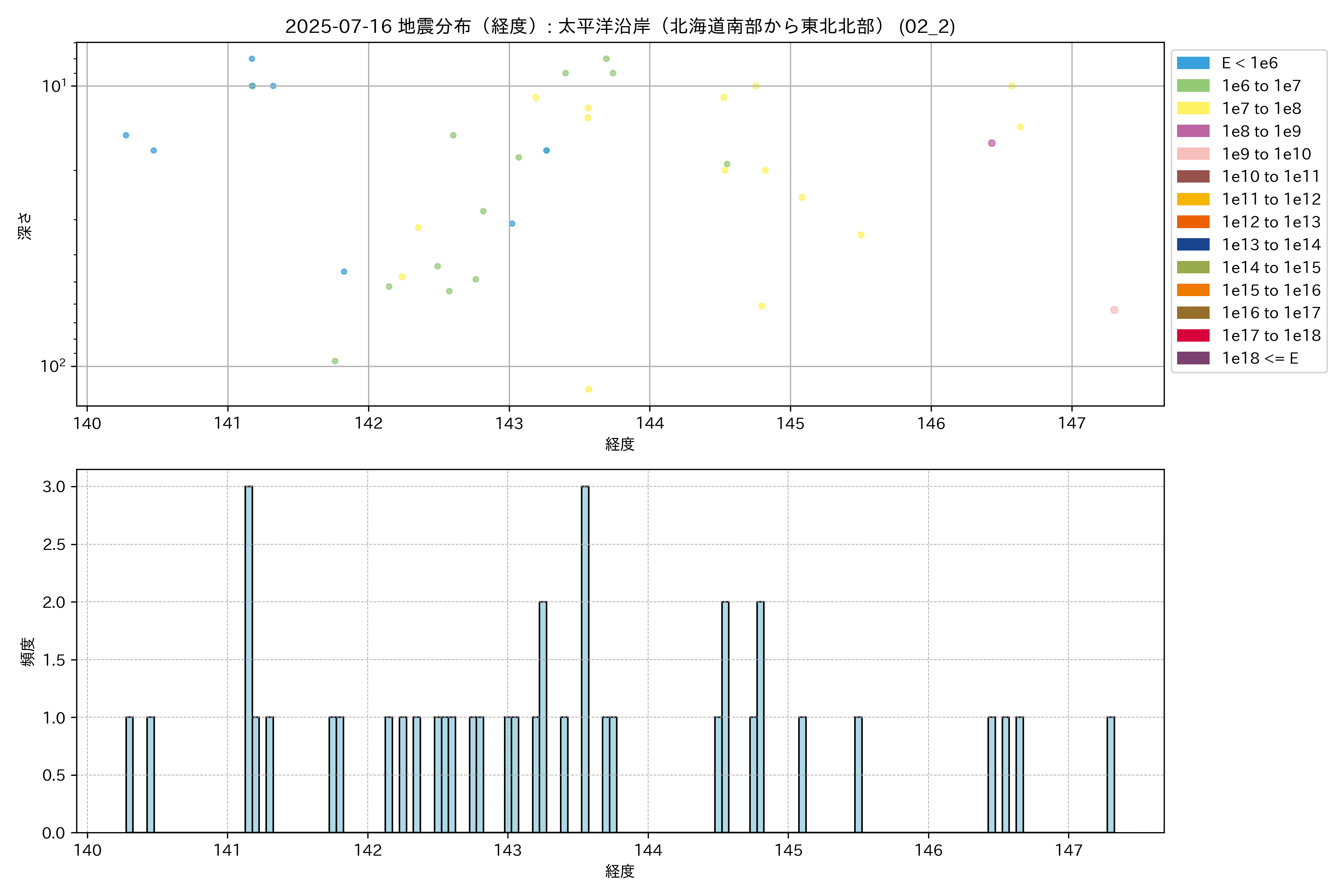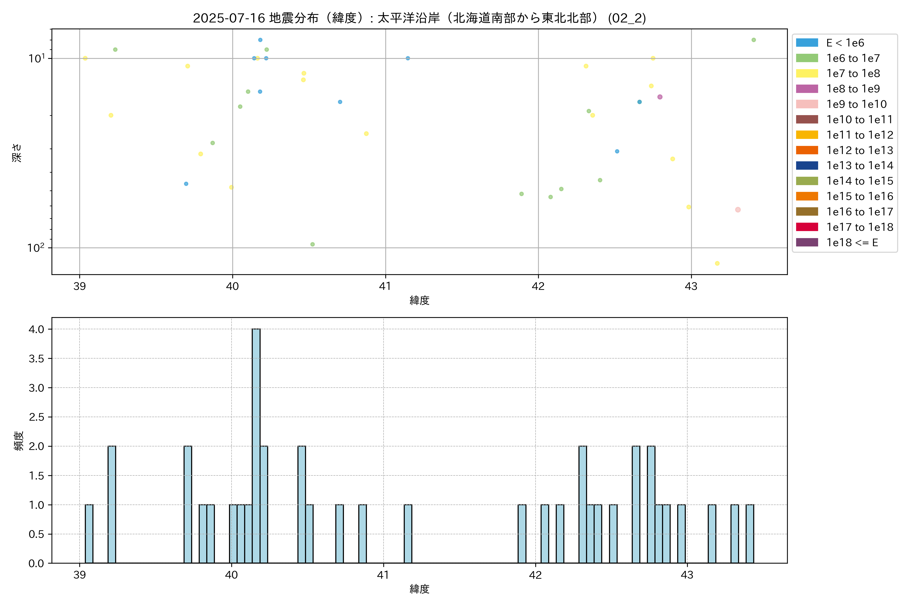2025年07月16日 太平洋沿岸(北海道南部から東北北部) エリア震源マップ