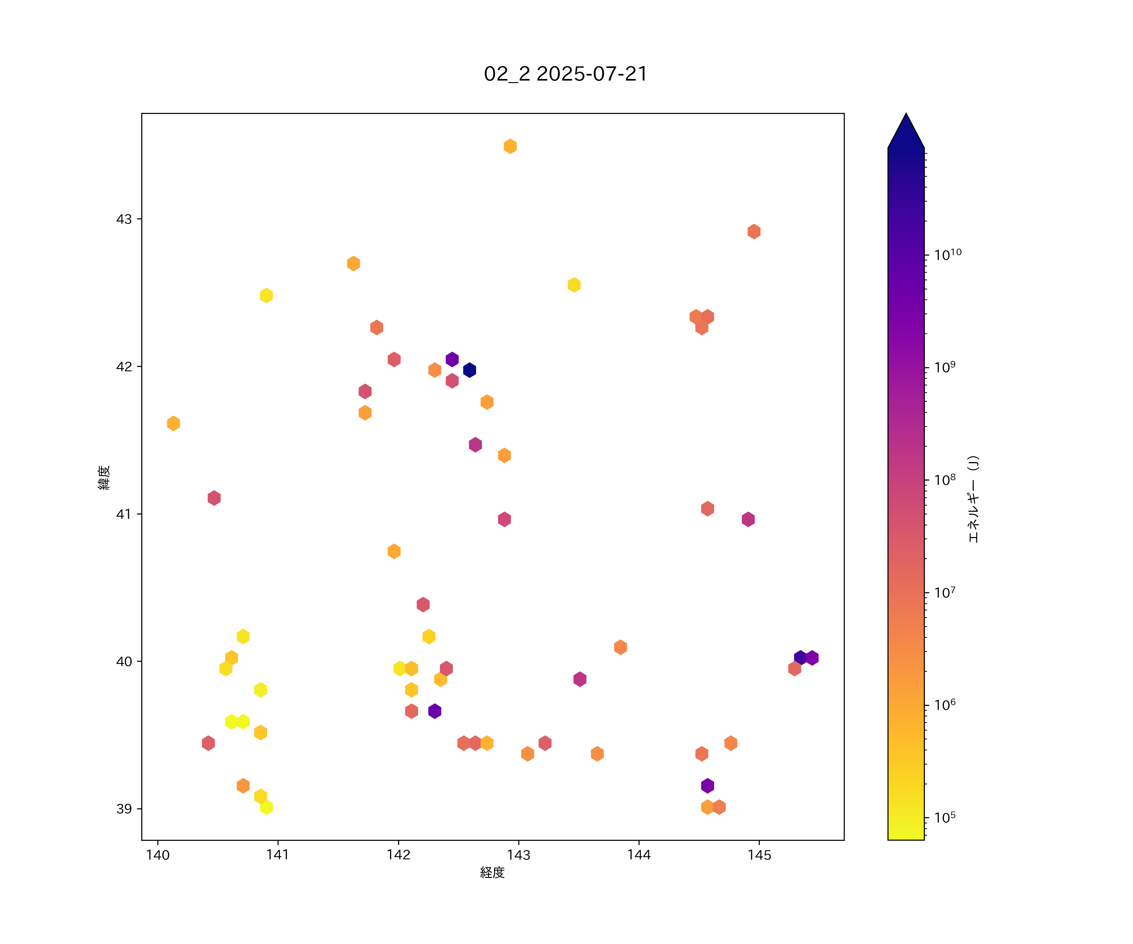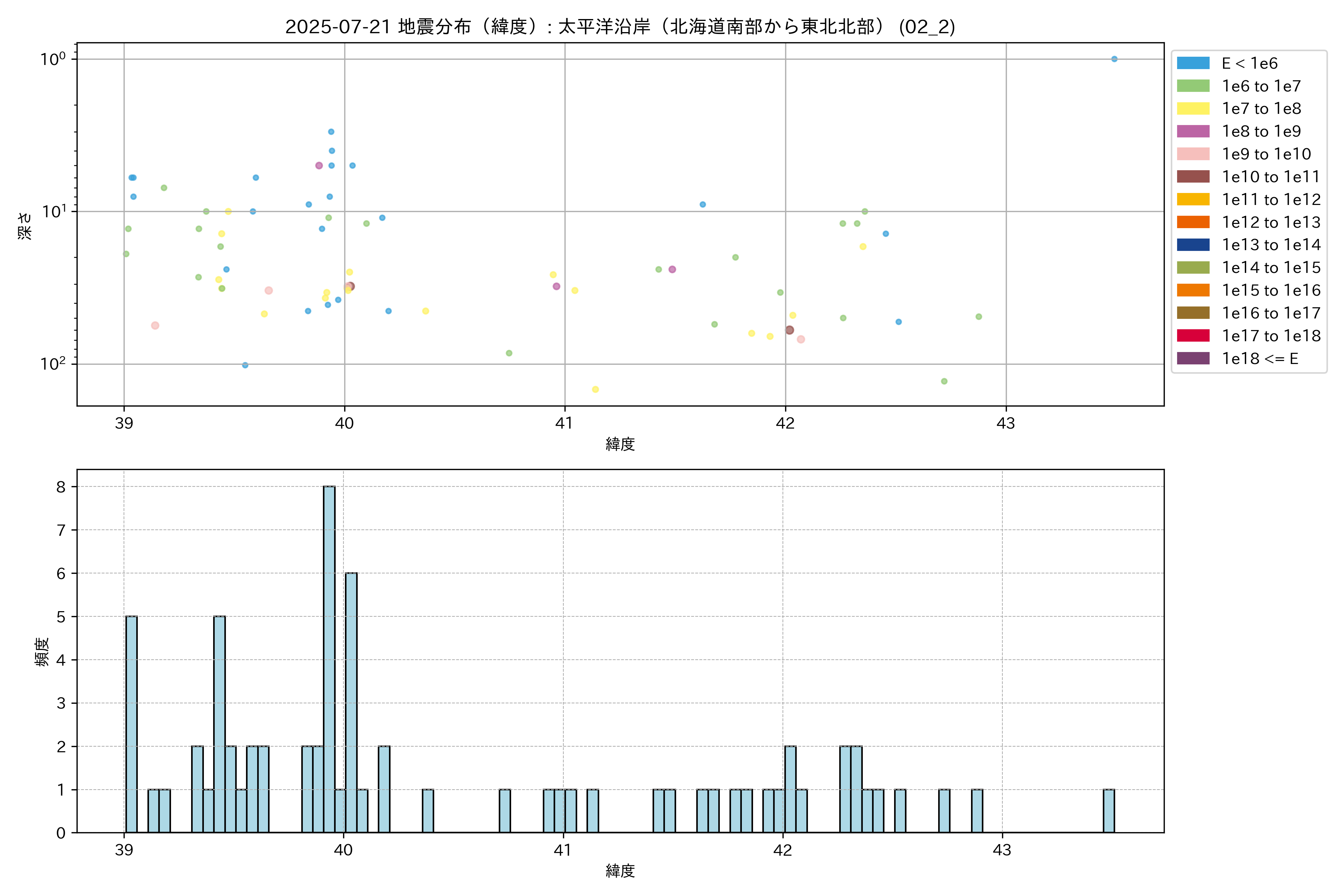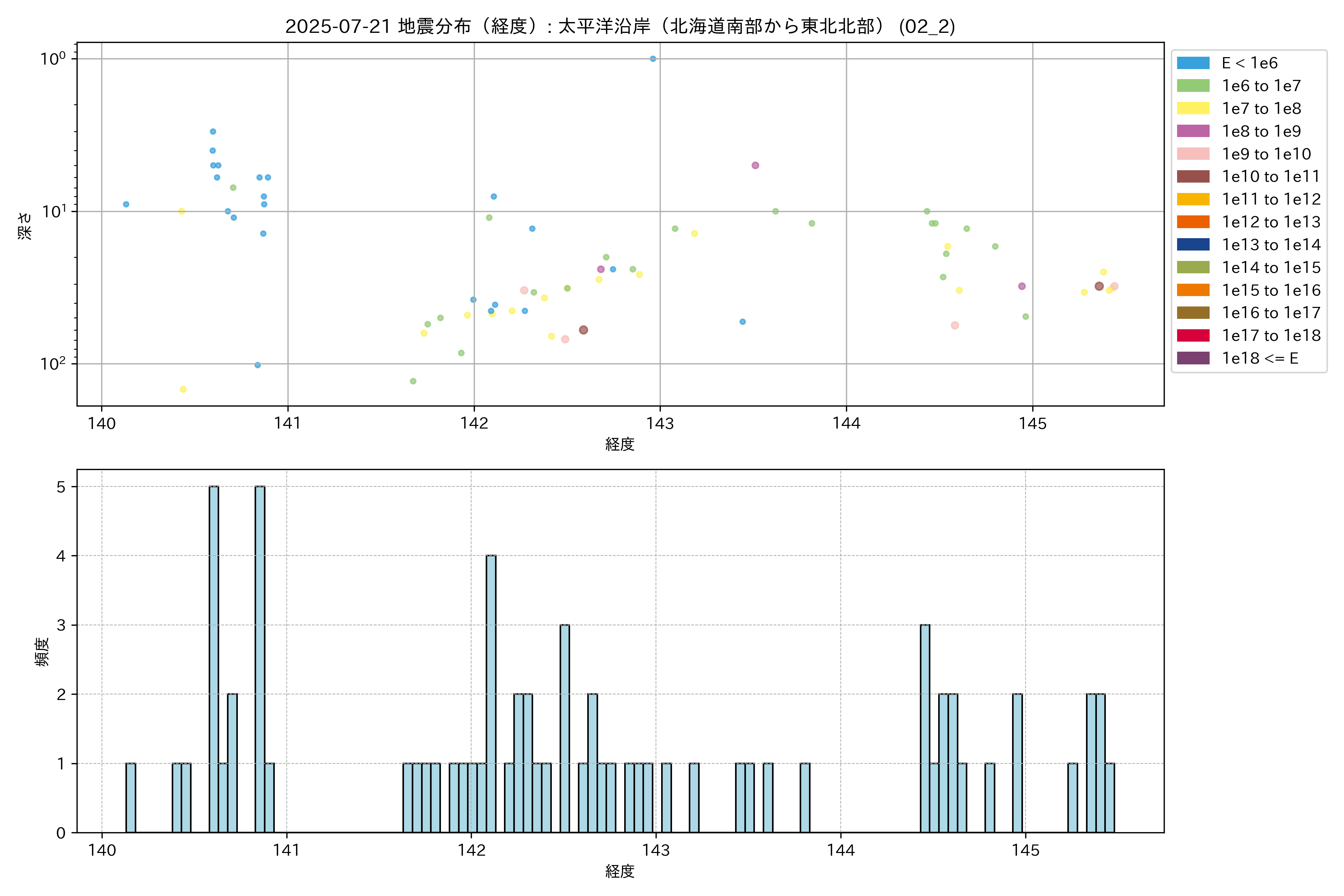 2025年07月21日 太平洋沿岸(北海道南部から東北北部) エリア震源マップ