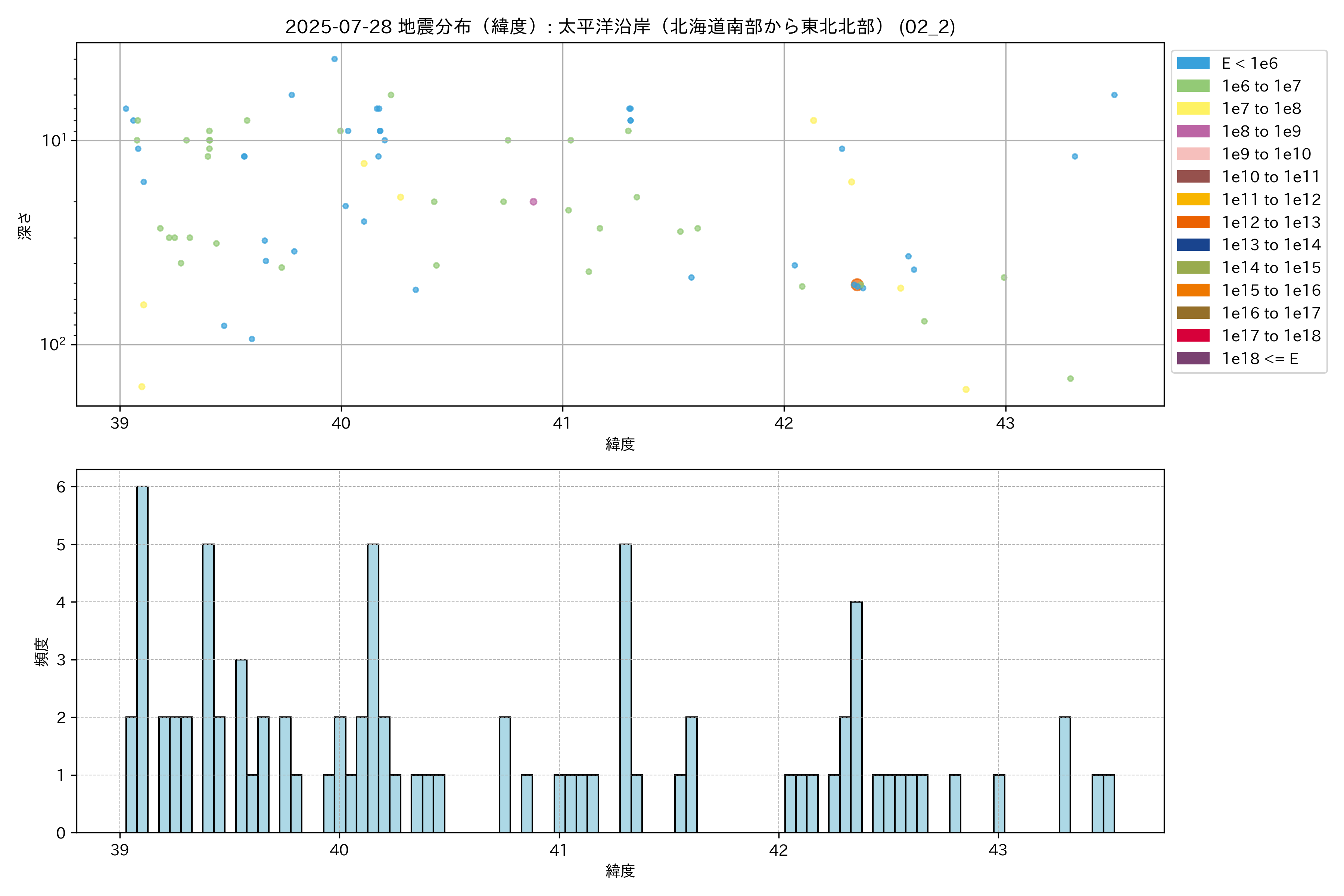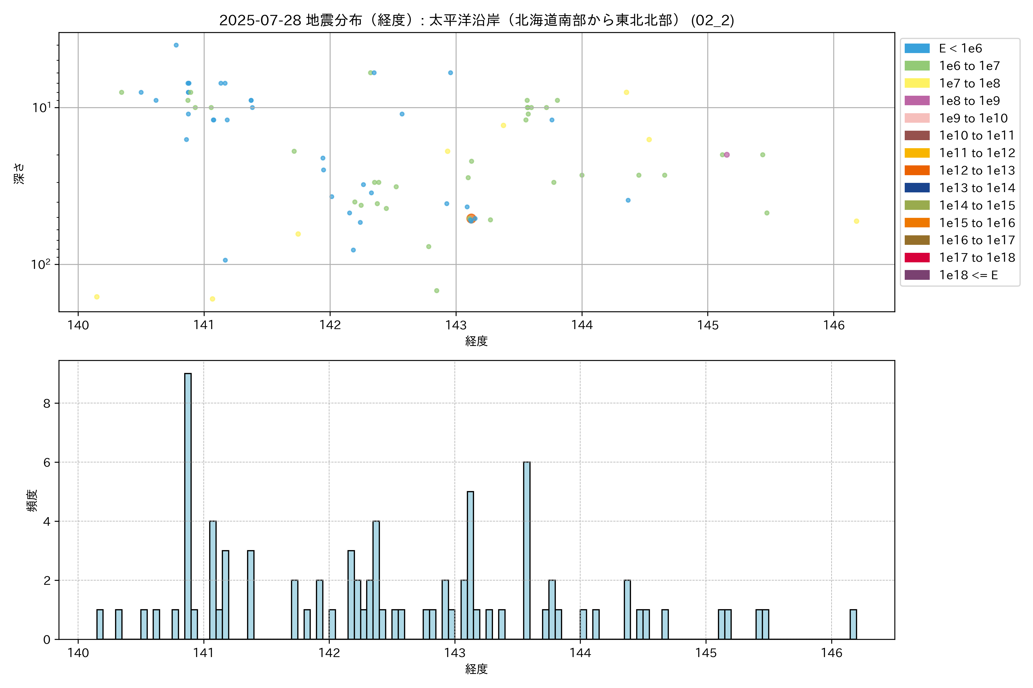2025年07月28日 太平洋沿岸(北海道南部から東北北部) エリア震源マップ