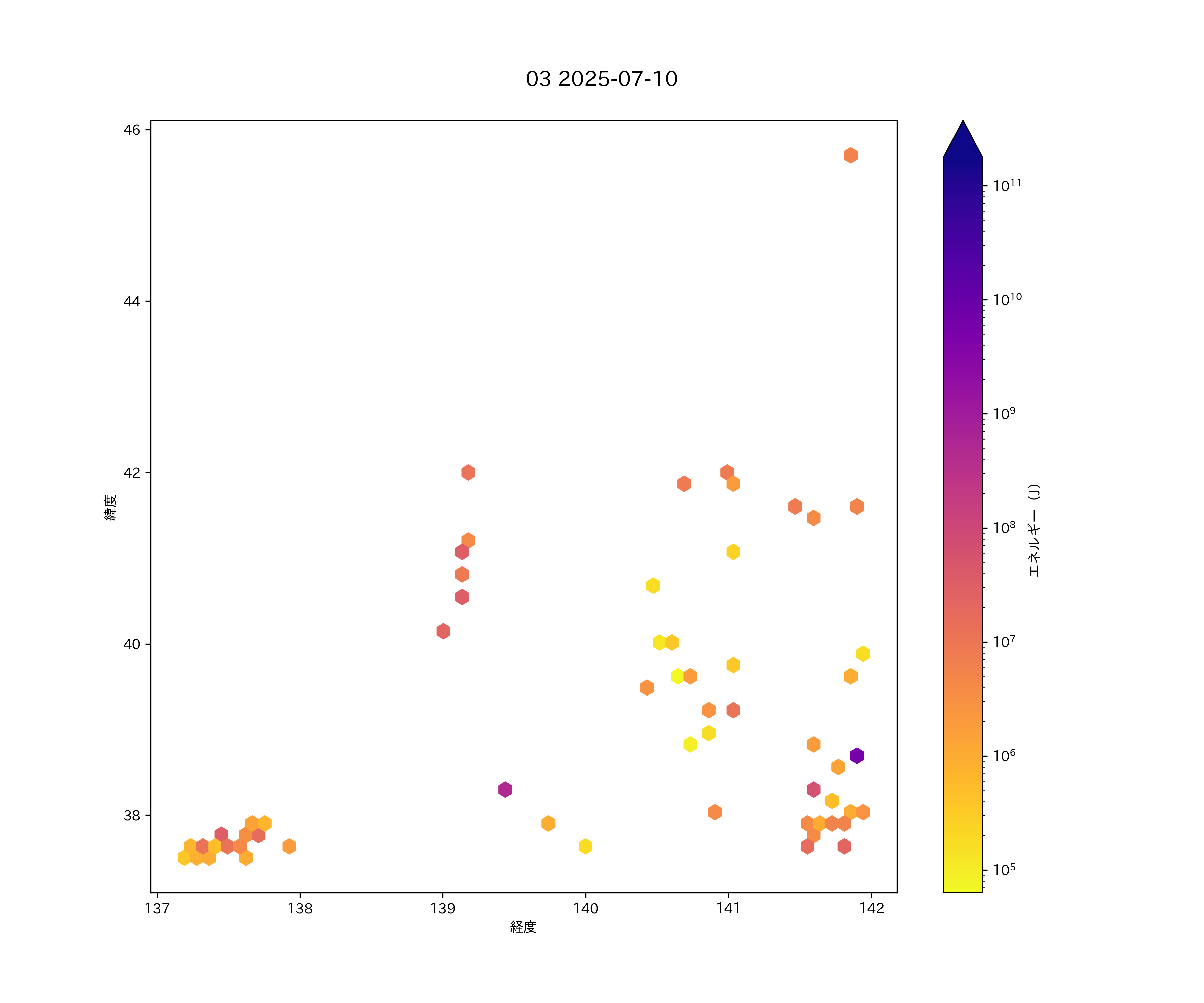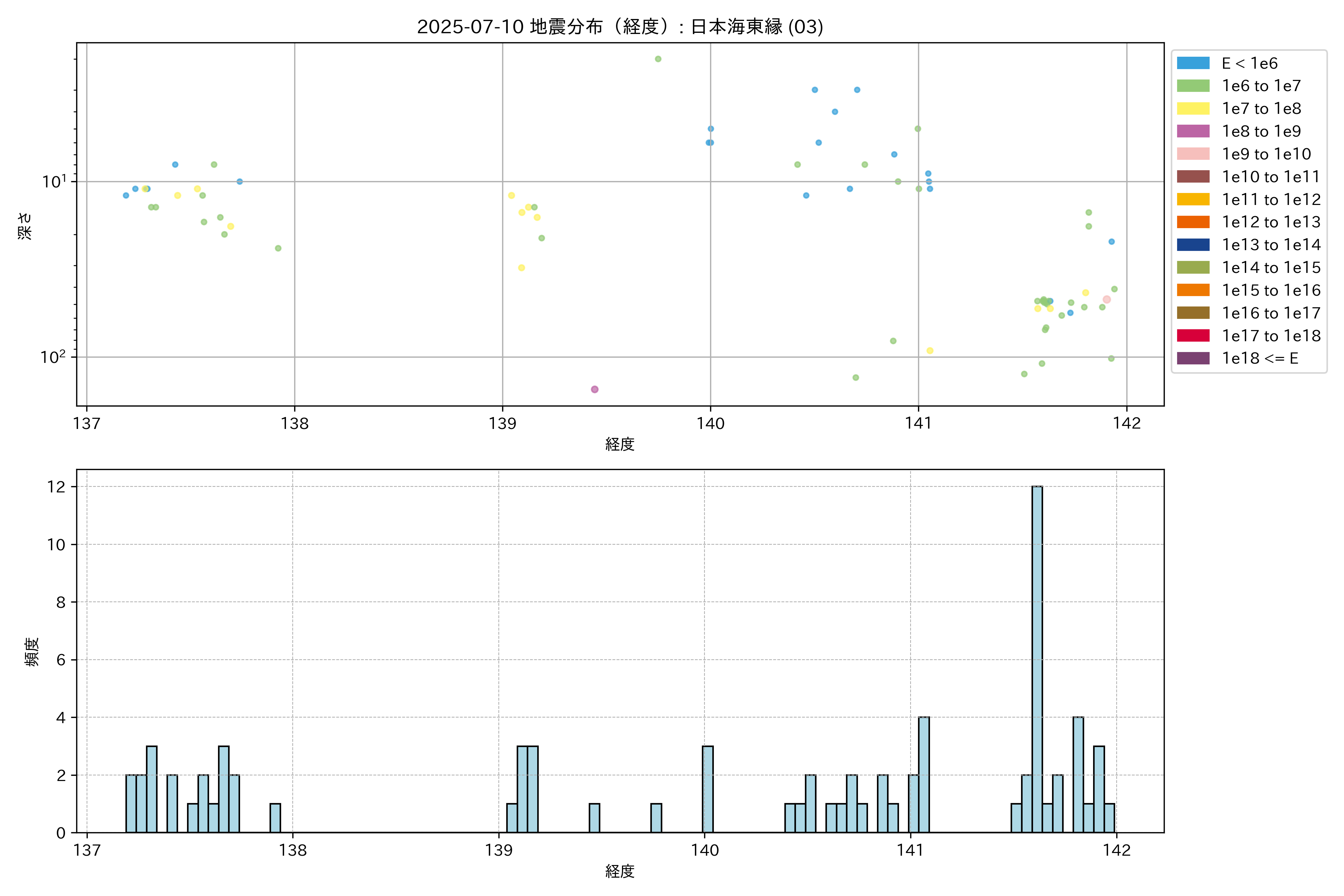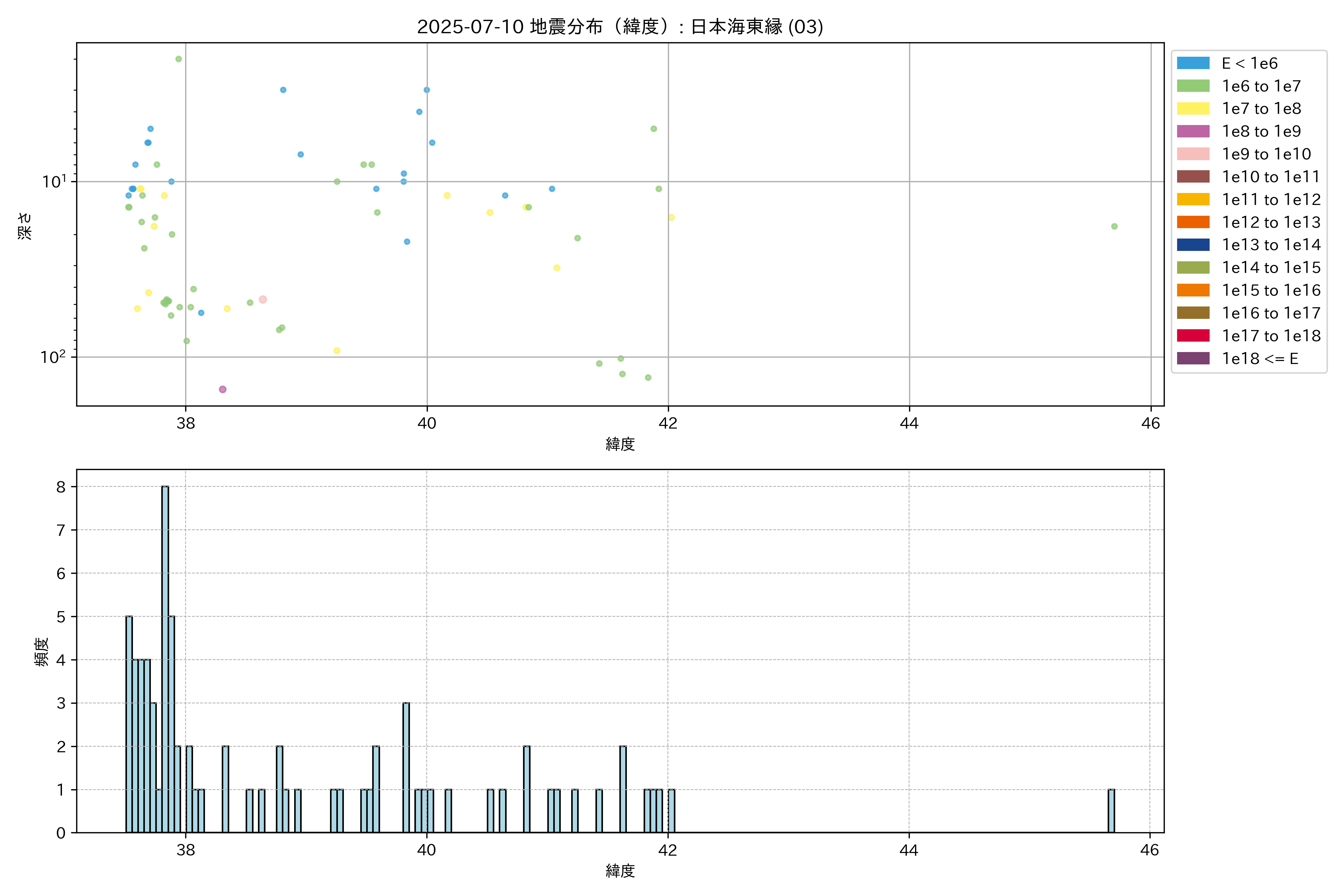 2025年07月10日 日本海東縁 エリア震源マップ