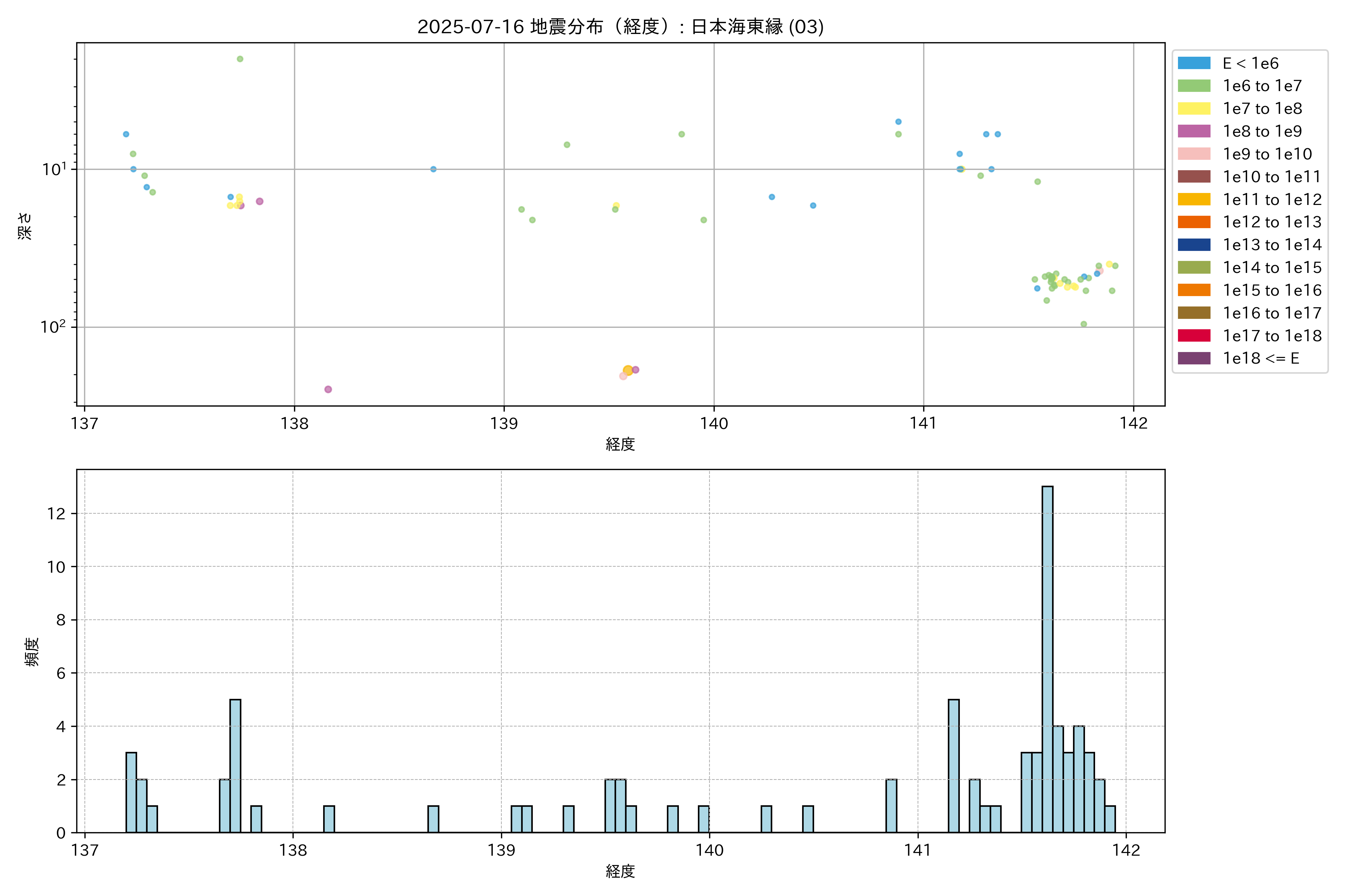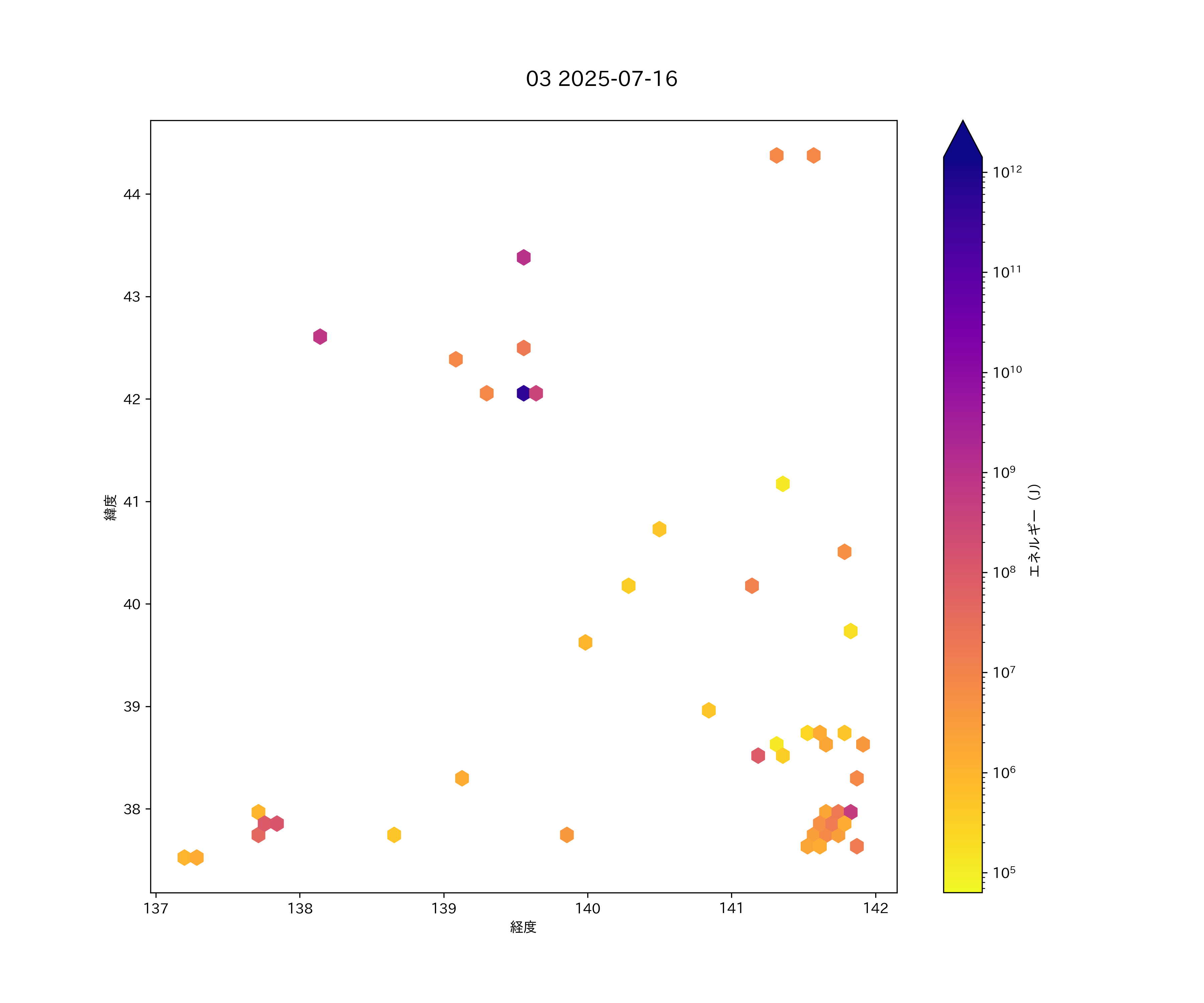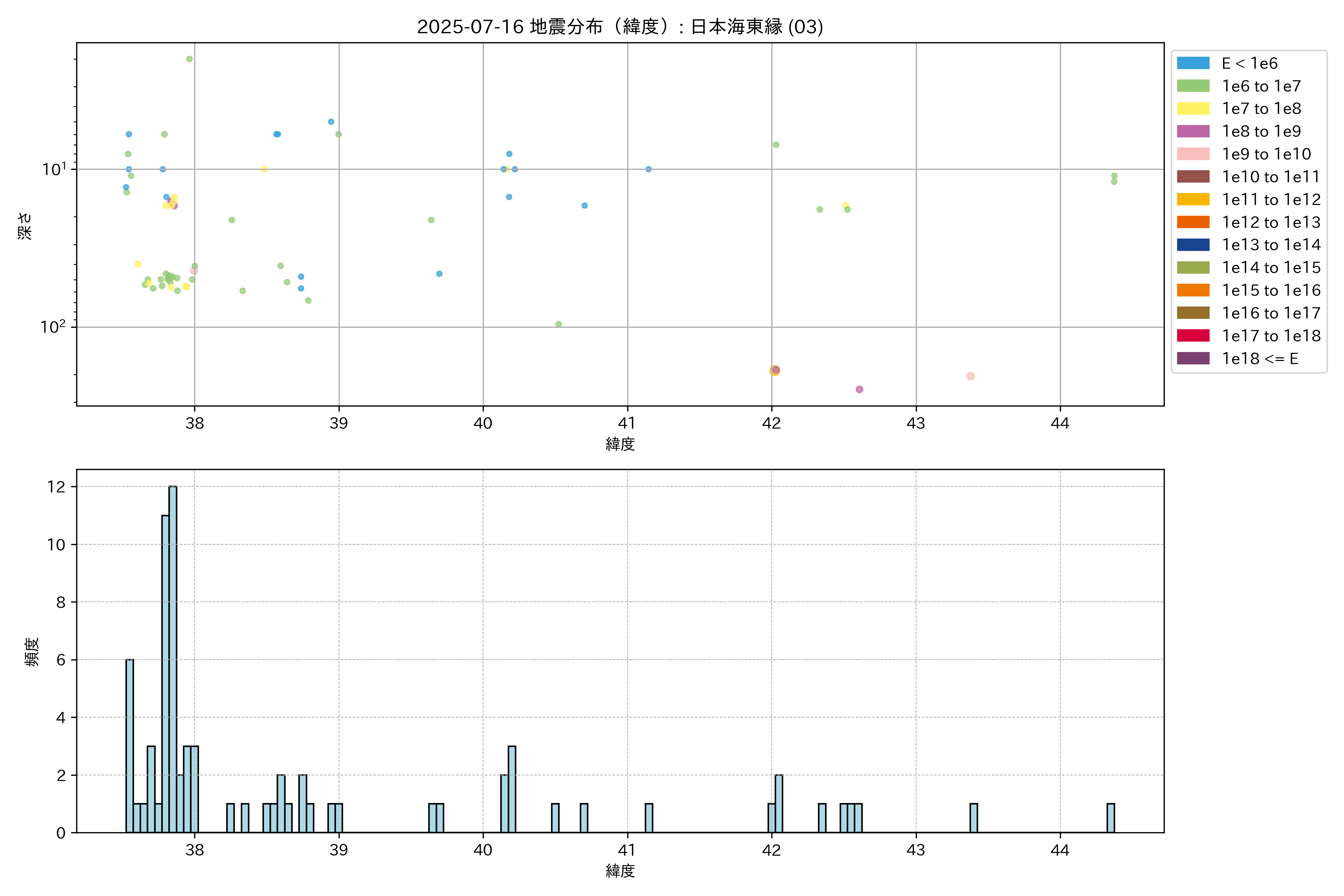 2025年07月16日 日本海東縁 エリア震源マップ