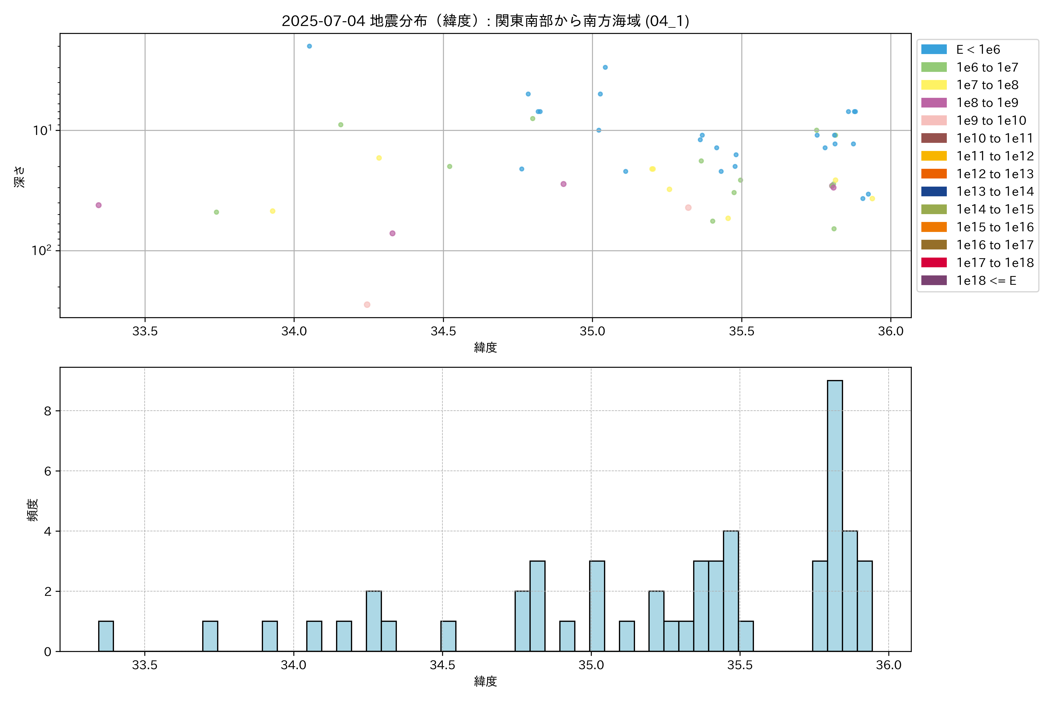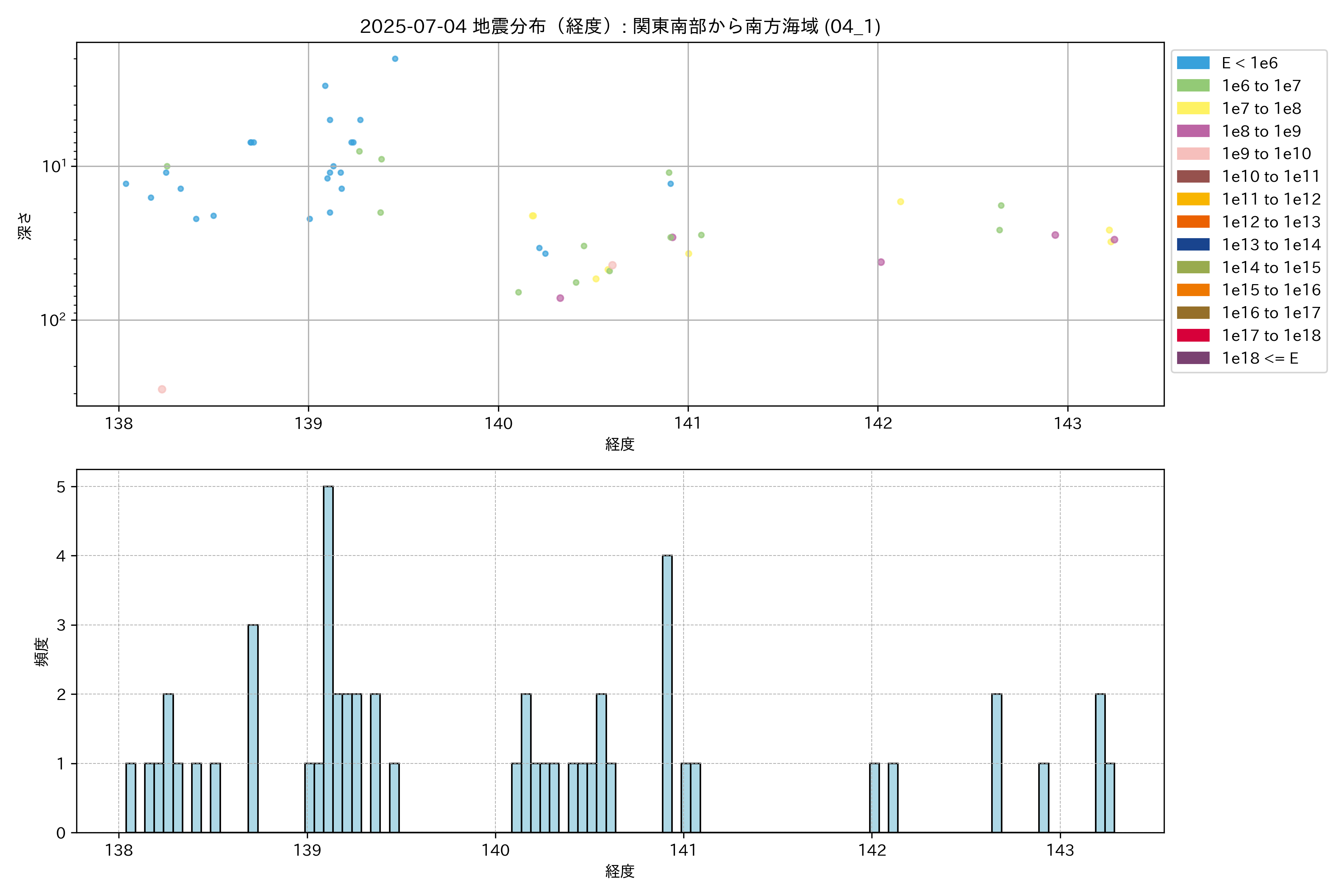 2025年07月04日 関東南部から南方海域 エリア震源マップ