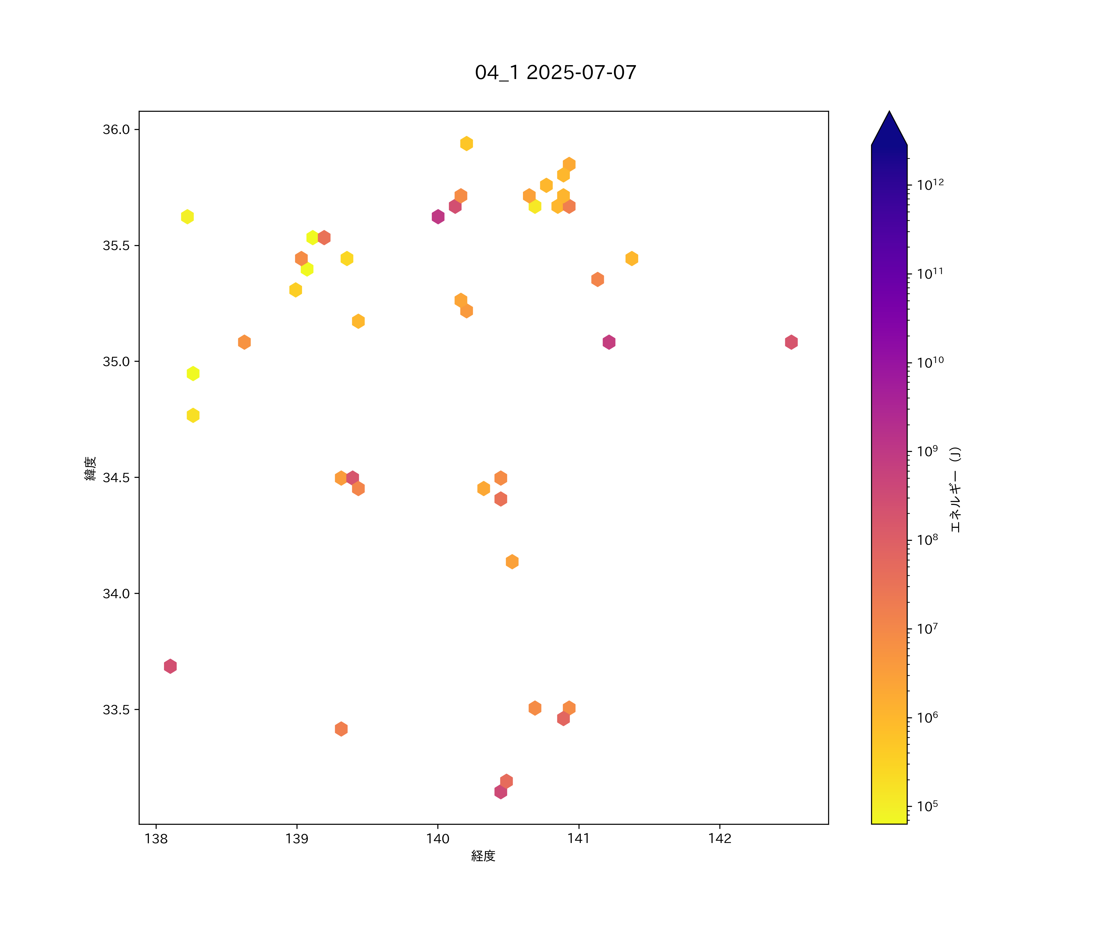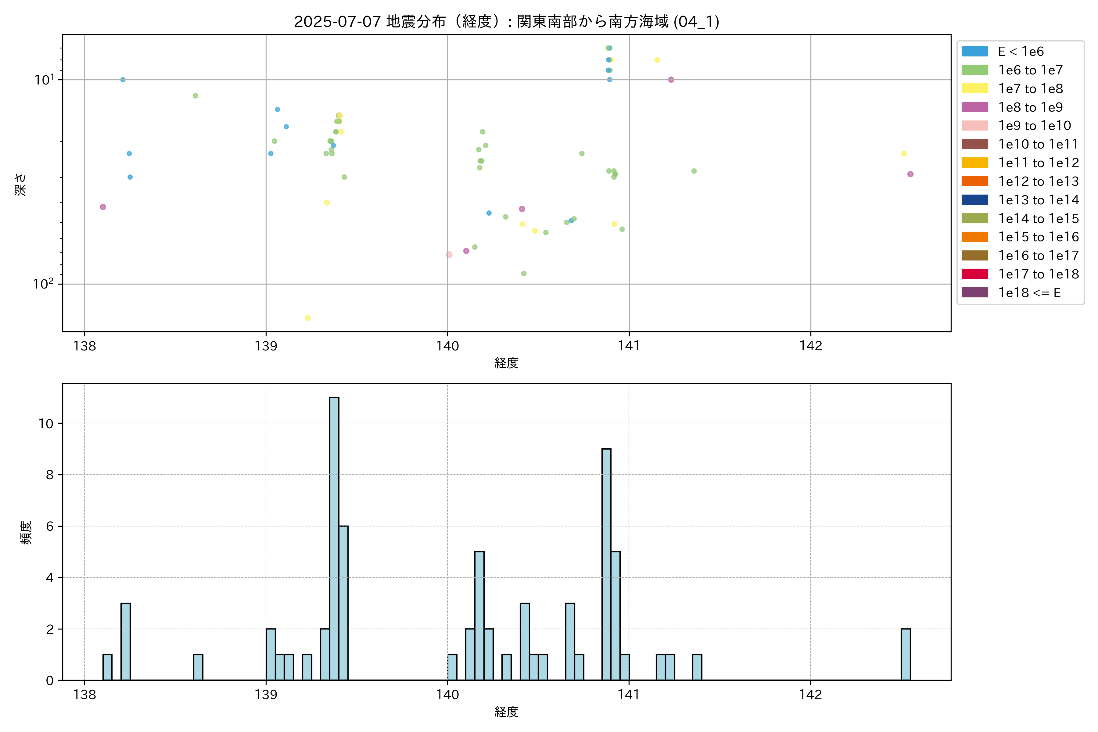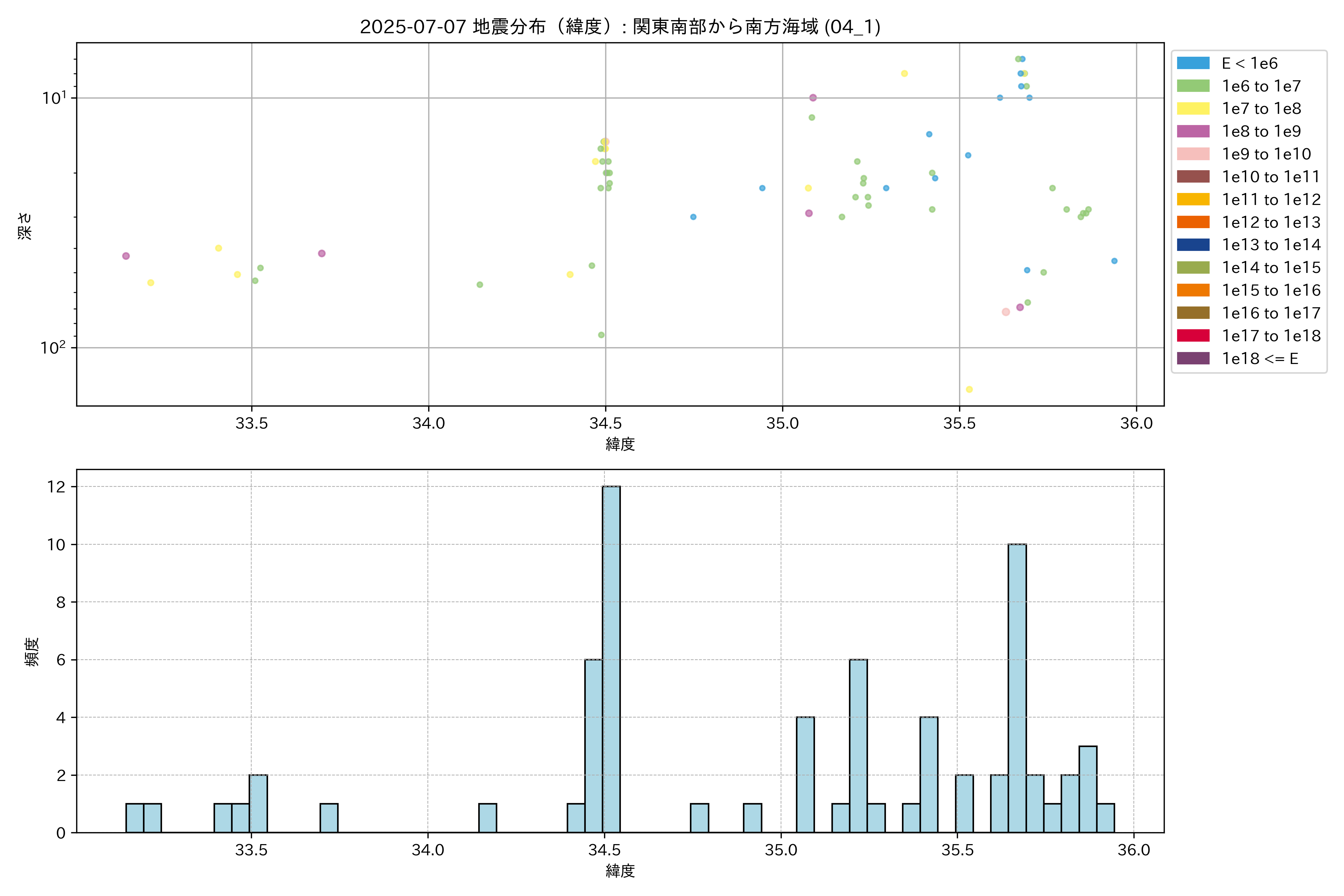 2025年07月07日 関東南部から南方海域 エリア震源マップ