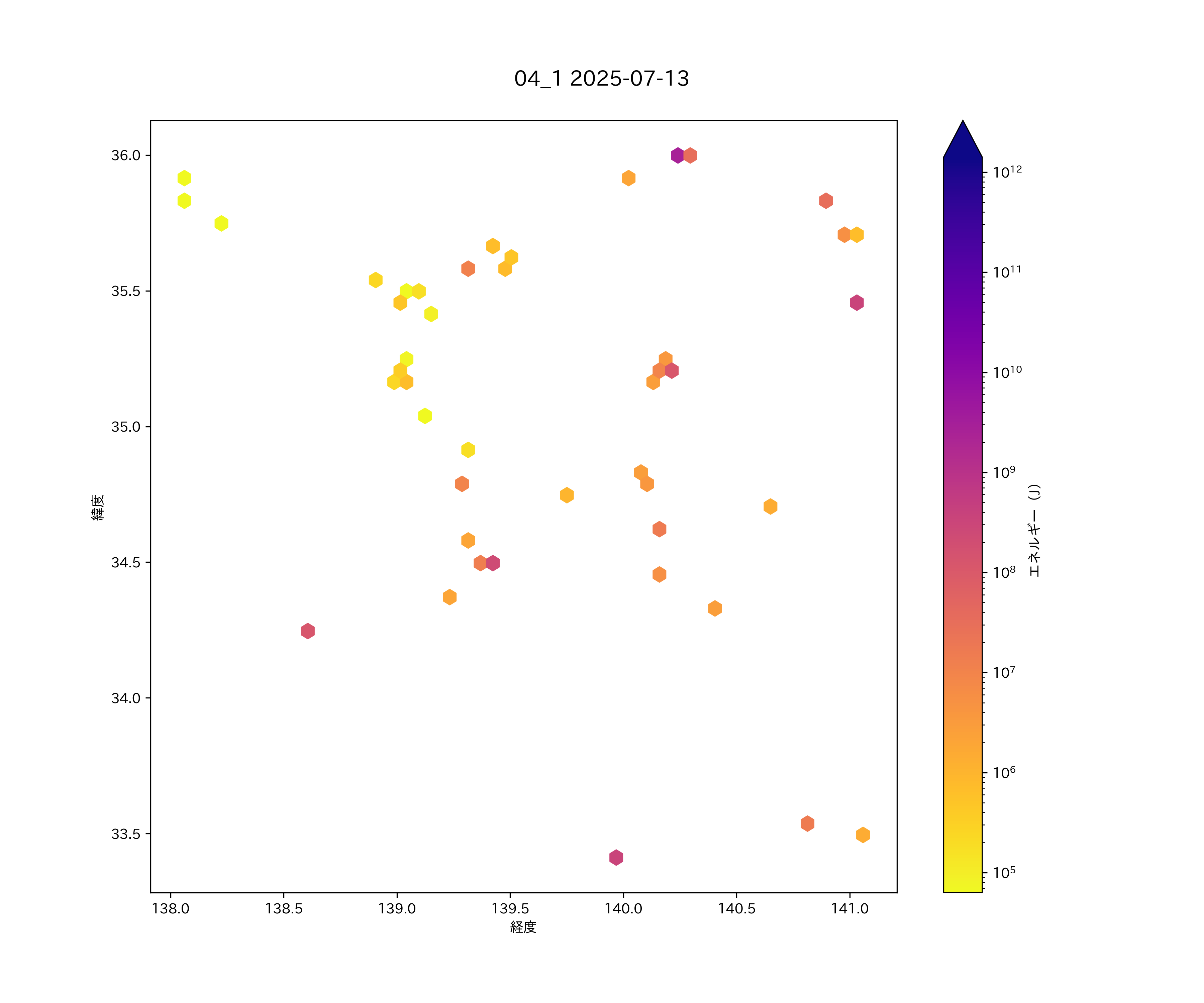 2025年07月13日 関東南部から南方海域 エリア震源マップ