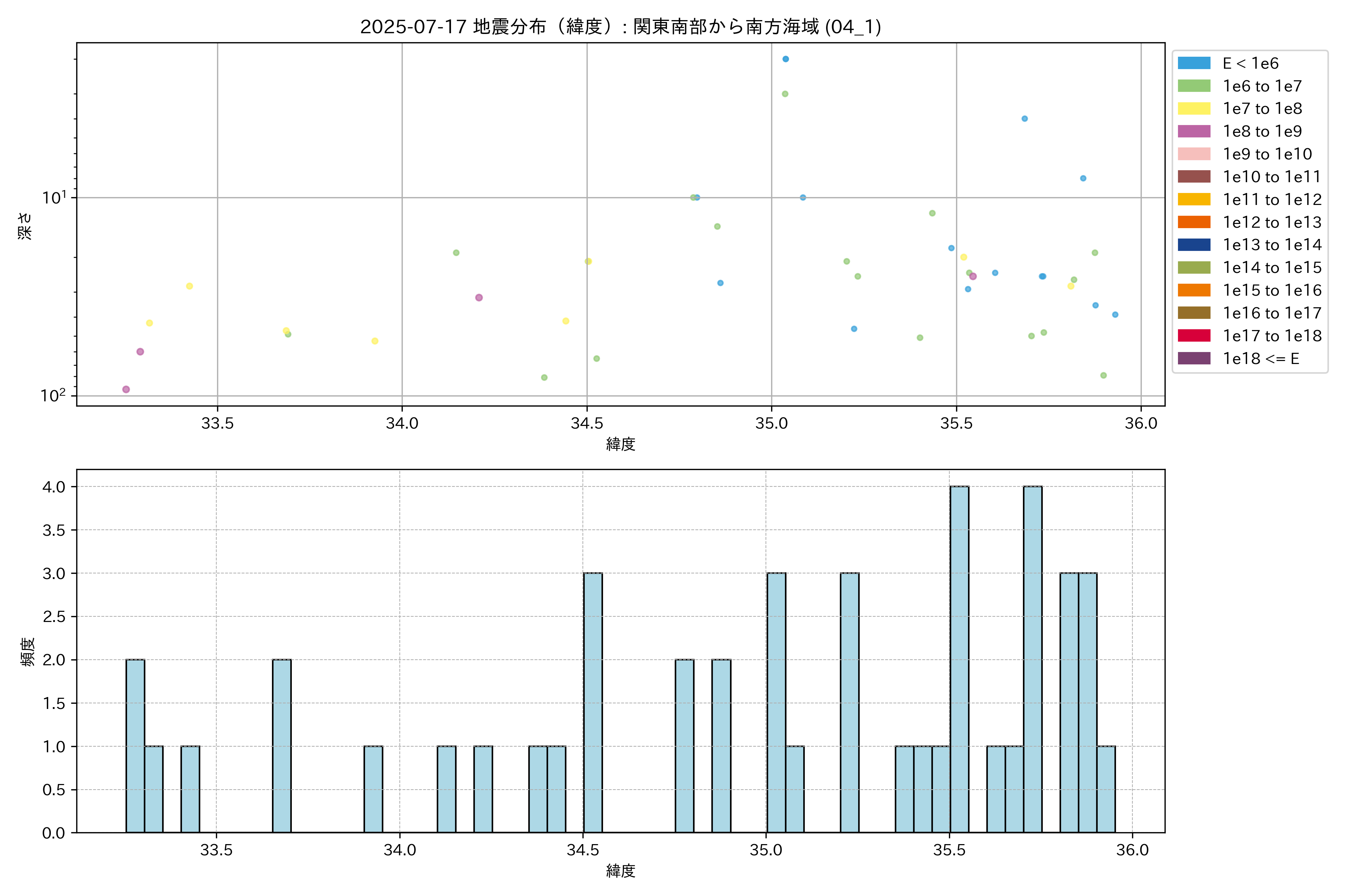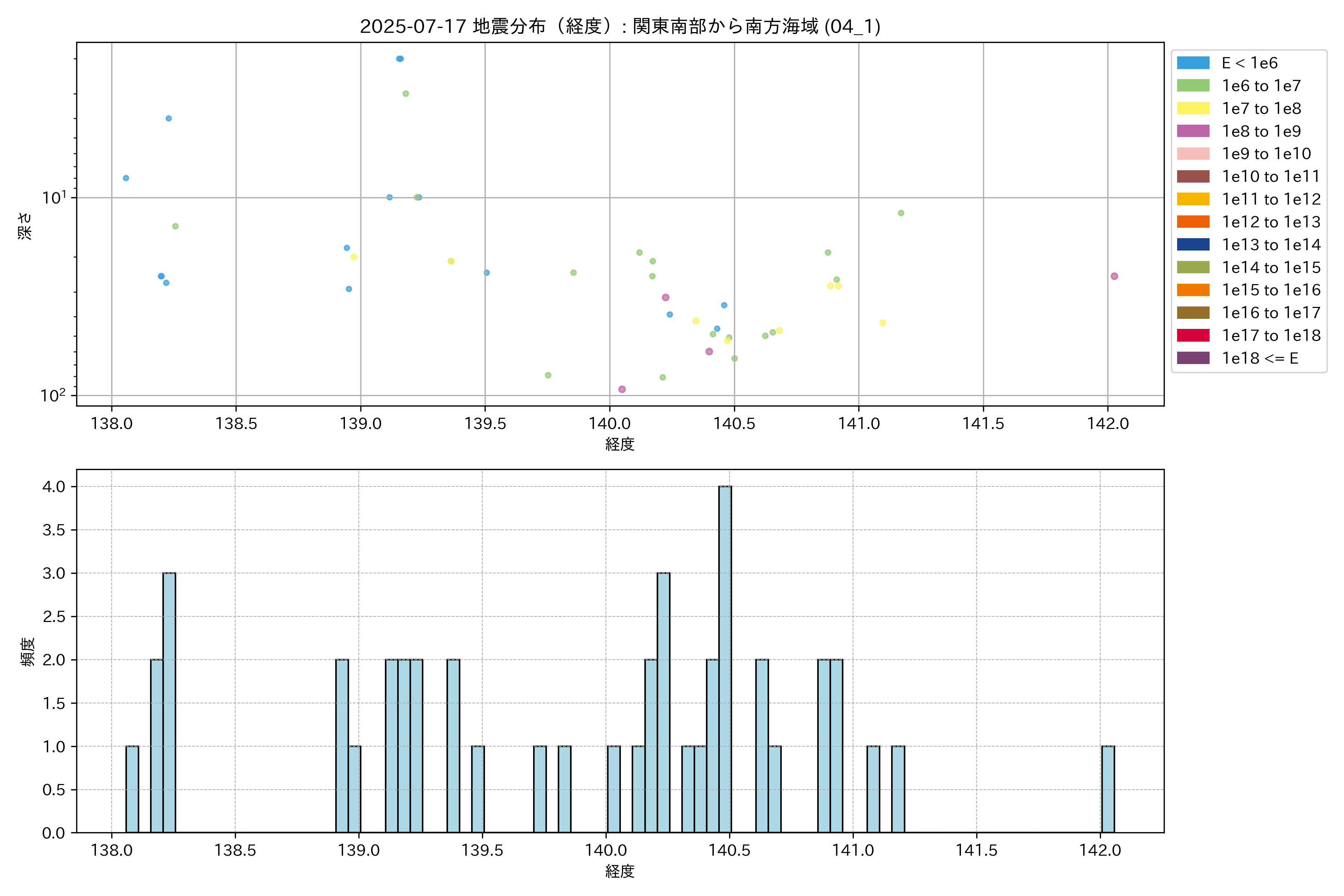 2025年07月17日 関東南部から南方海域 エリア震源マップ