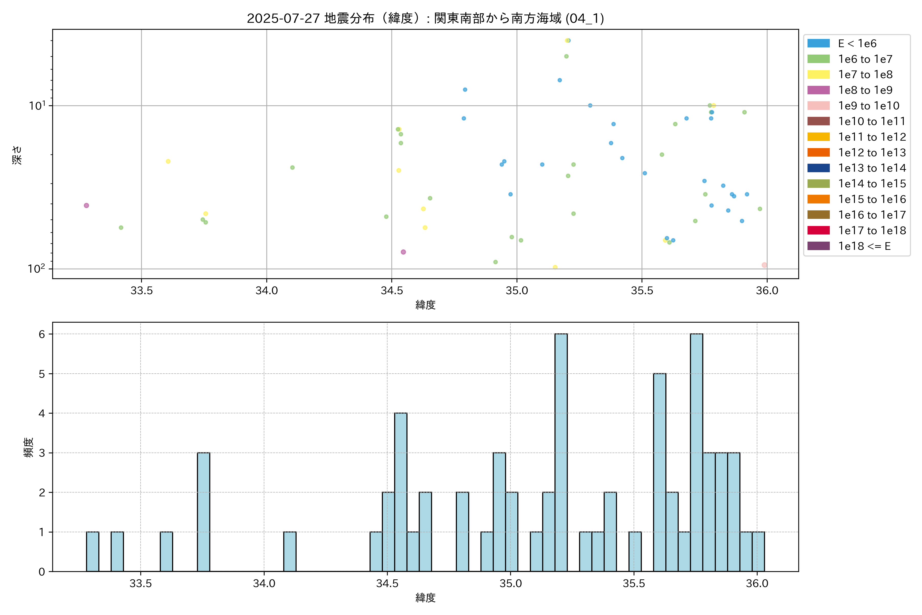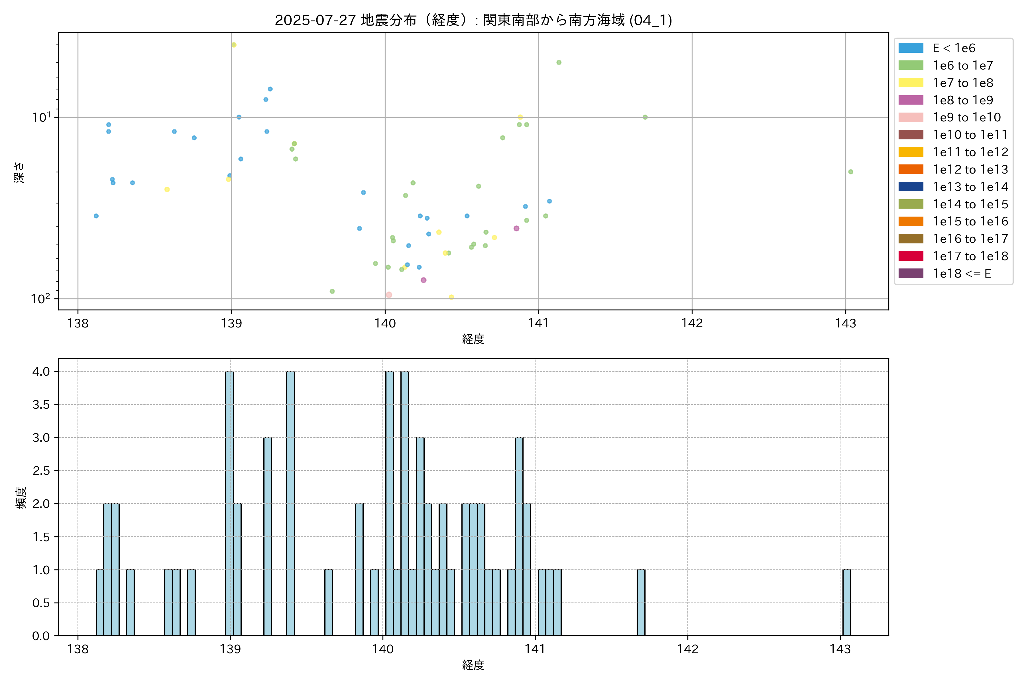2025年07月27日 関東南部から南方海域 エリア震源マップ