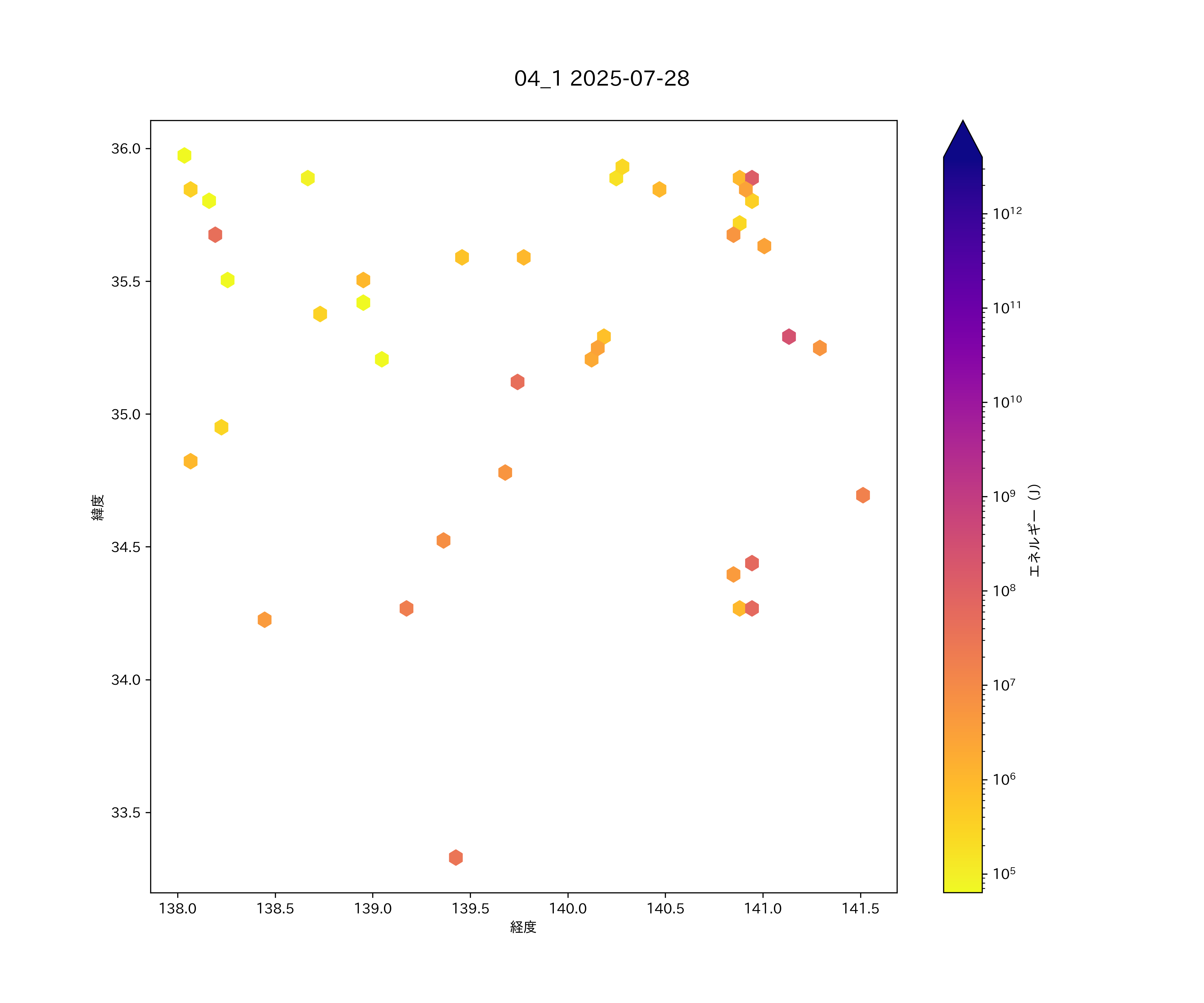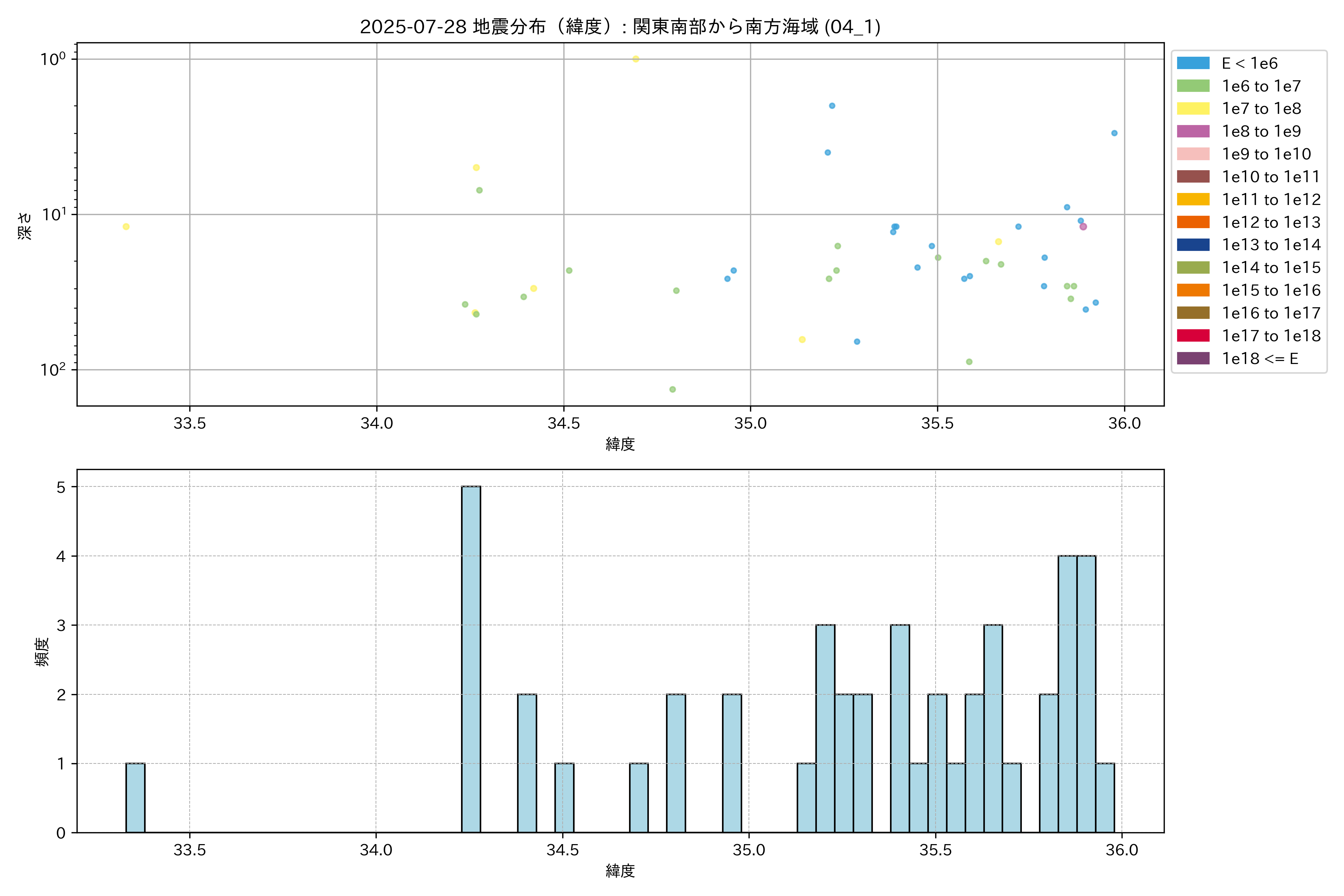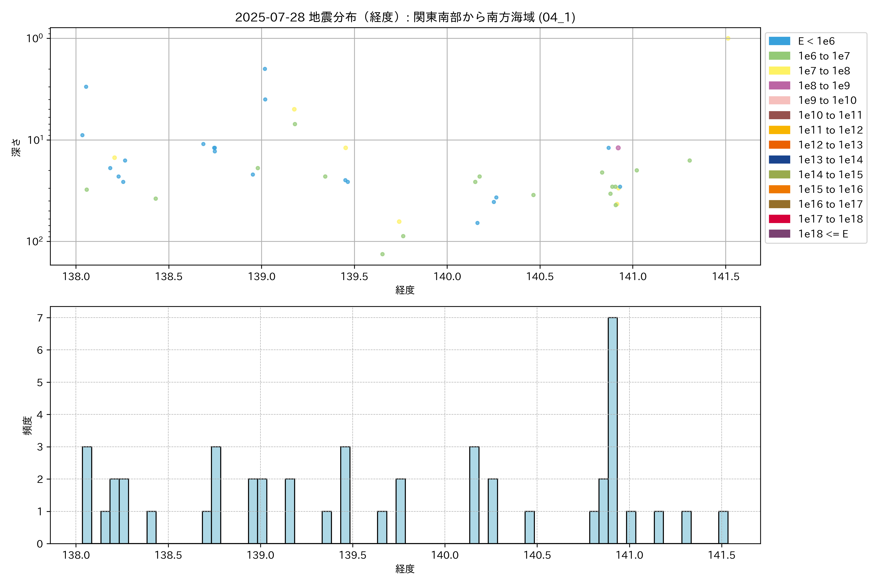 2025年07月28日 関東南部から南方海域 エリア震源マップ