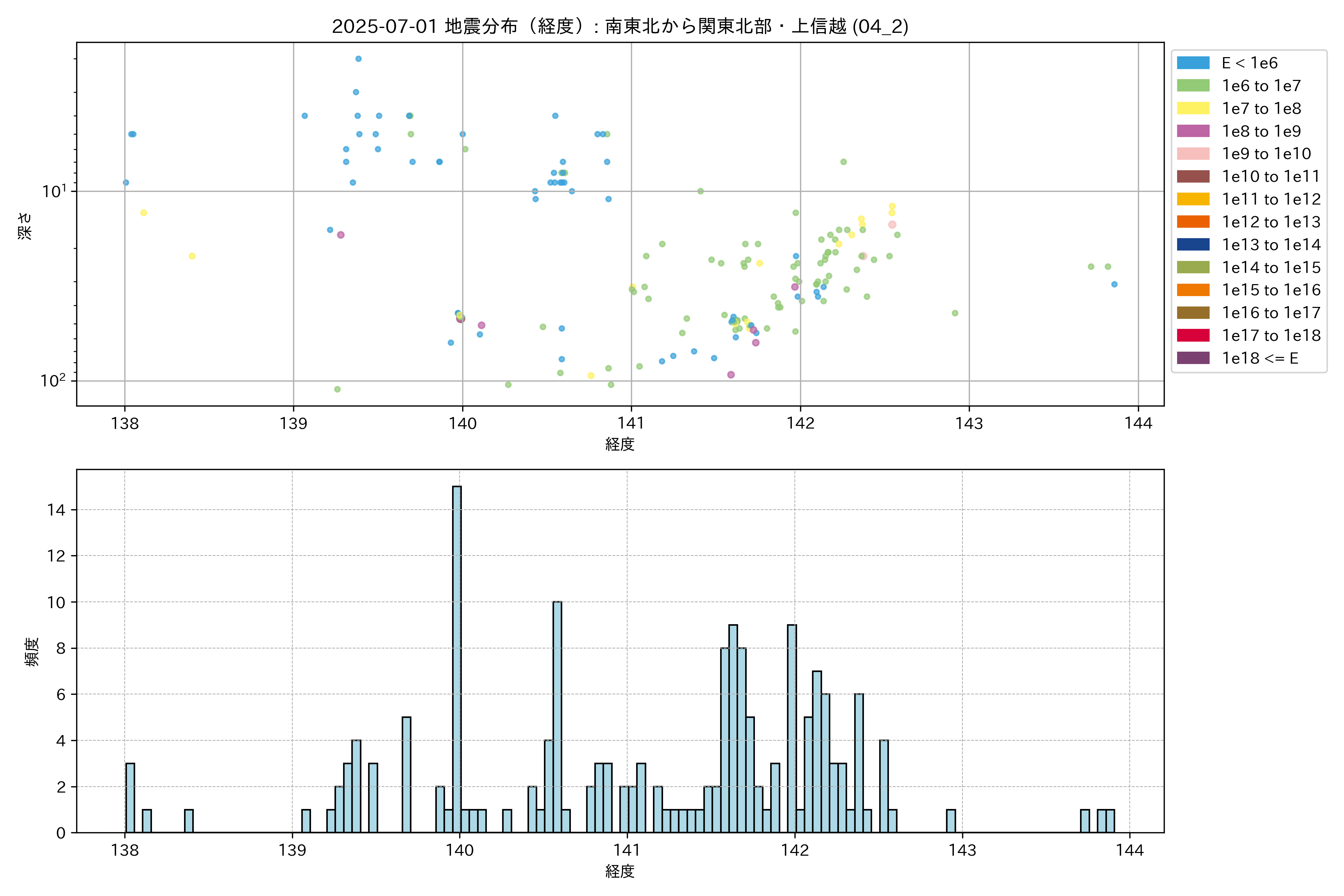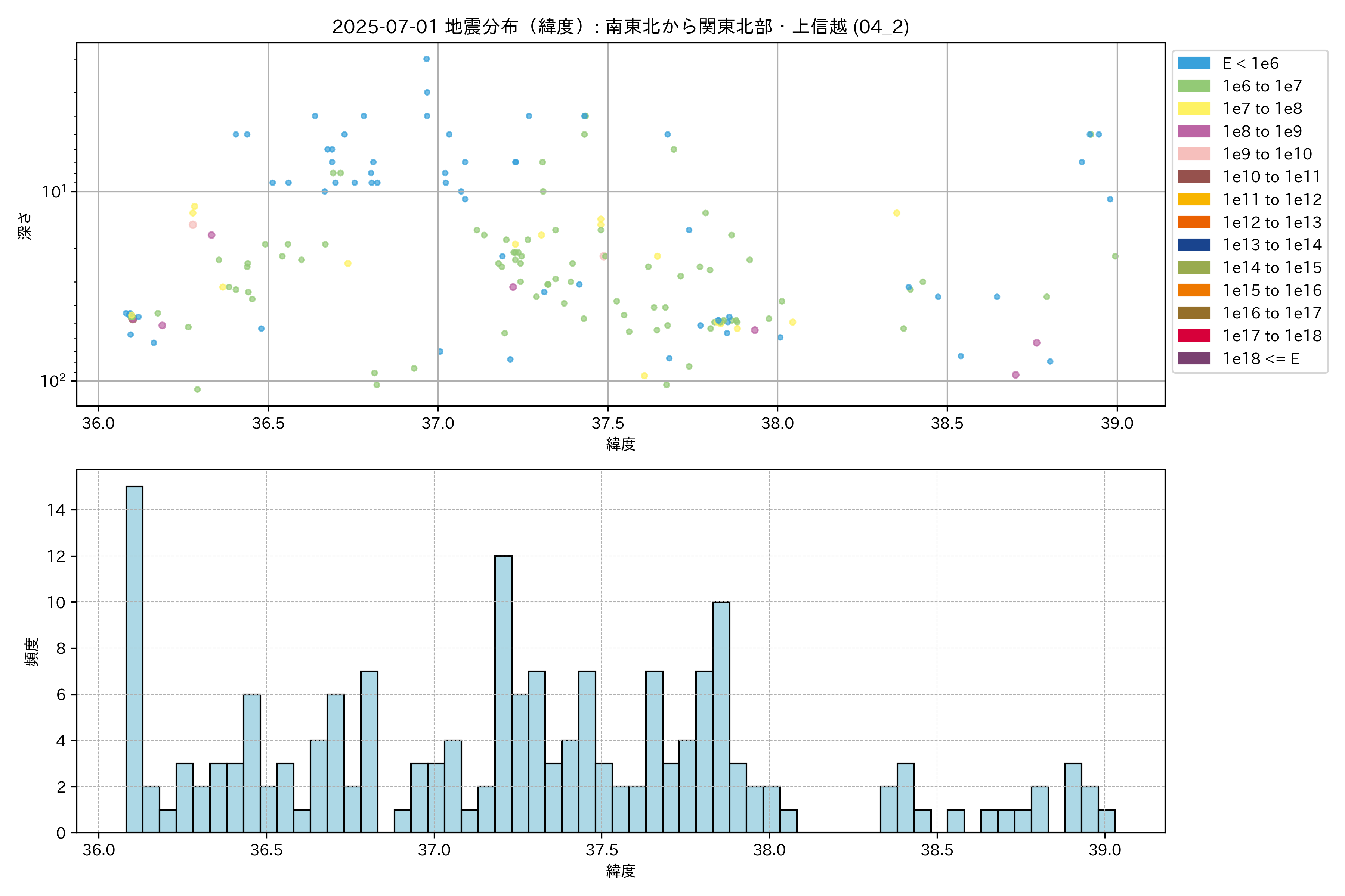 2025年07月01日 南東北から関東北部・上信越 エリア震源マップ