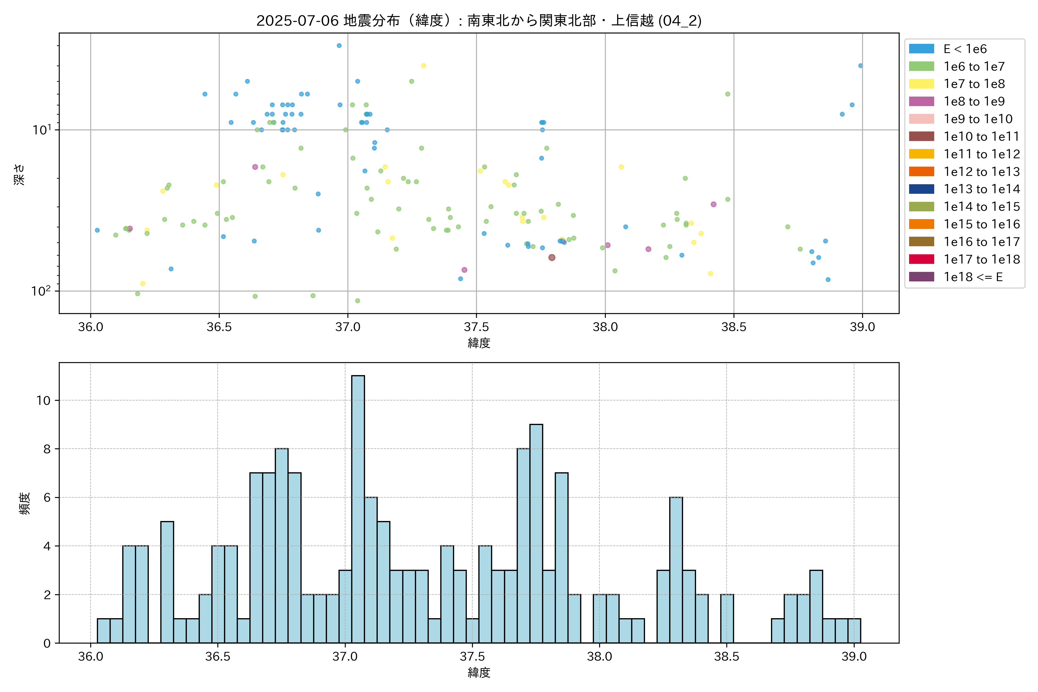 2025年07月06日 南東北から関東北部・上信越 エリア震源マップ