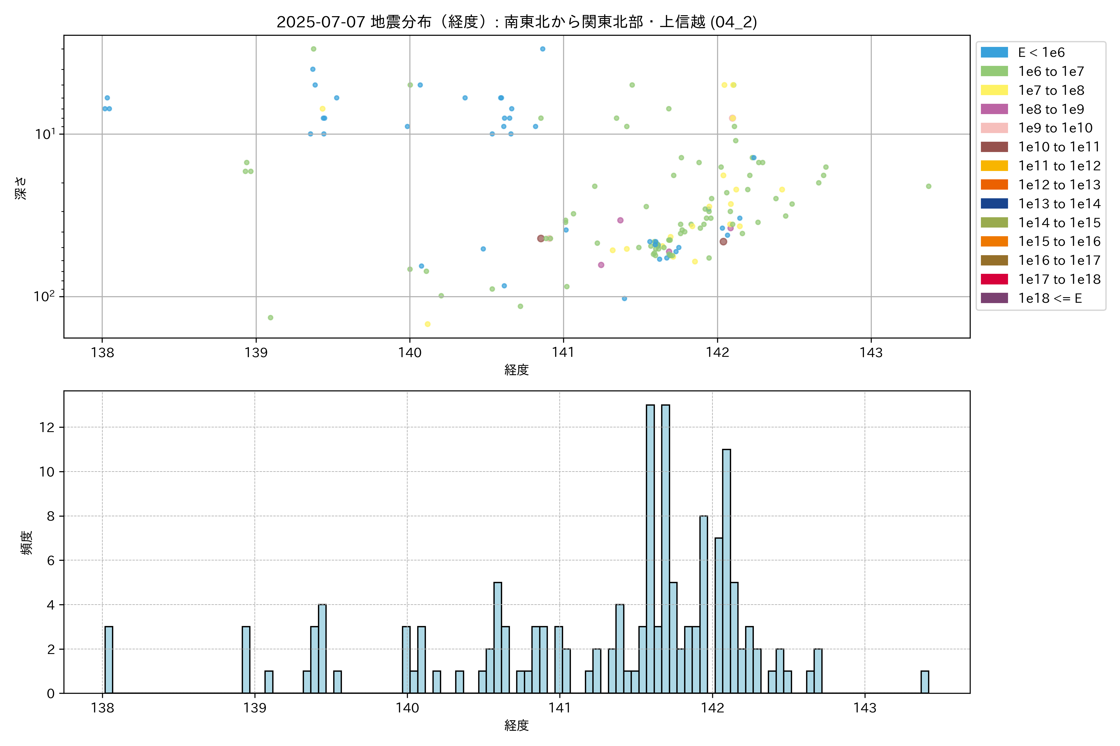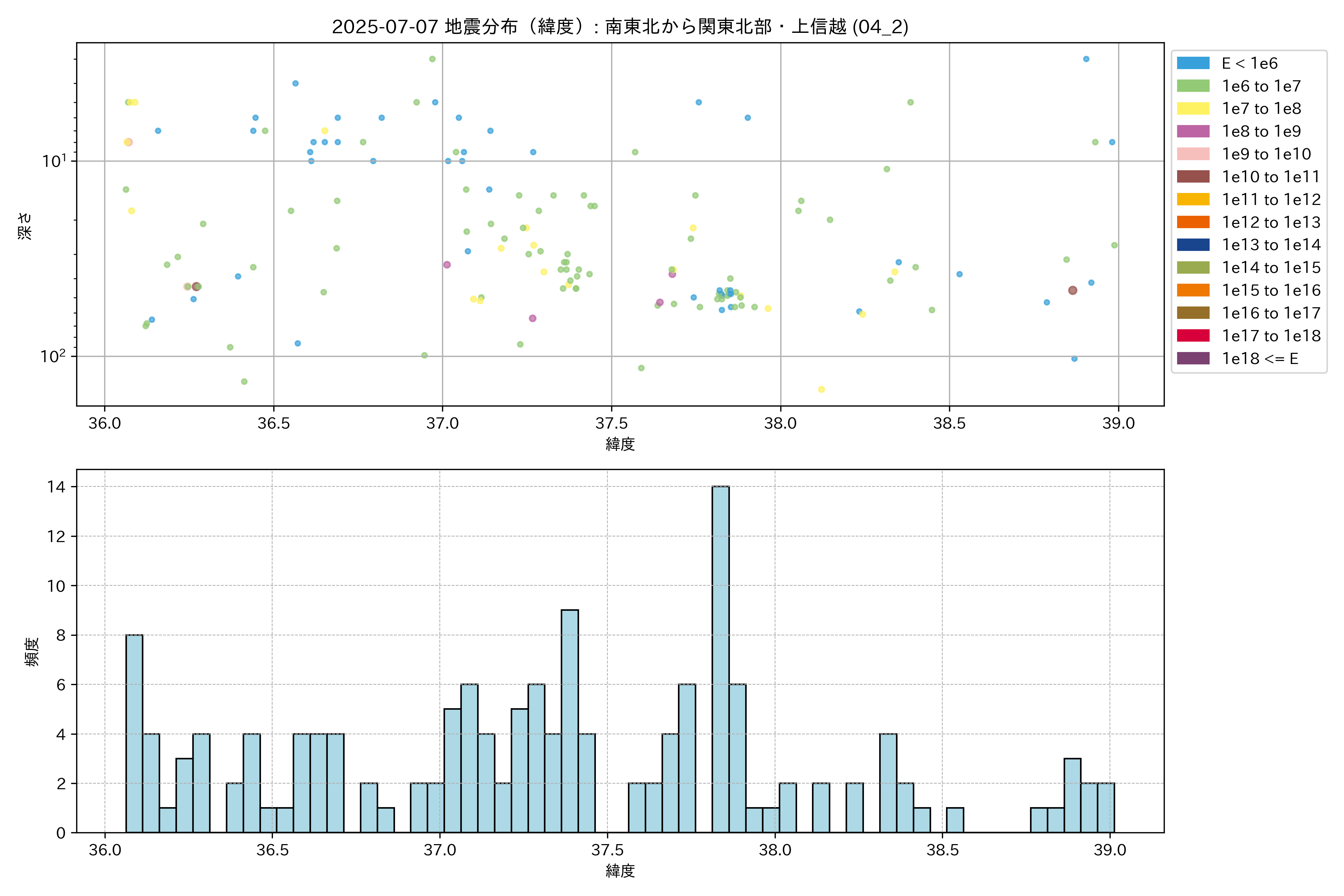2025年07月07日 南東北から関東北部・上信越 エリア震源マップ