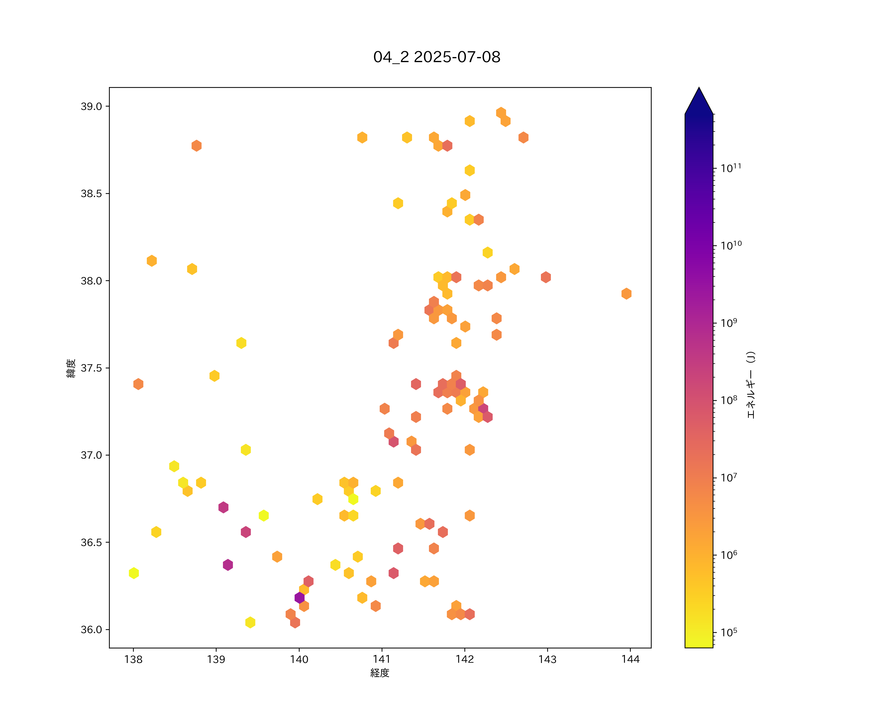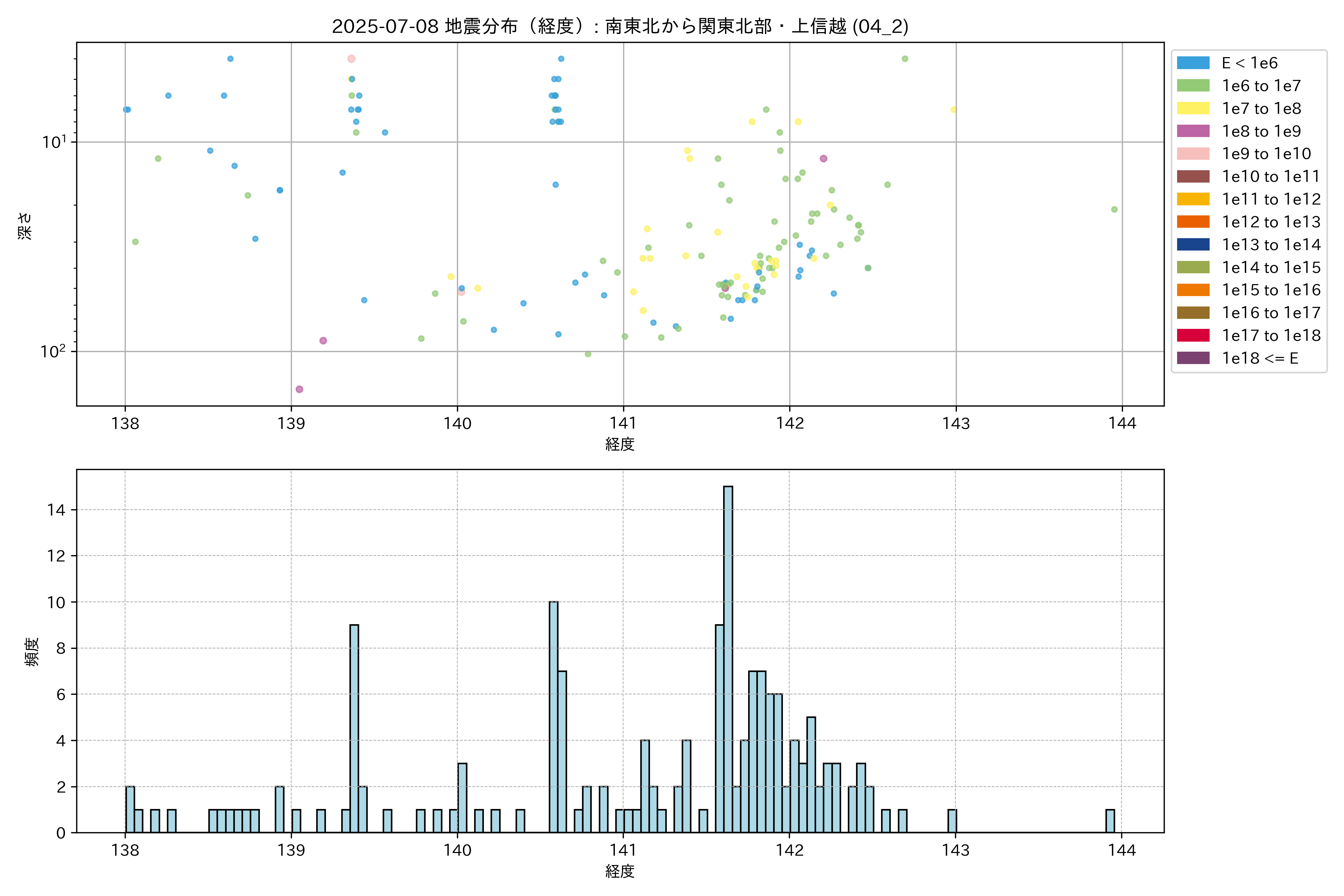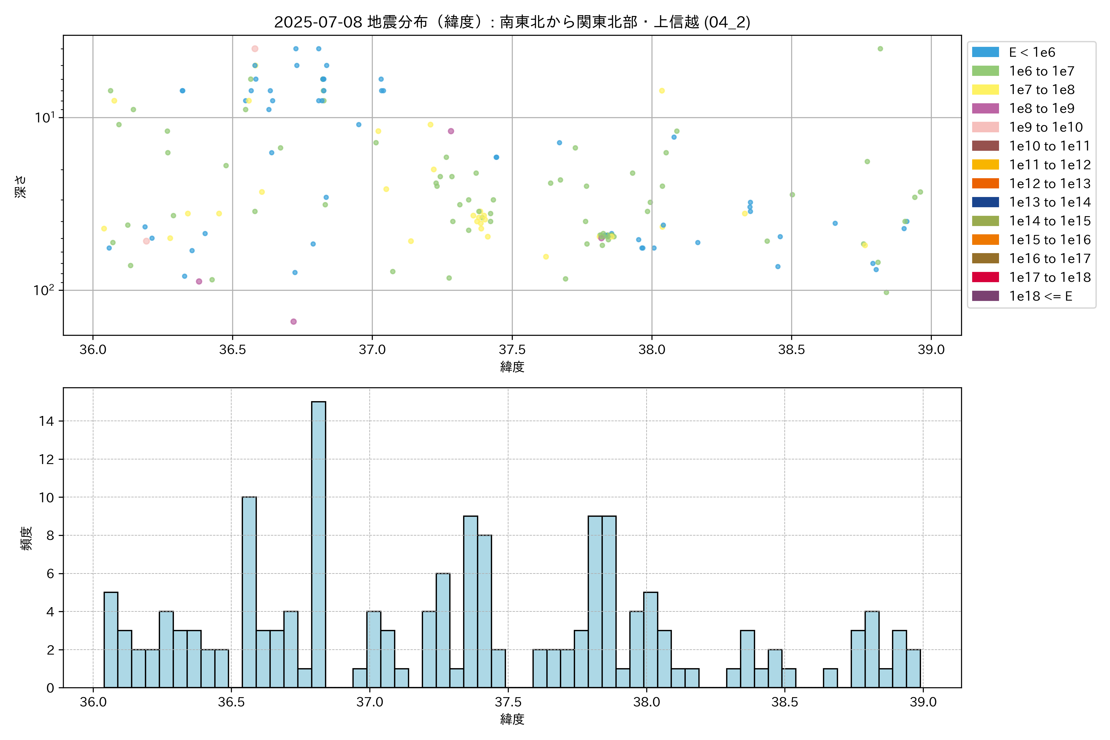 2025年07月08日 南東北から関東北部・上信越 エリア震源マップ
