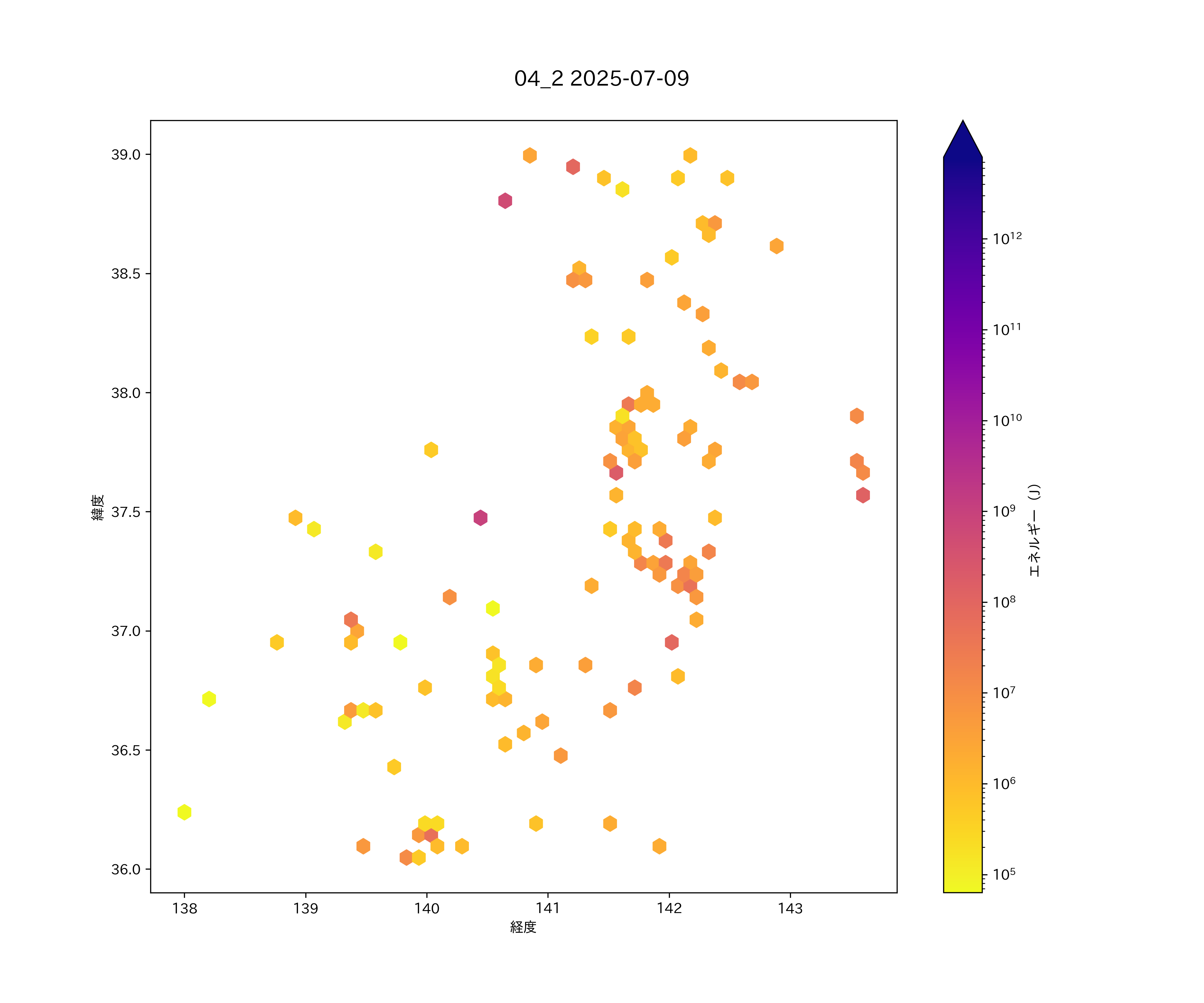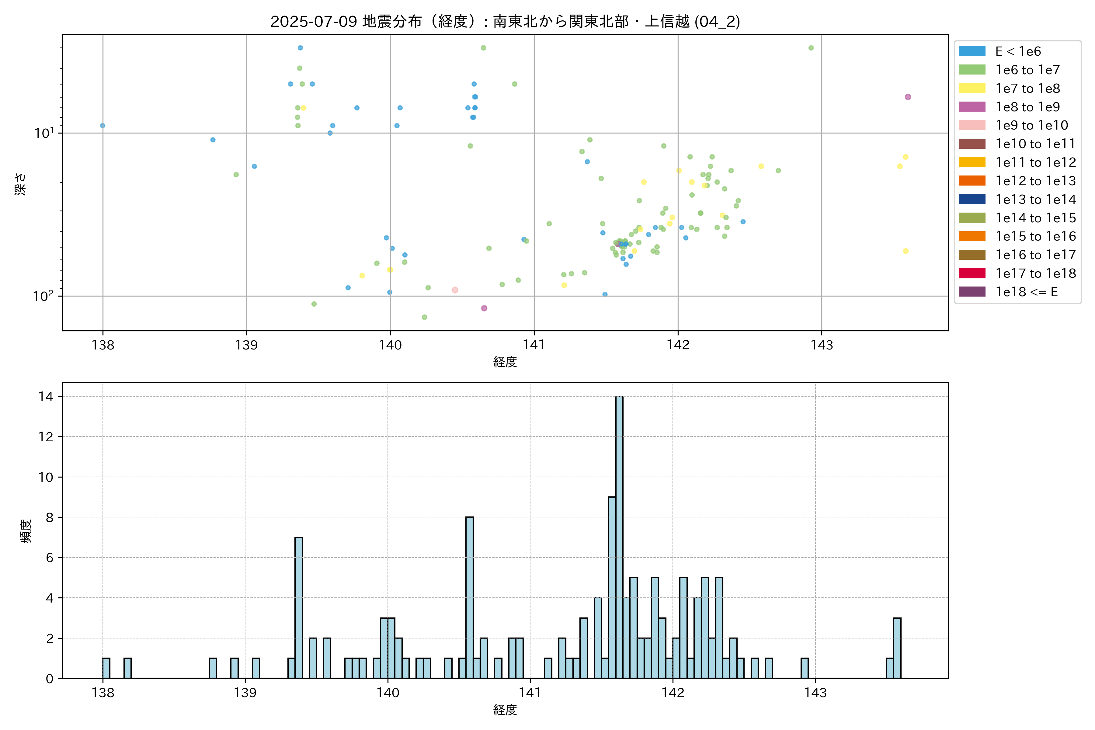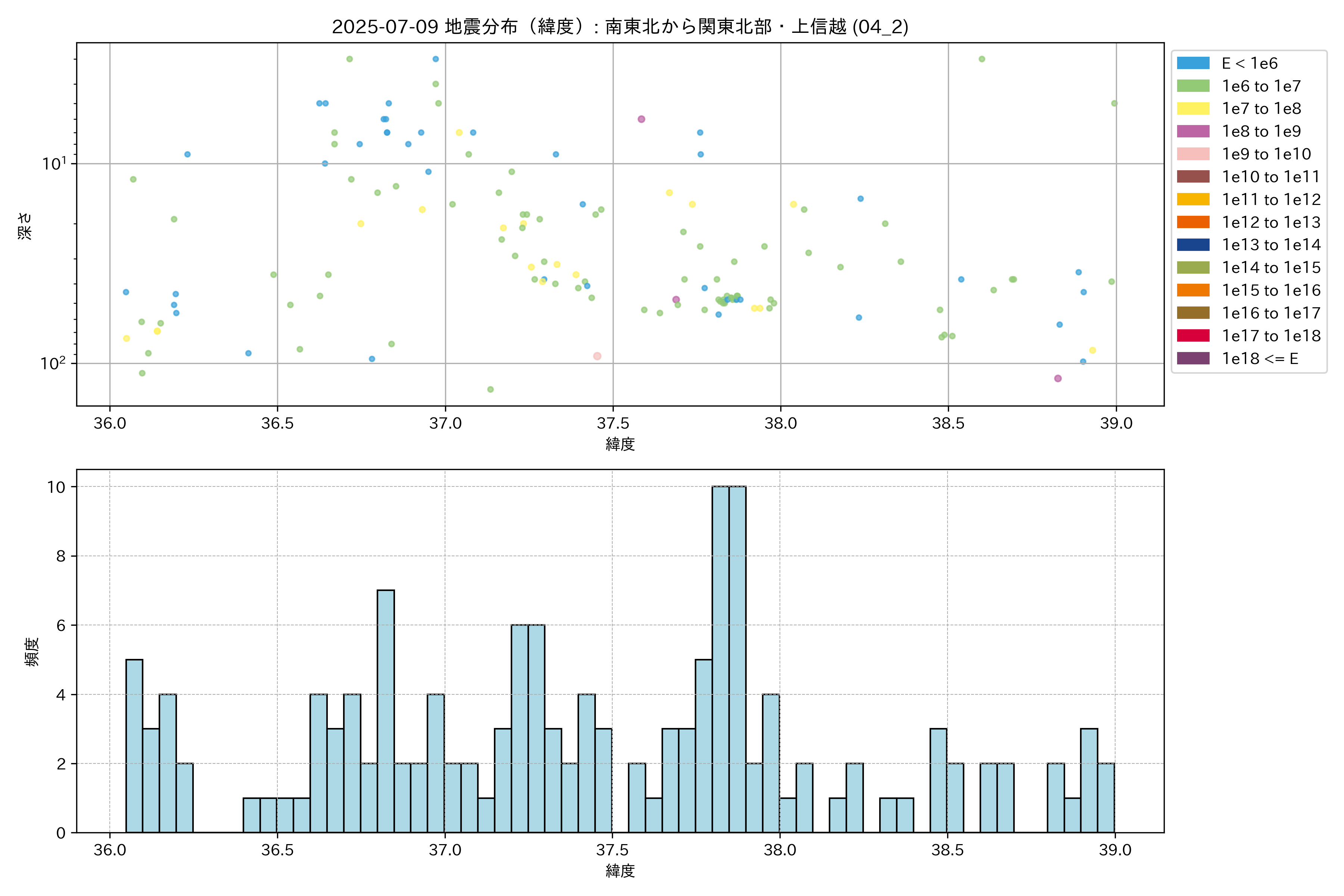 2025年07月09日 南東北から関東北部・上信越 エリア震源マップ