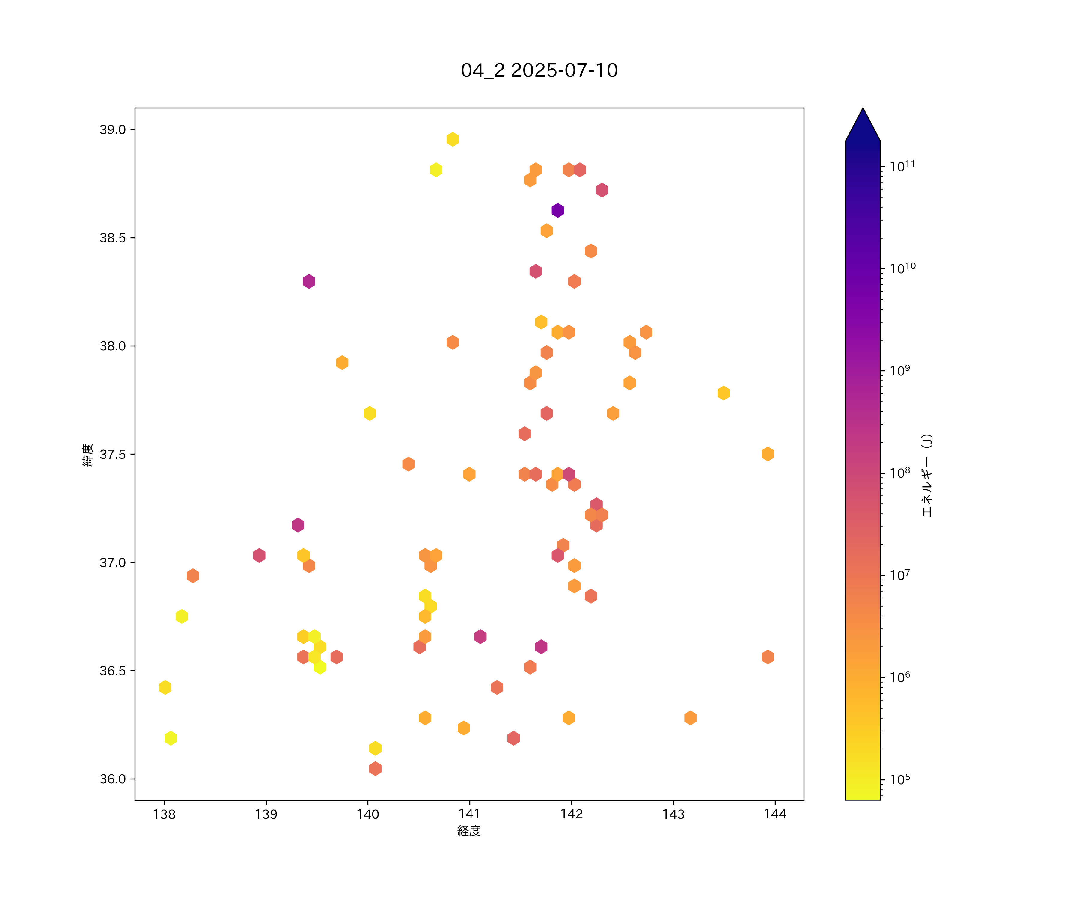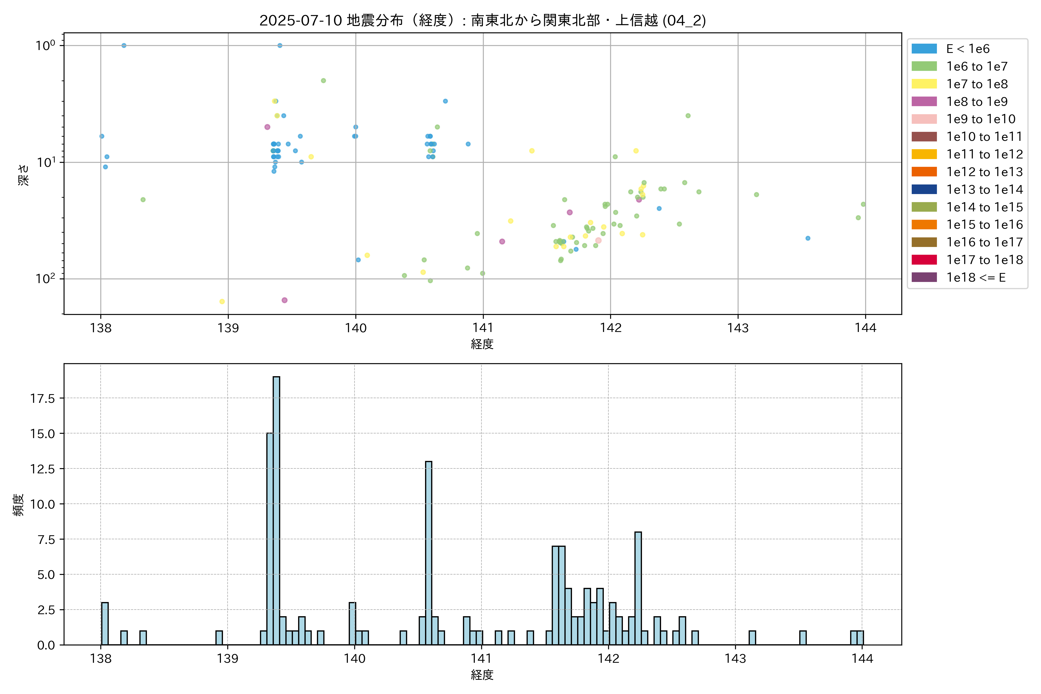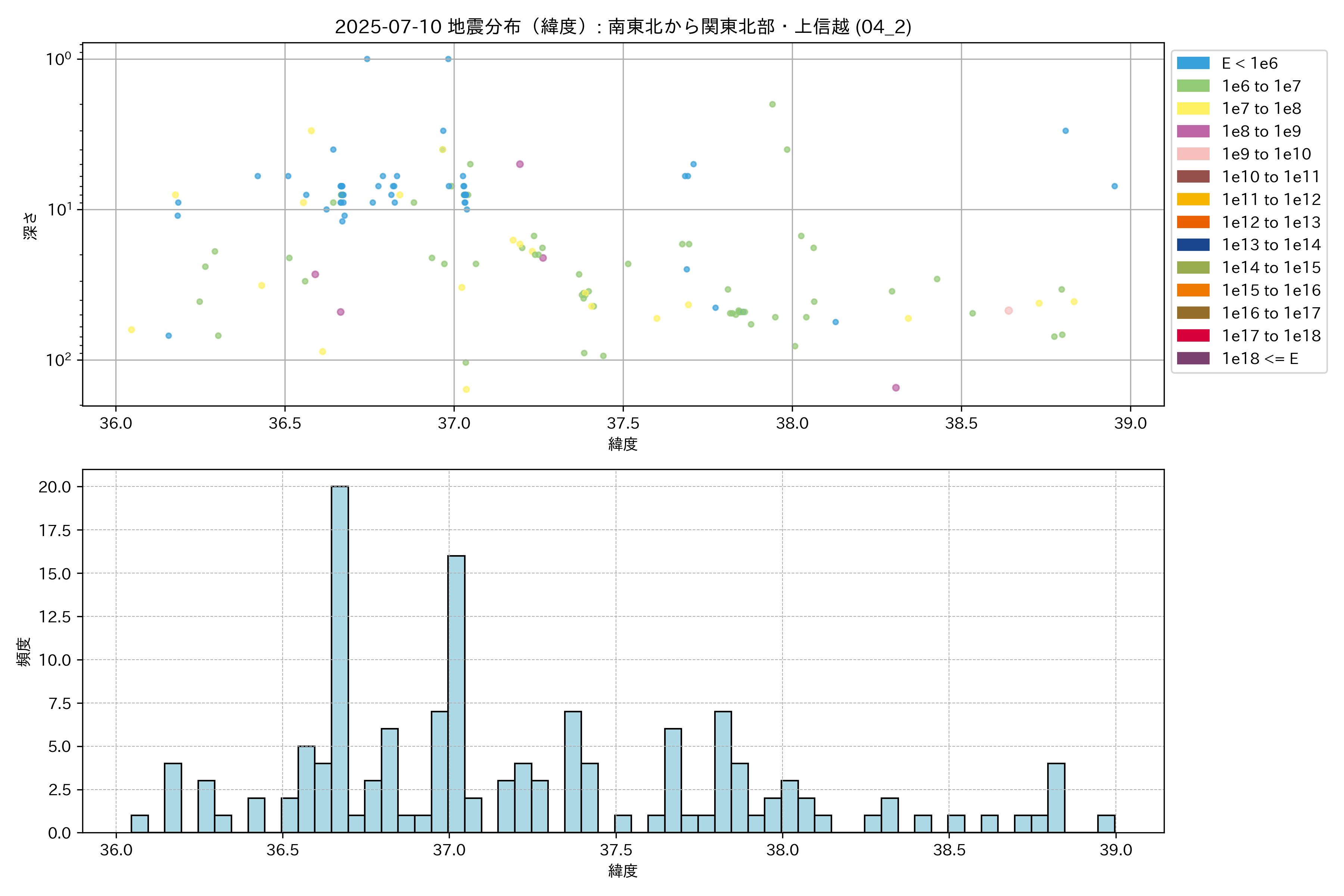 2025年07月10日 南東北から関東北部・上信越 エリア震源マップ