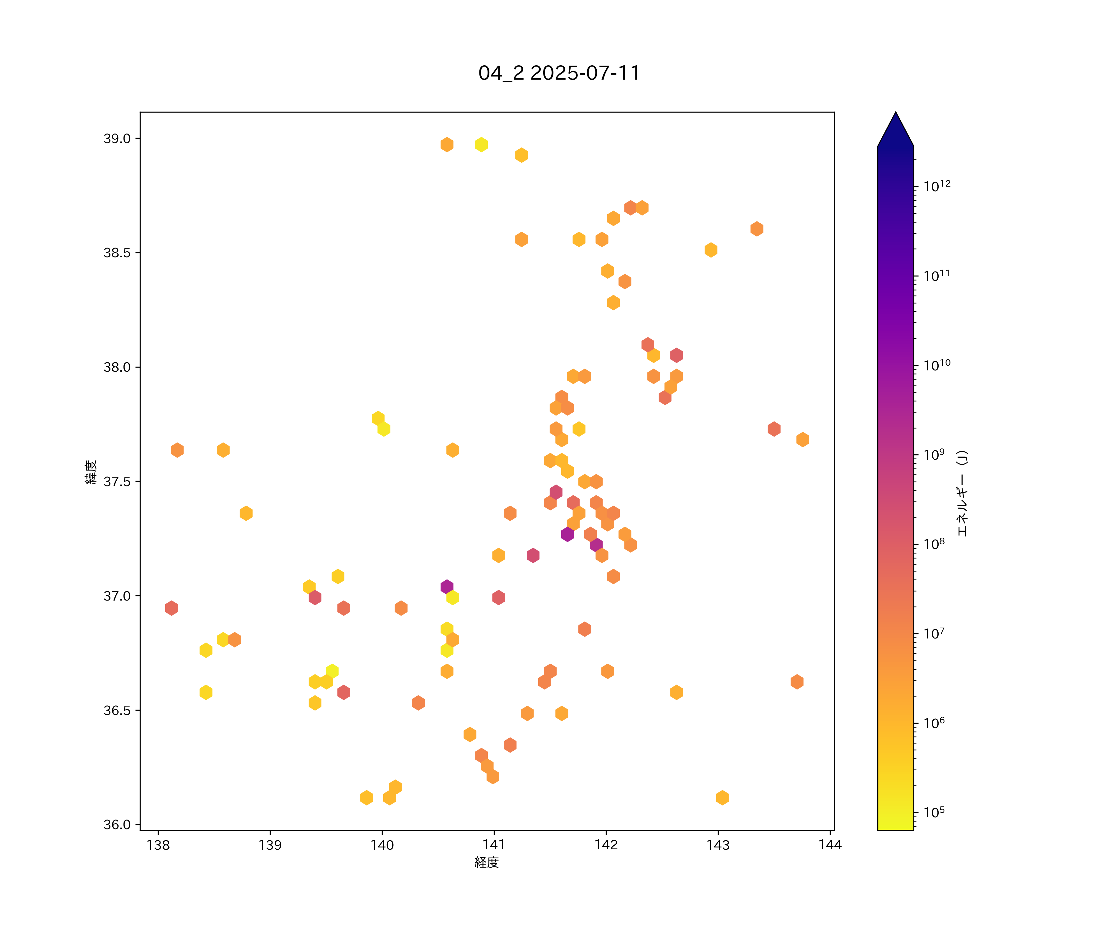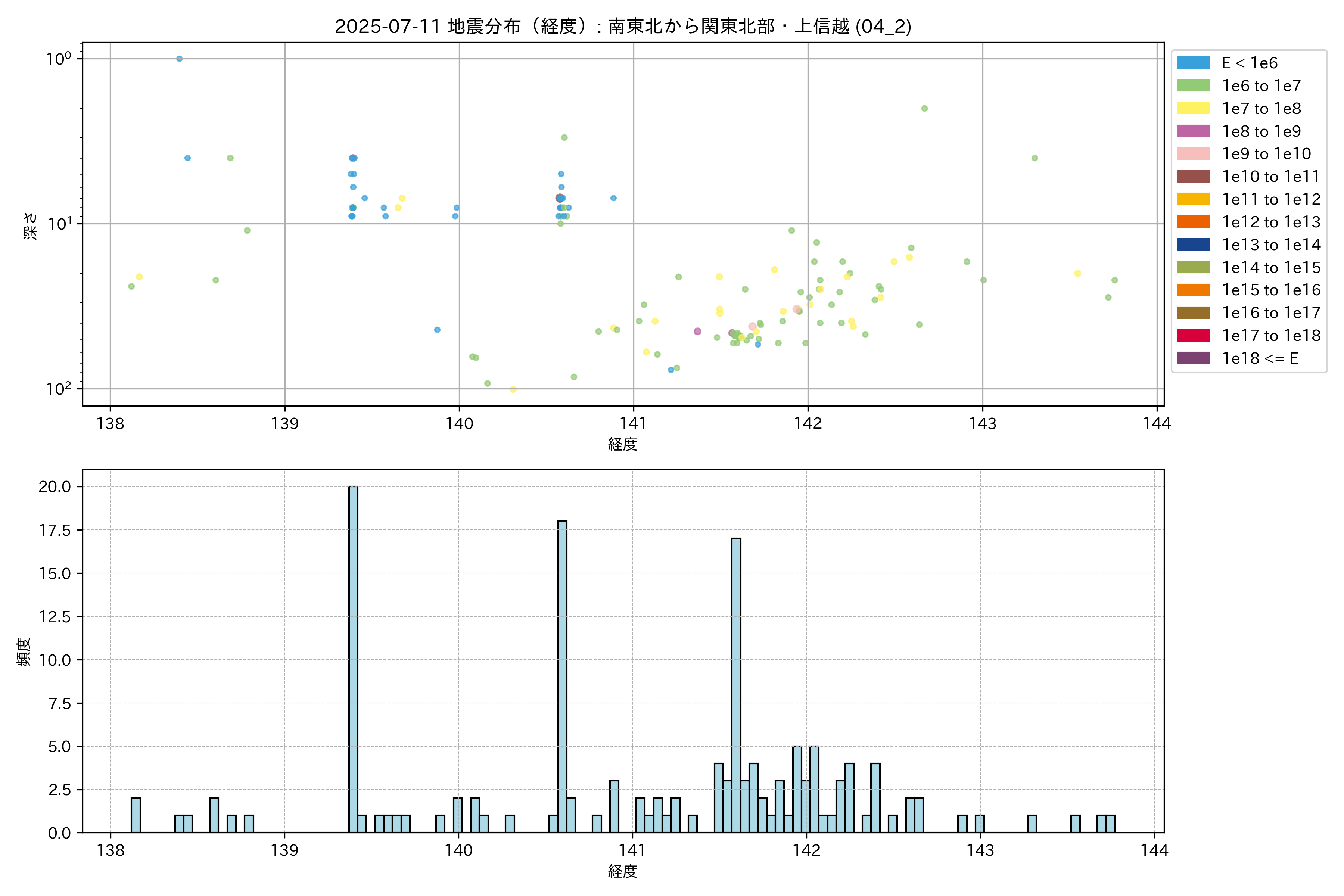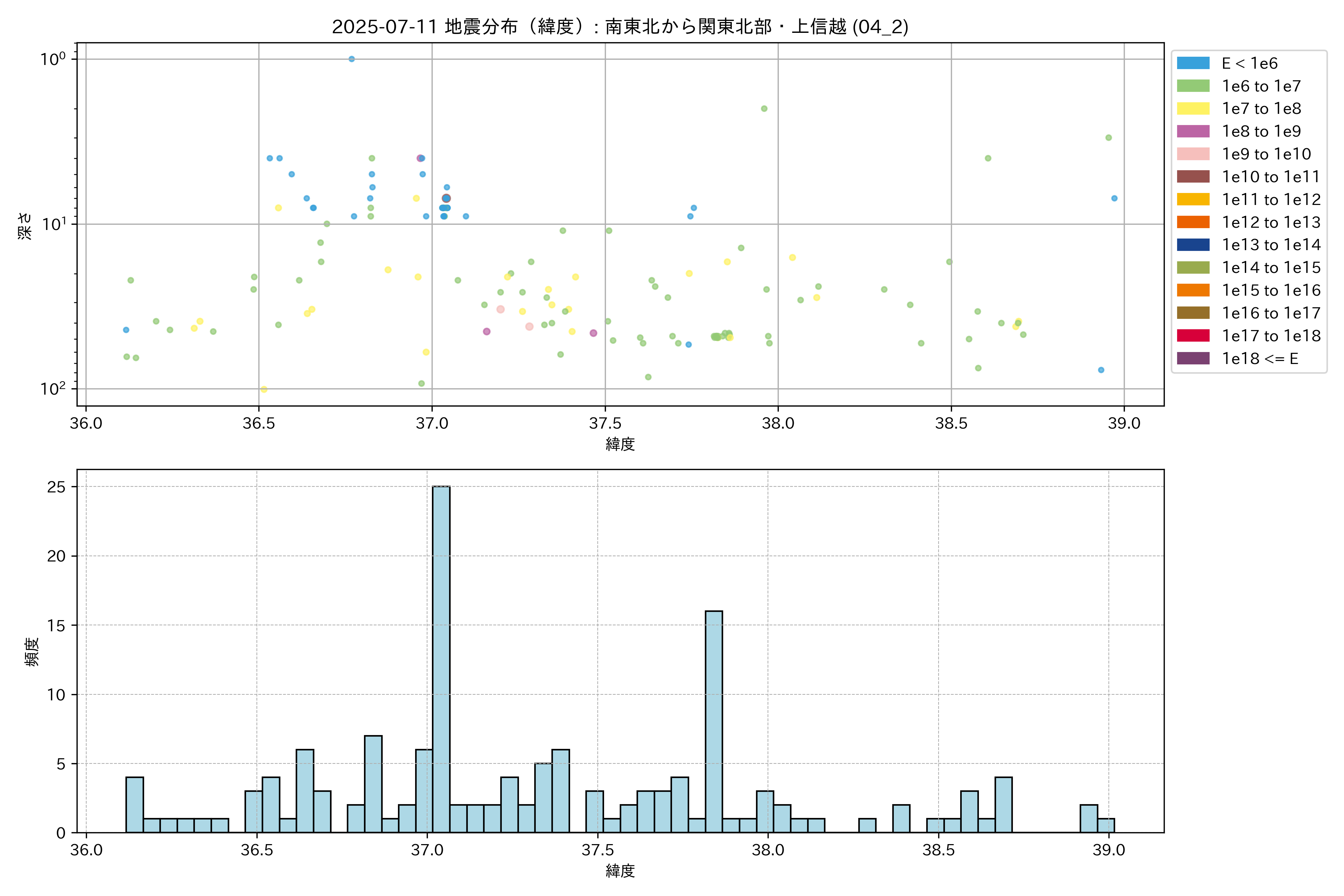 2025年07月11日 南東北から関東北部・上信越 エリア震源マップ