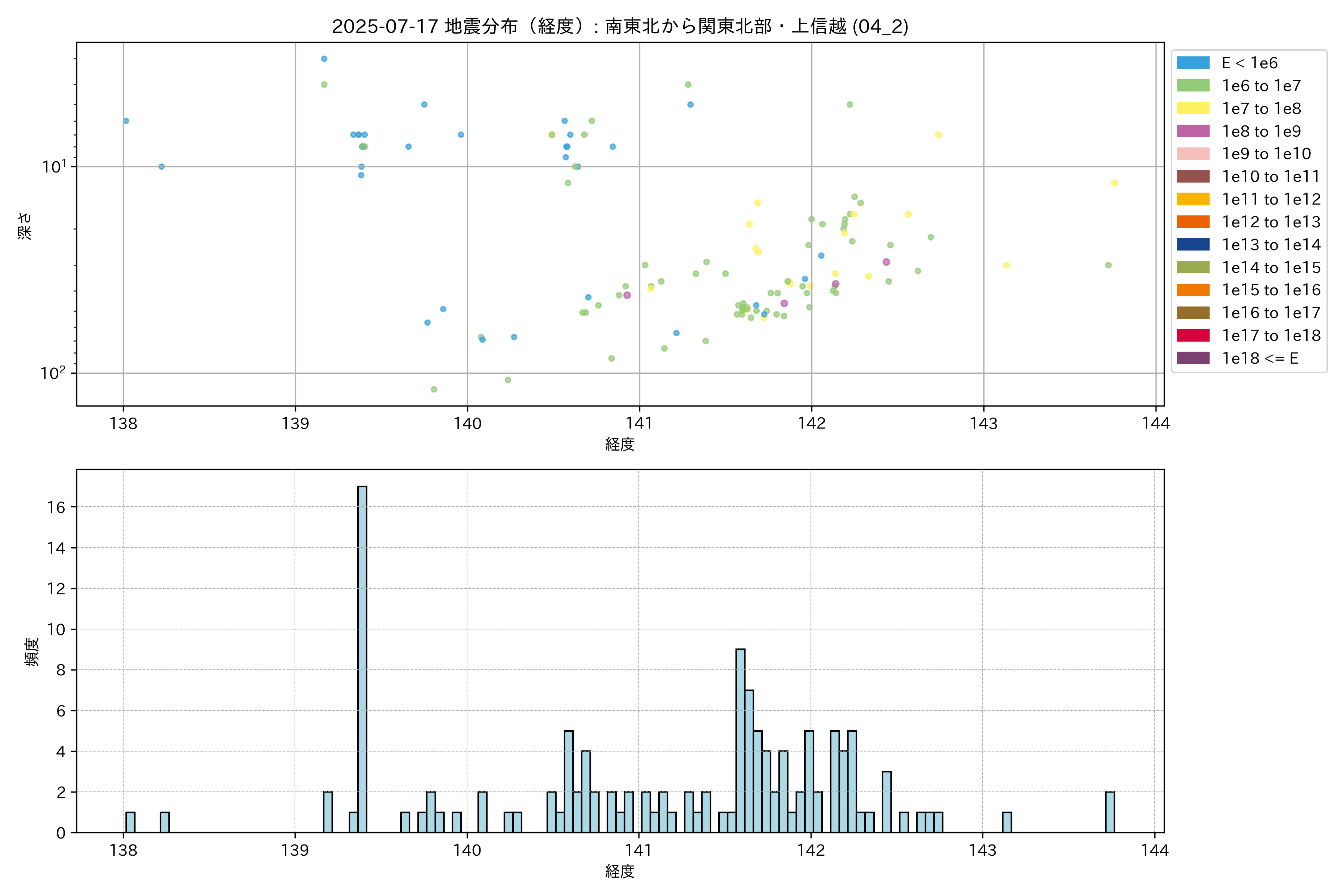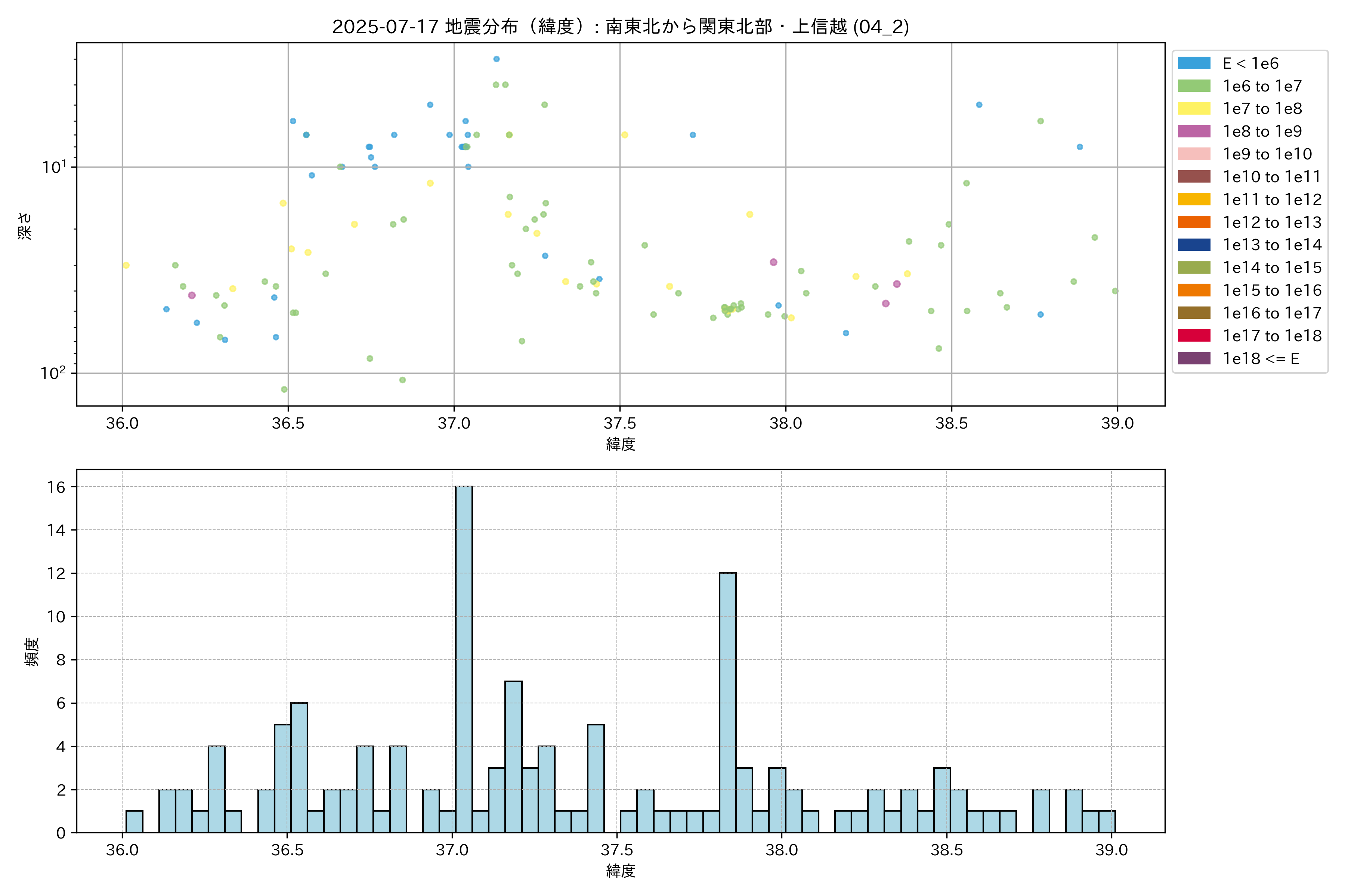 2025年07月17日 南東北から関東北部・上信越 エリア震源マップ
