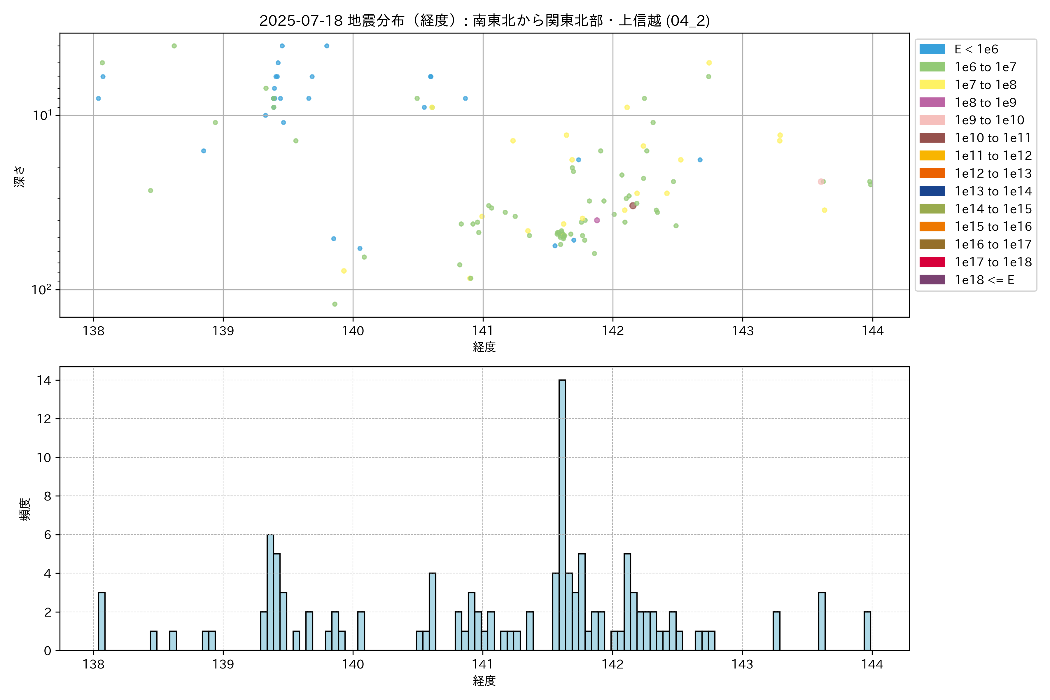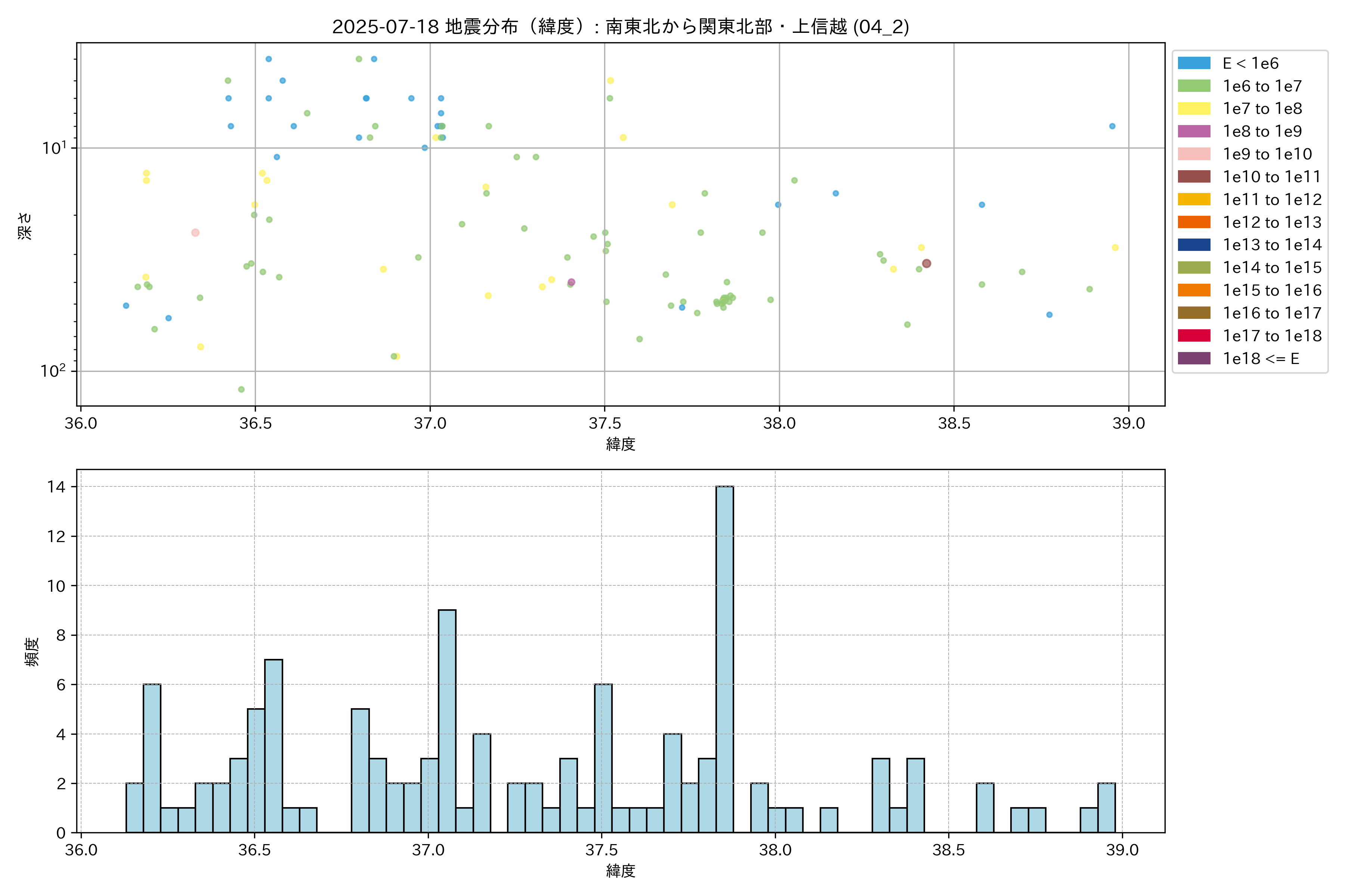 2025年07月18日 南東北から関東北部・上信越 エリア震源マップ