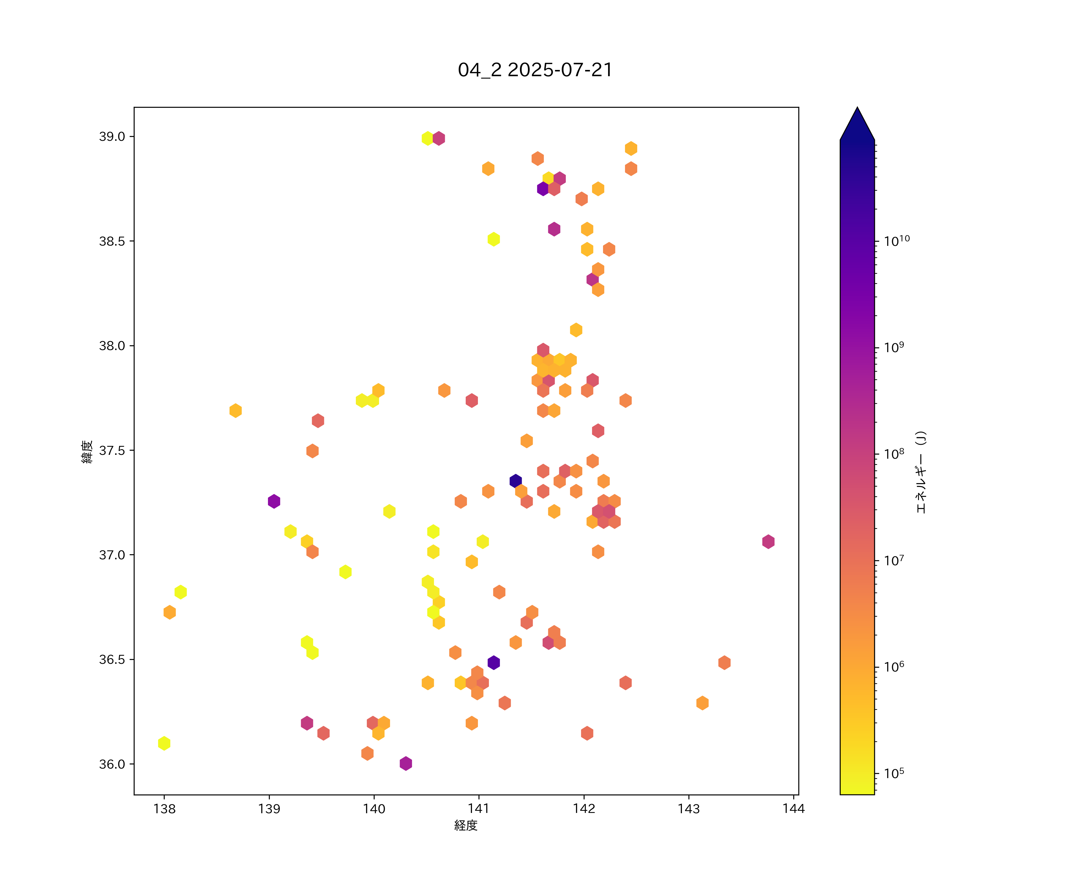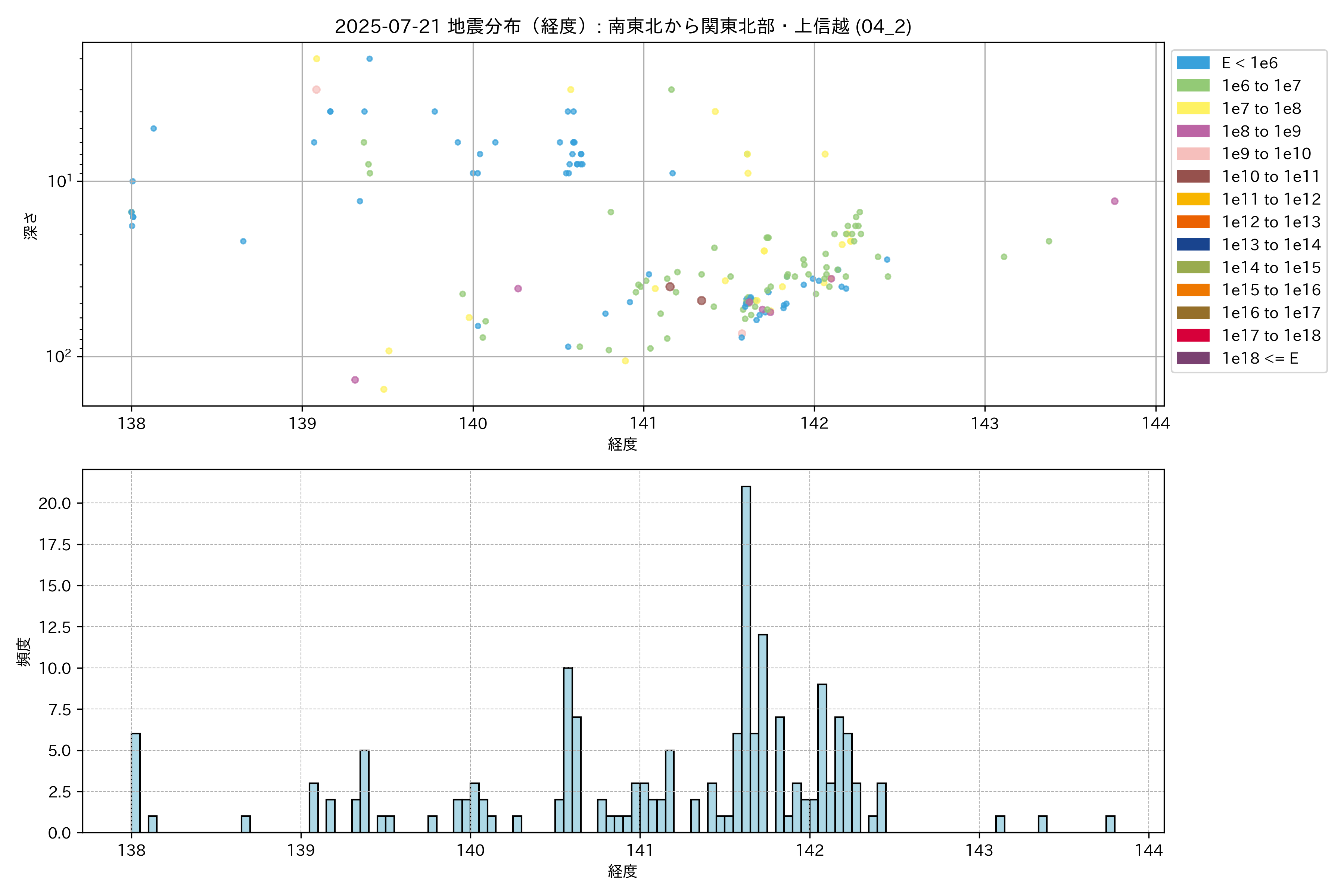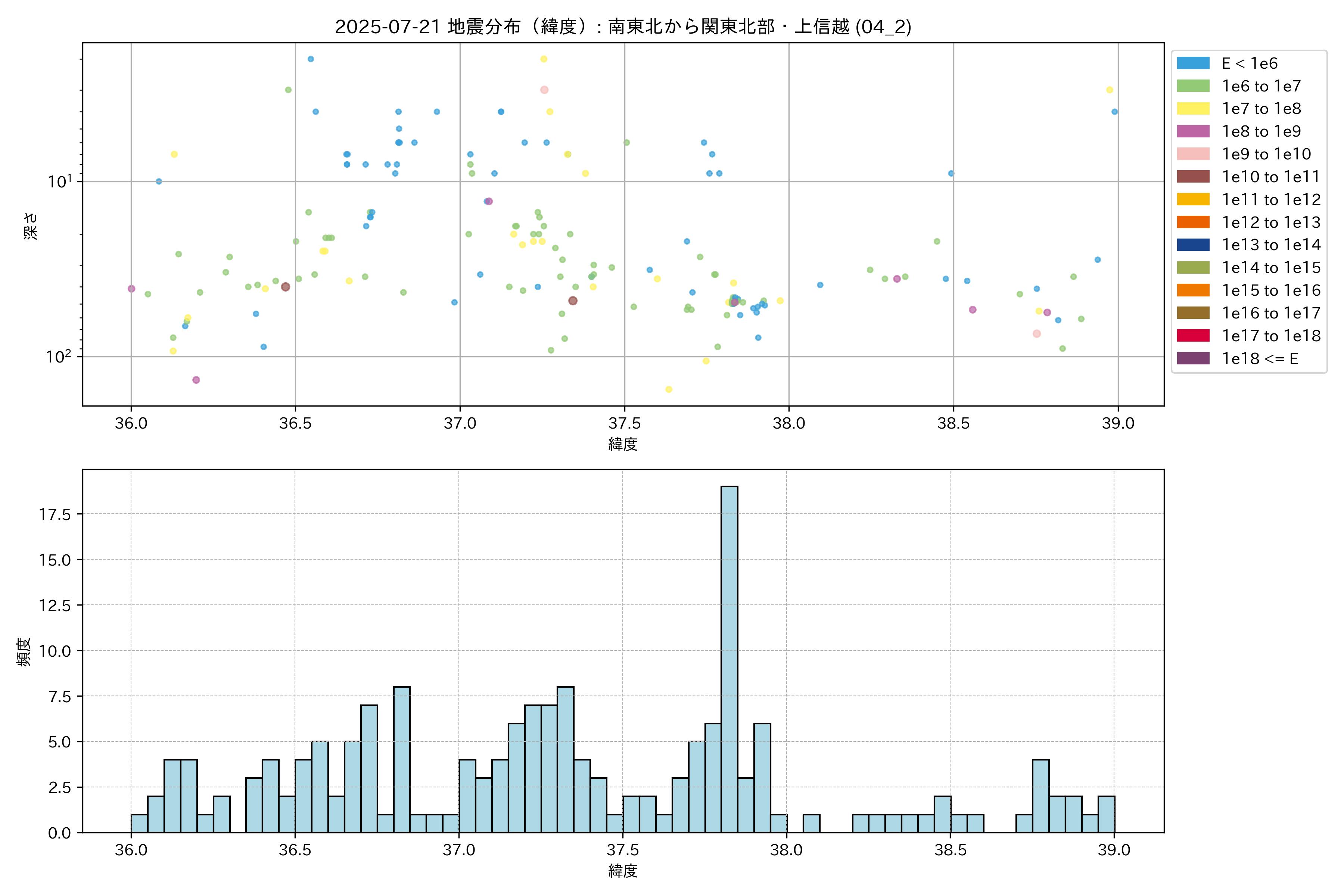 2025年07月21日 南東北から関東北部・上信越 エリア震源マップ