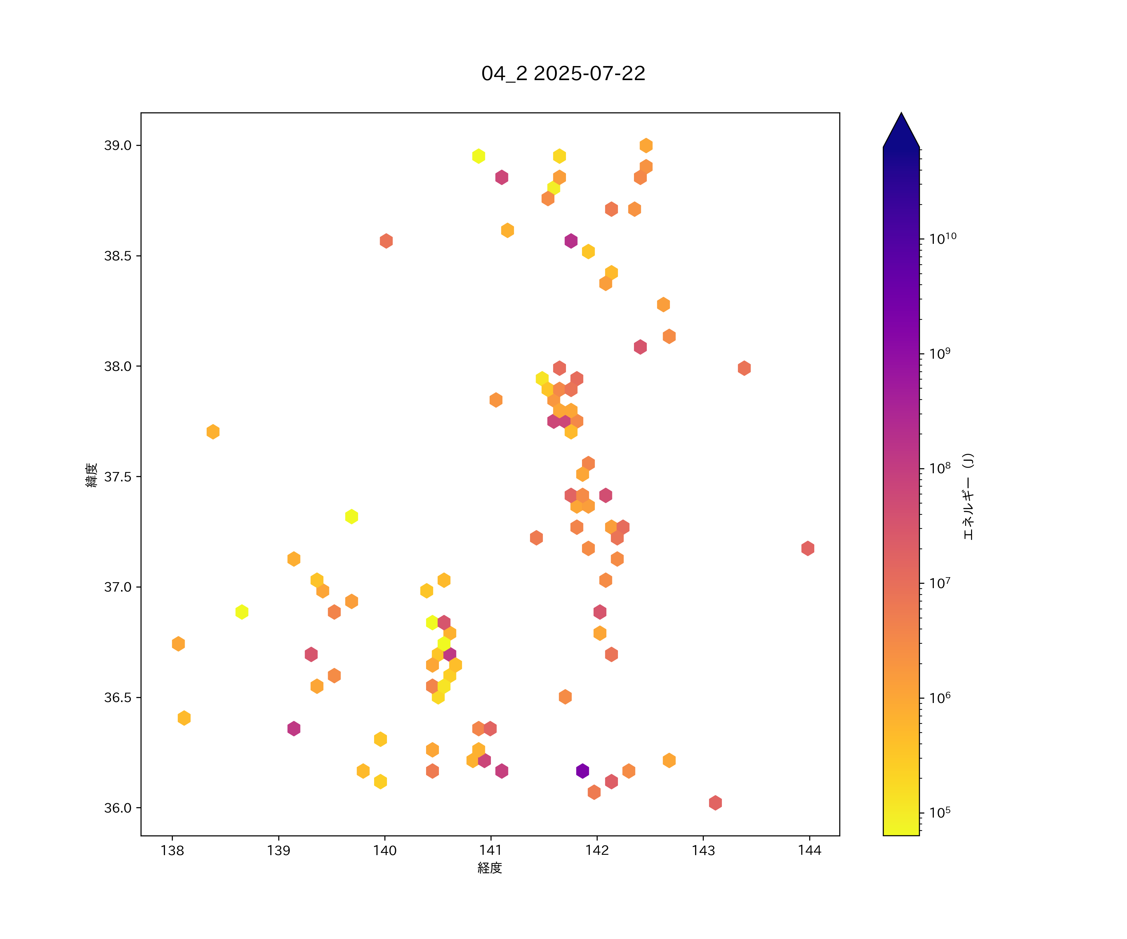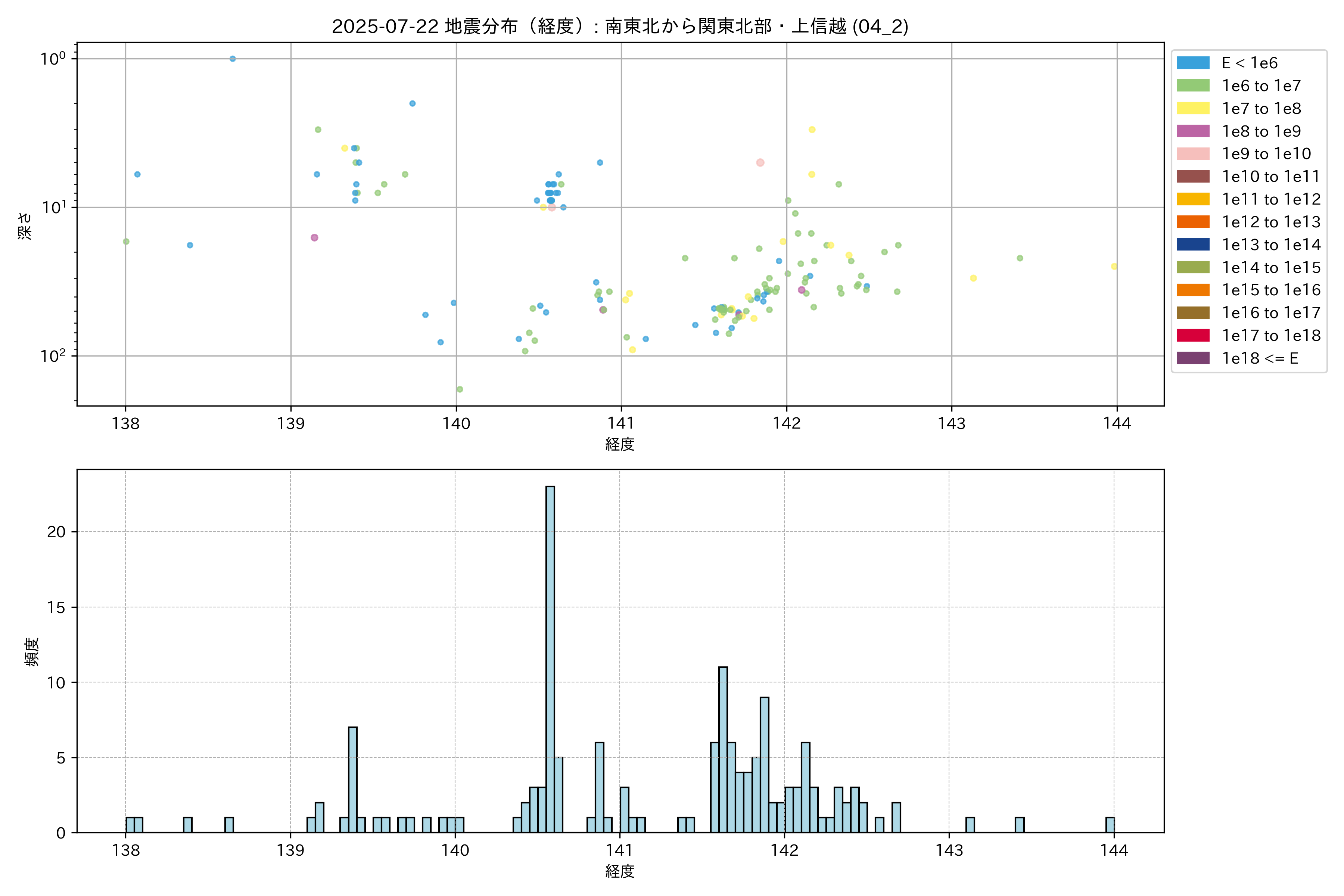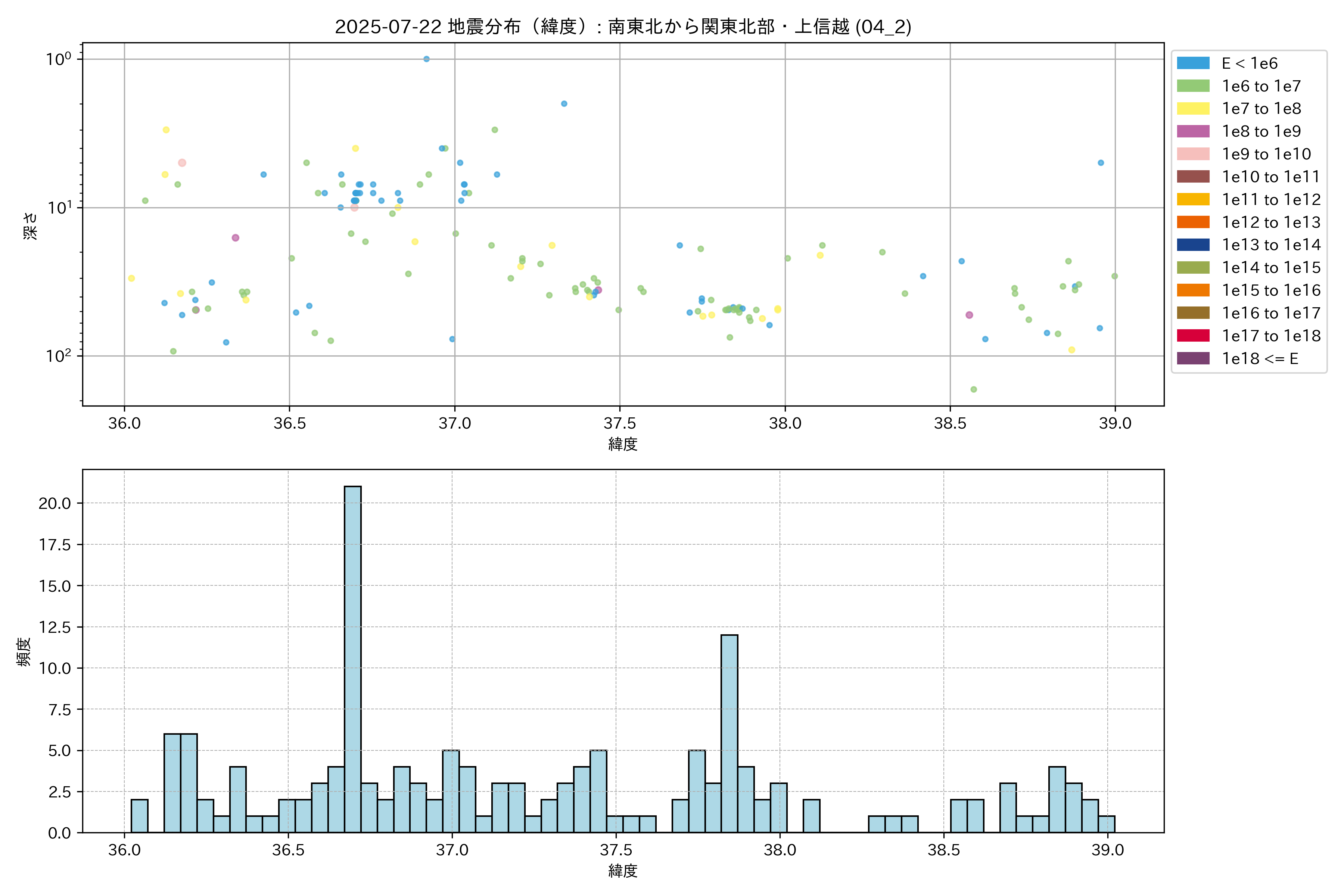 2025年07月22日 南東北から関東北部・上信越 エリア震源マップ