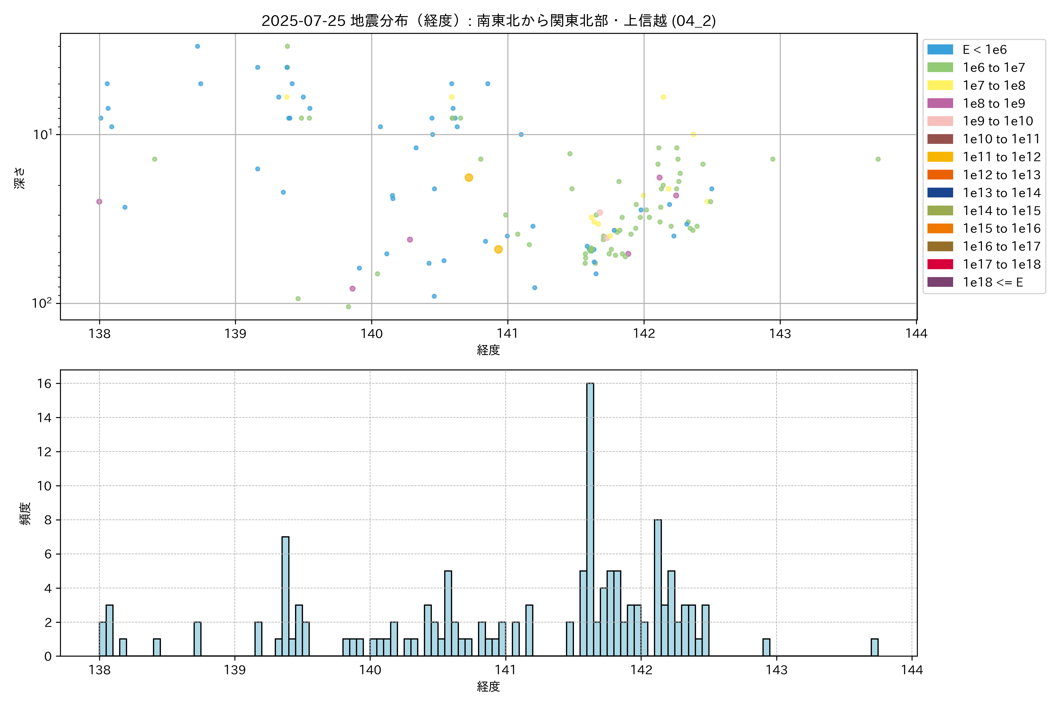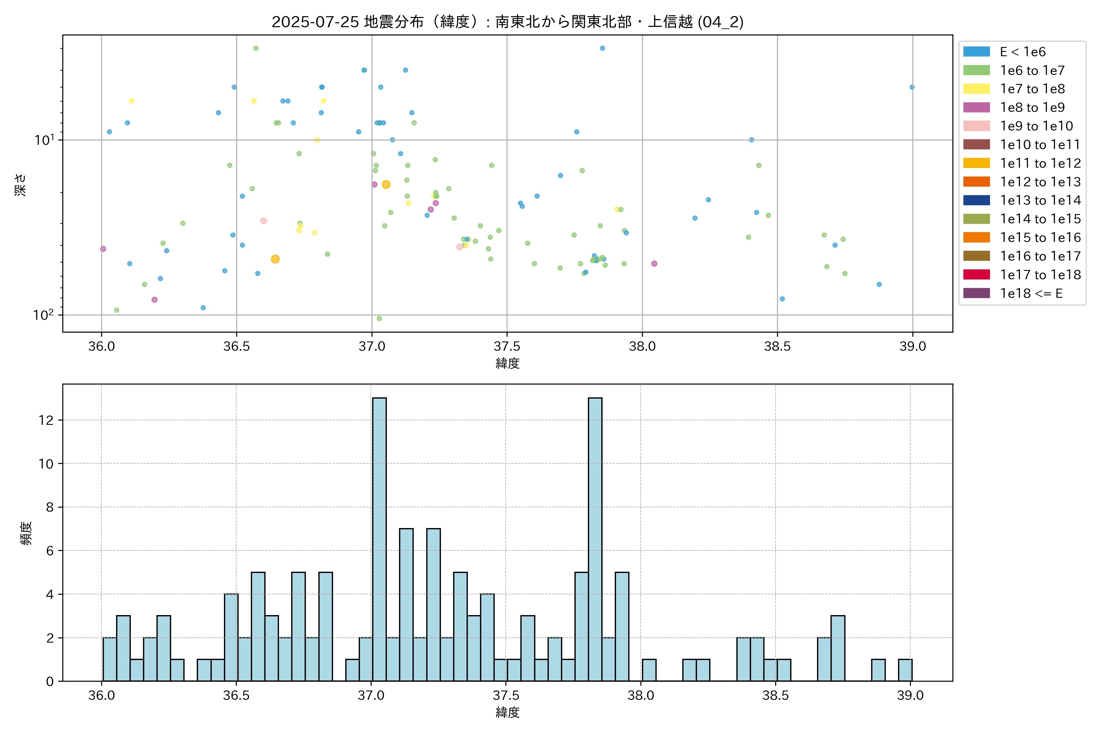 2025年07月25日 南東北から関東北部・上信越 エリア震源マップ