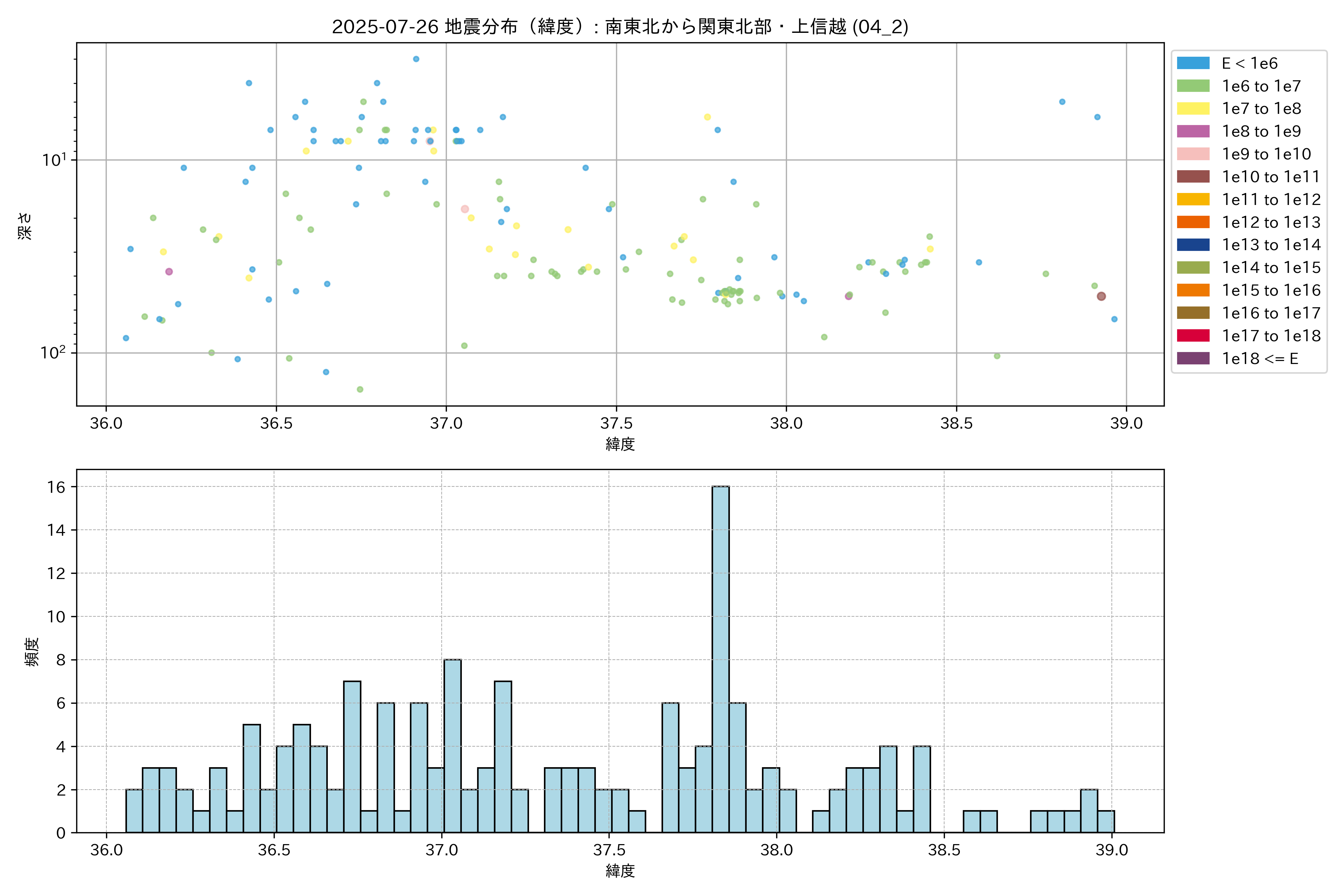 2025年07月26日 南東北から関東北部・上信越 エリア震源マップ