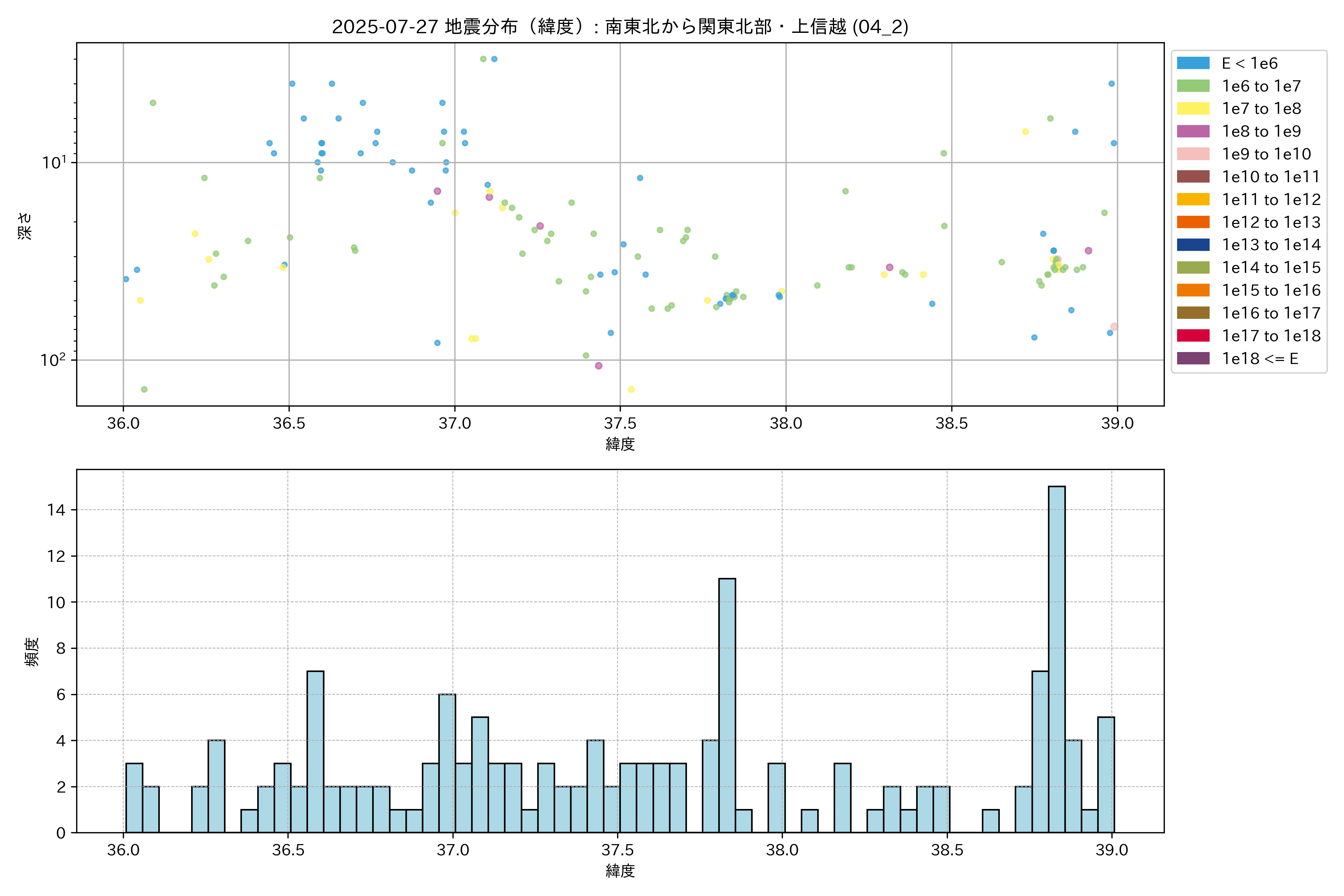 2025年07月27日 南東北から関東北部・上信越 エリア震源マップ