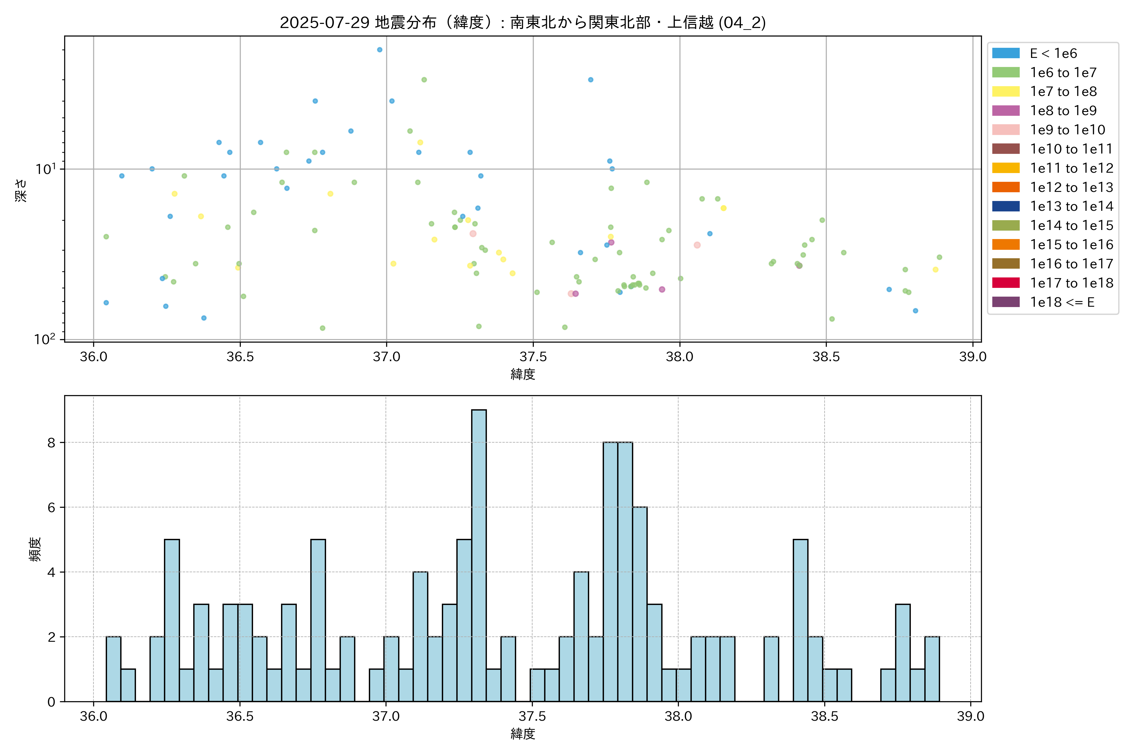 2025年07月29日 南東北から関東北部・上信越 エリア震源マップ