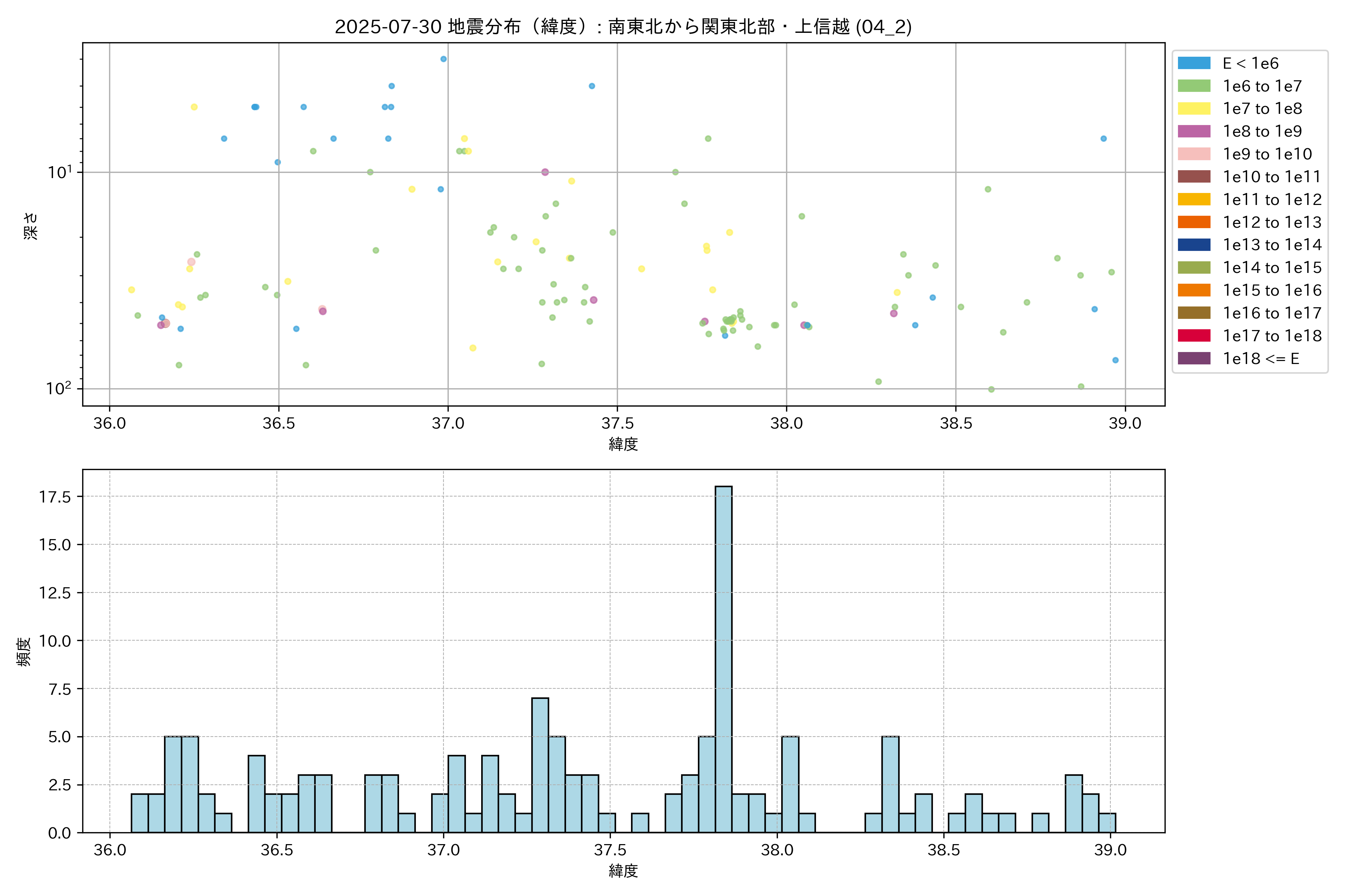 2025年07月30日 南東北から関東北部・上信越 エリア震源マップ