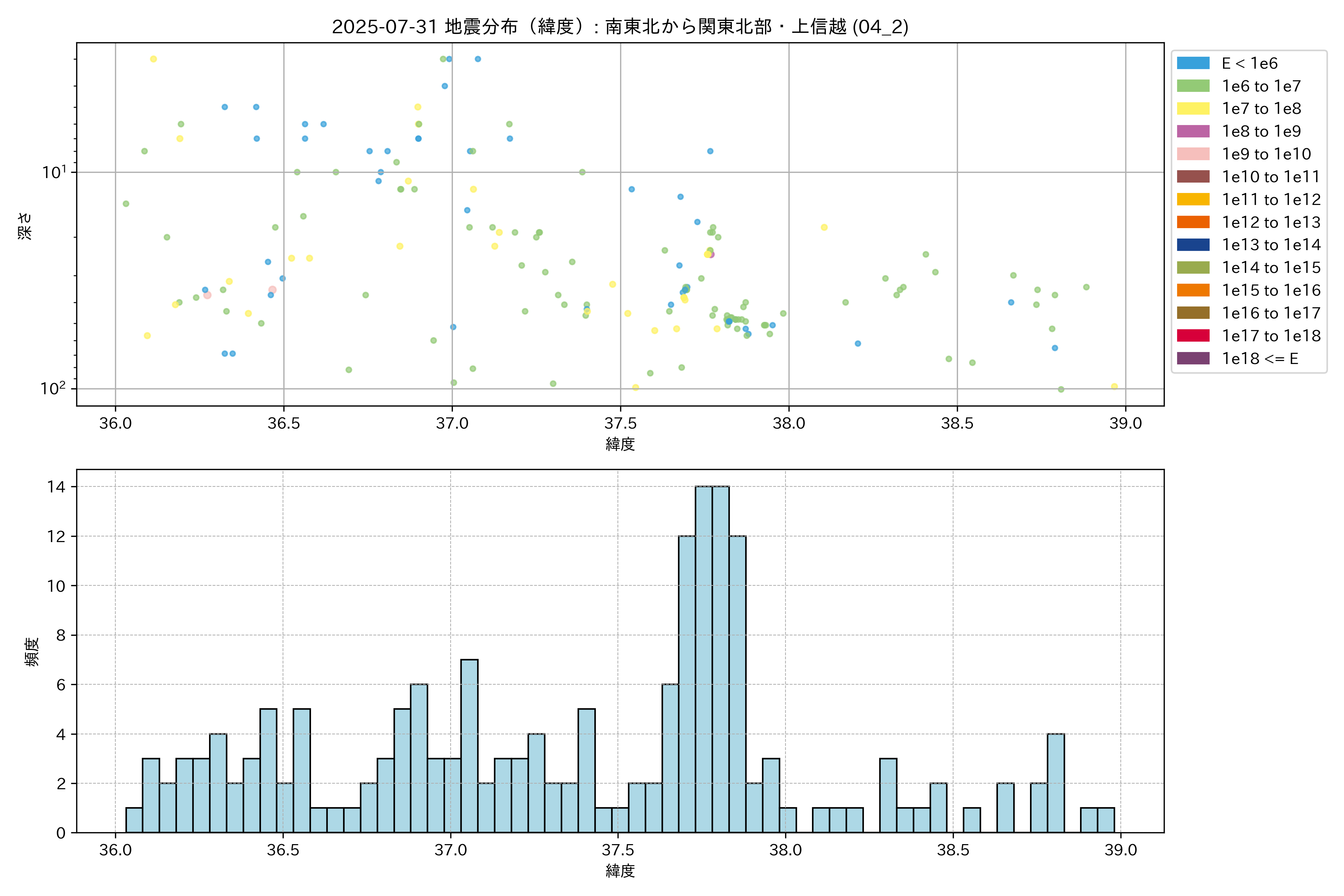 2025年07月31日 南東北から関東北部・上信越 エリア震源マップ