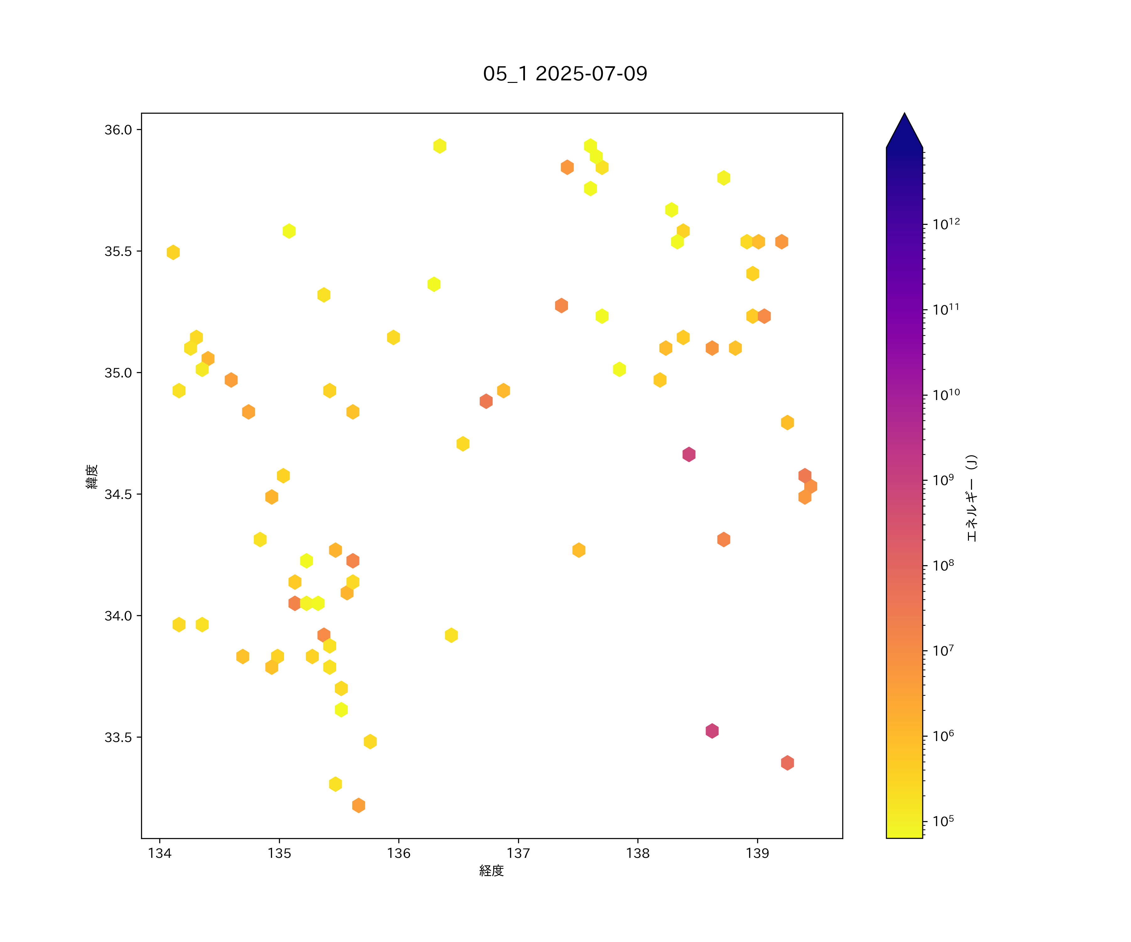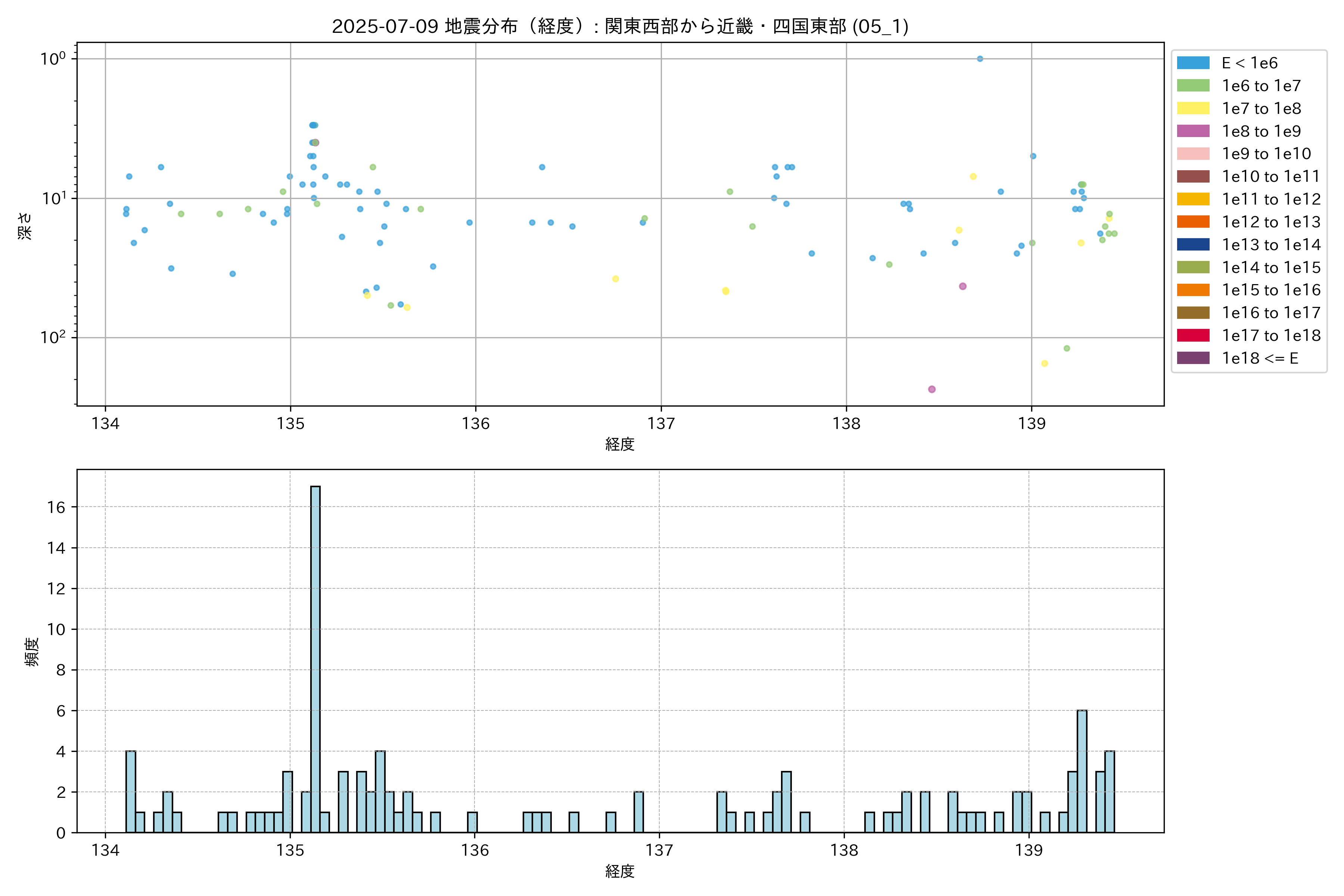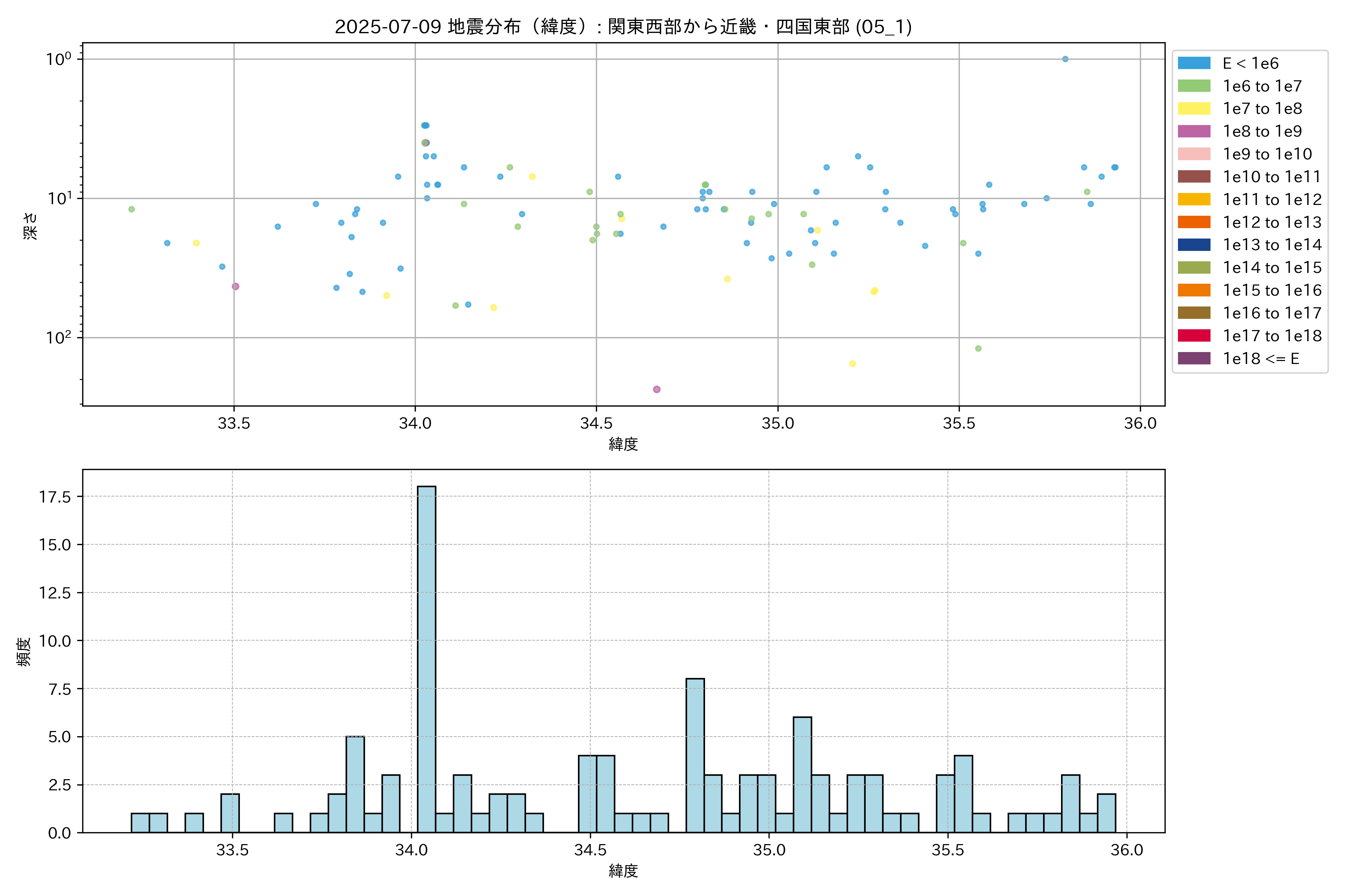 2025年07月09日 関東西部から近畿・四国東部 エリア震源マップ