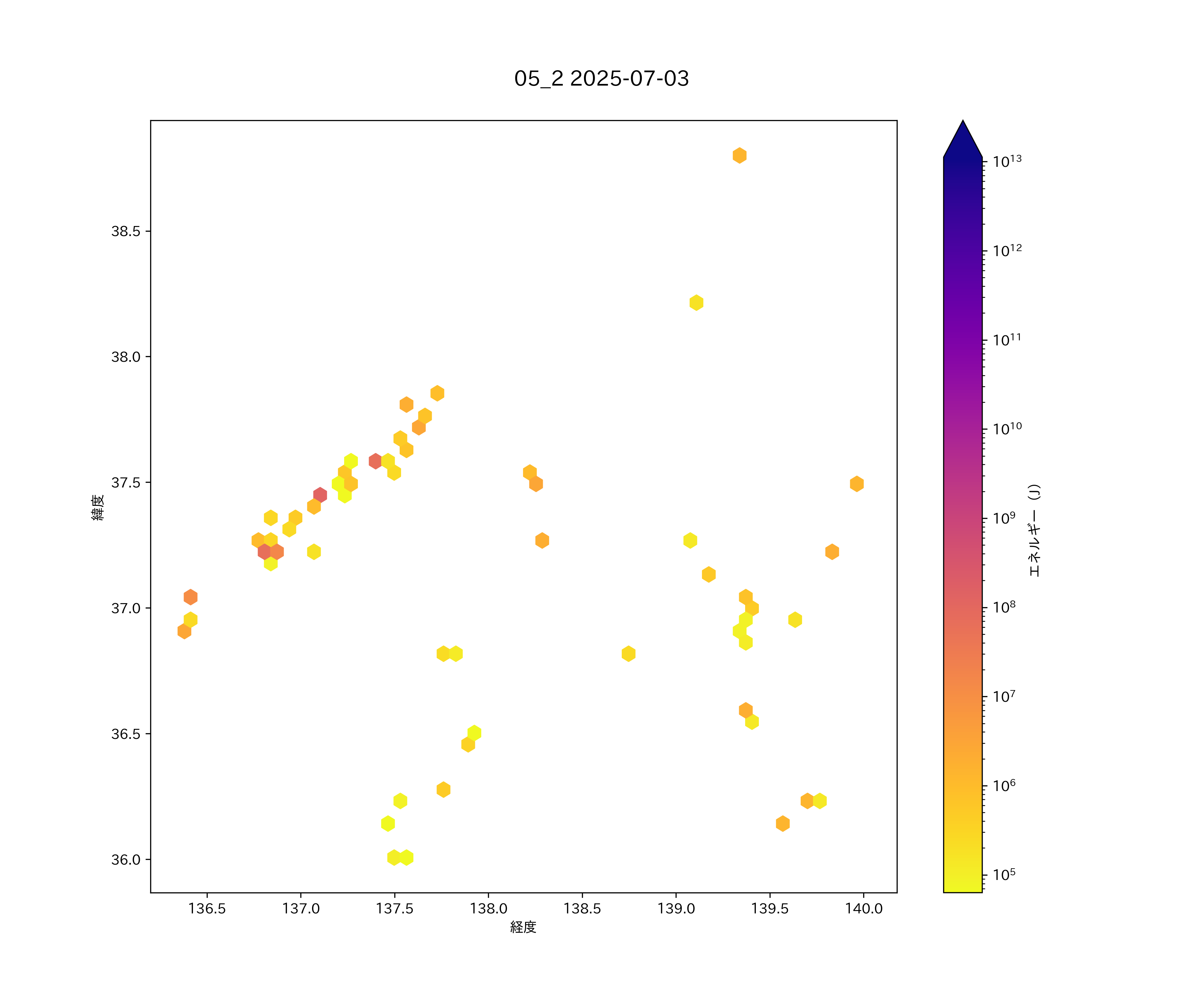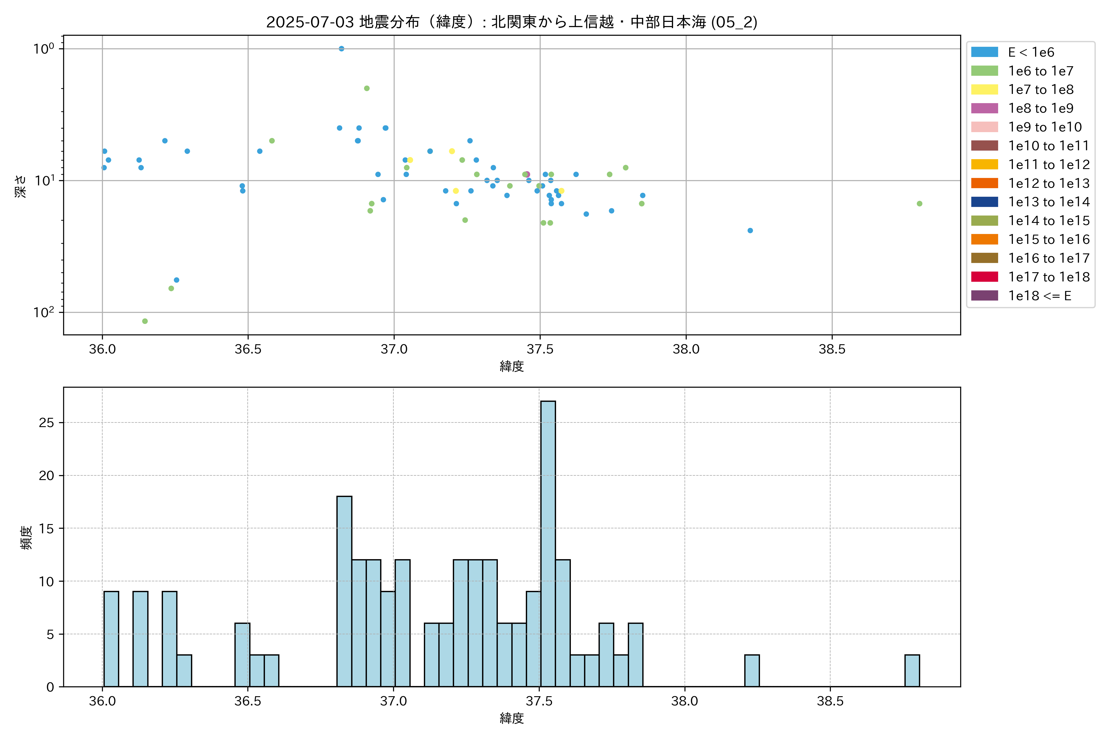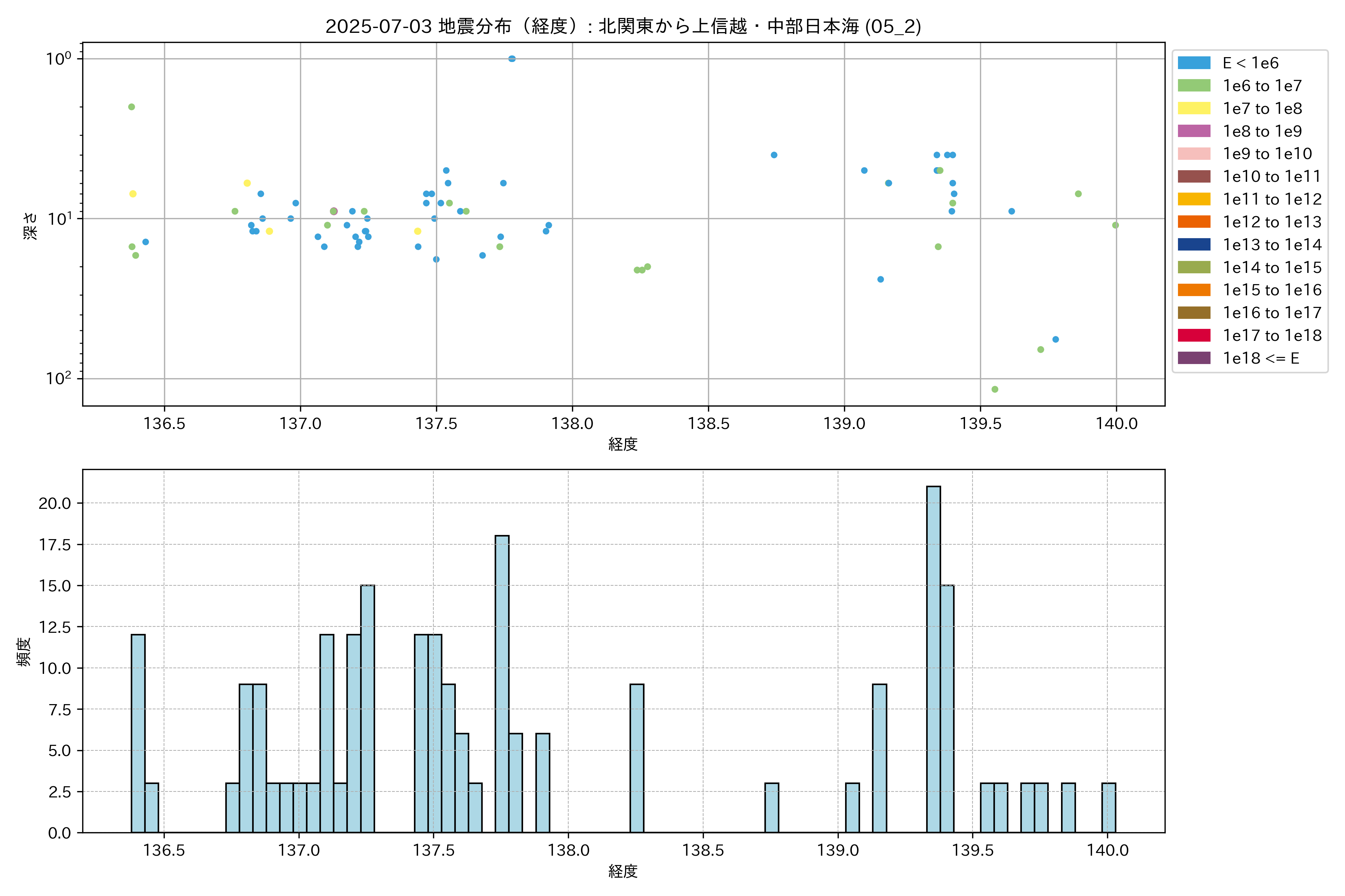 2025年07月03日 北関東から上信越・中部日本海 エリア震源マップ