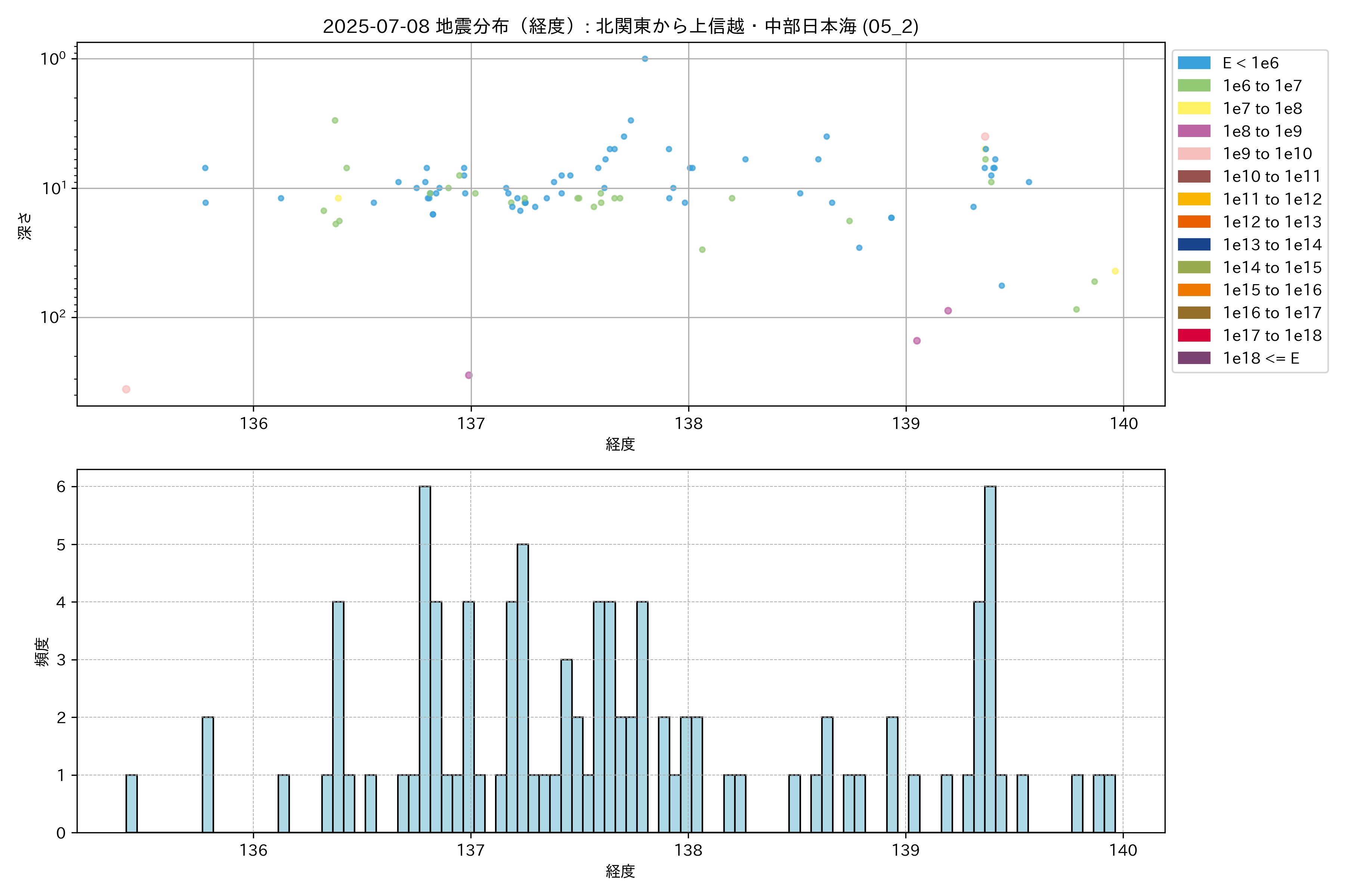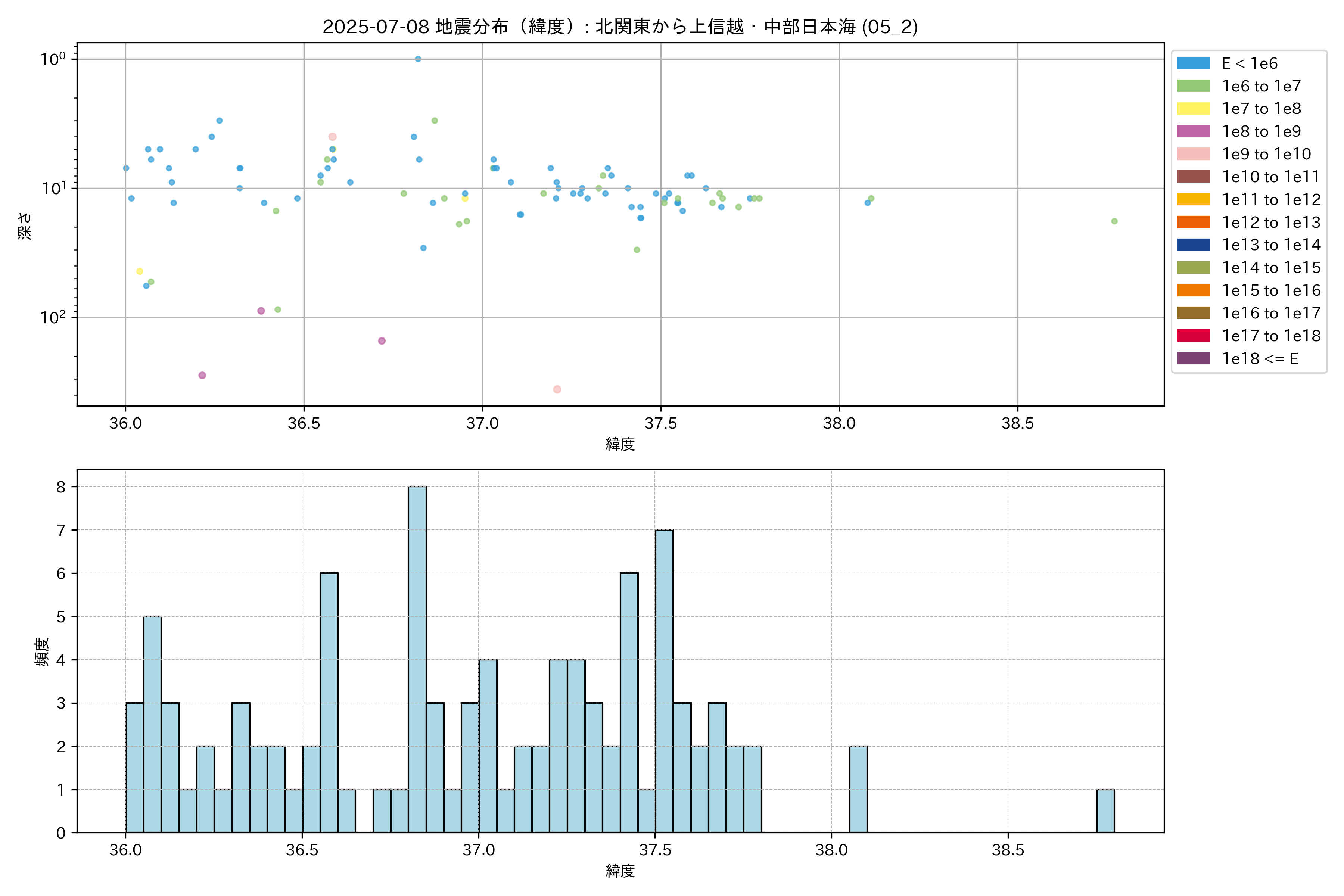 2025年07月08日 北関東から上信越・中部日本海 エリア震源マップ