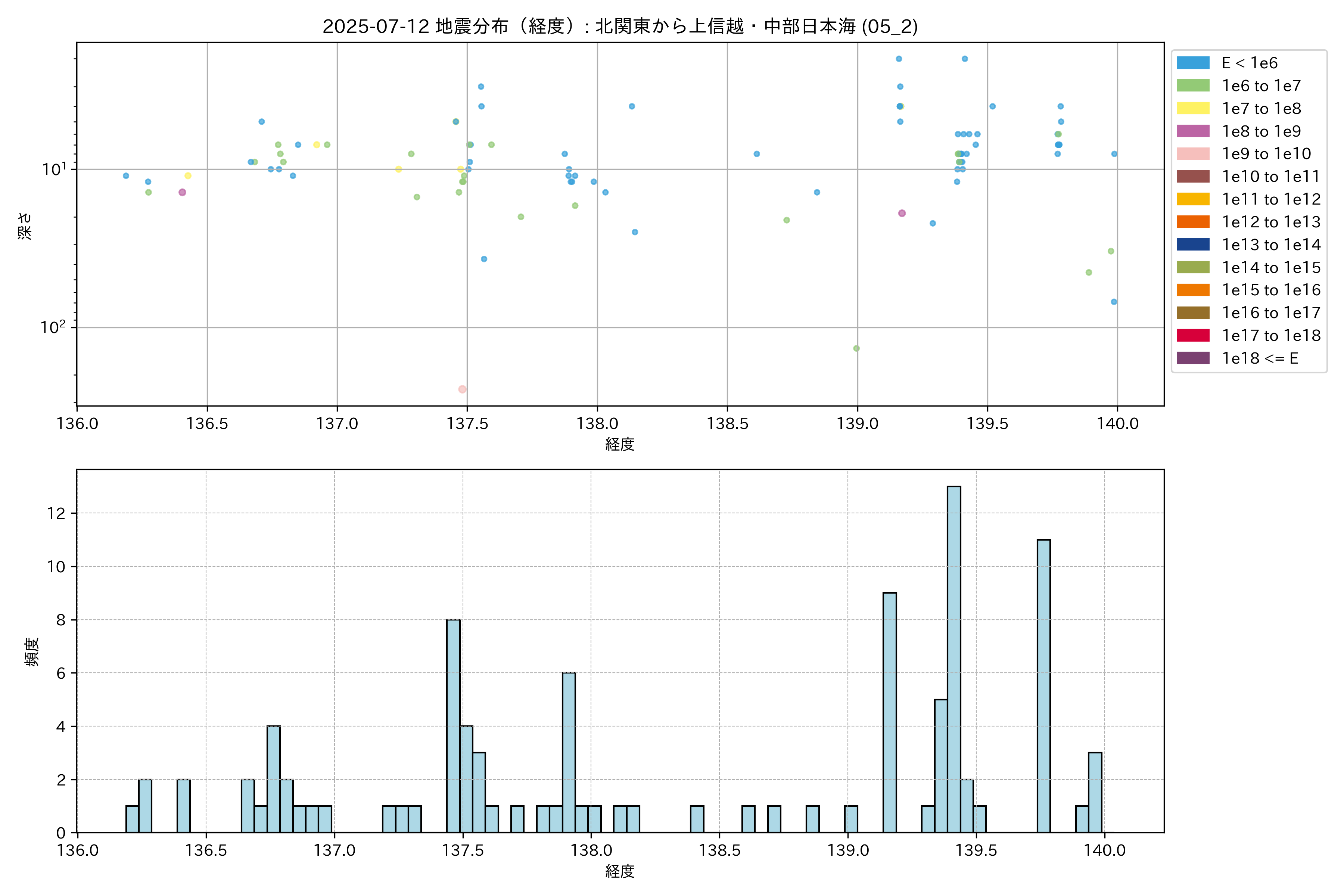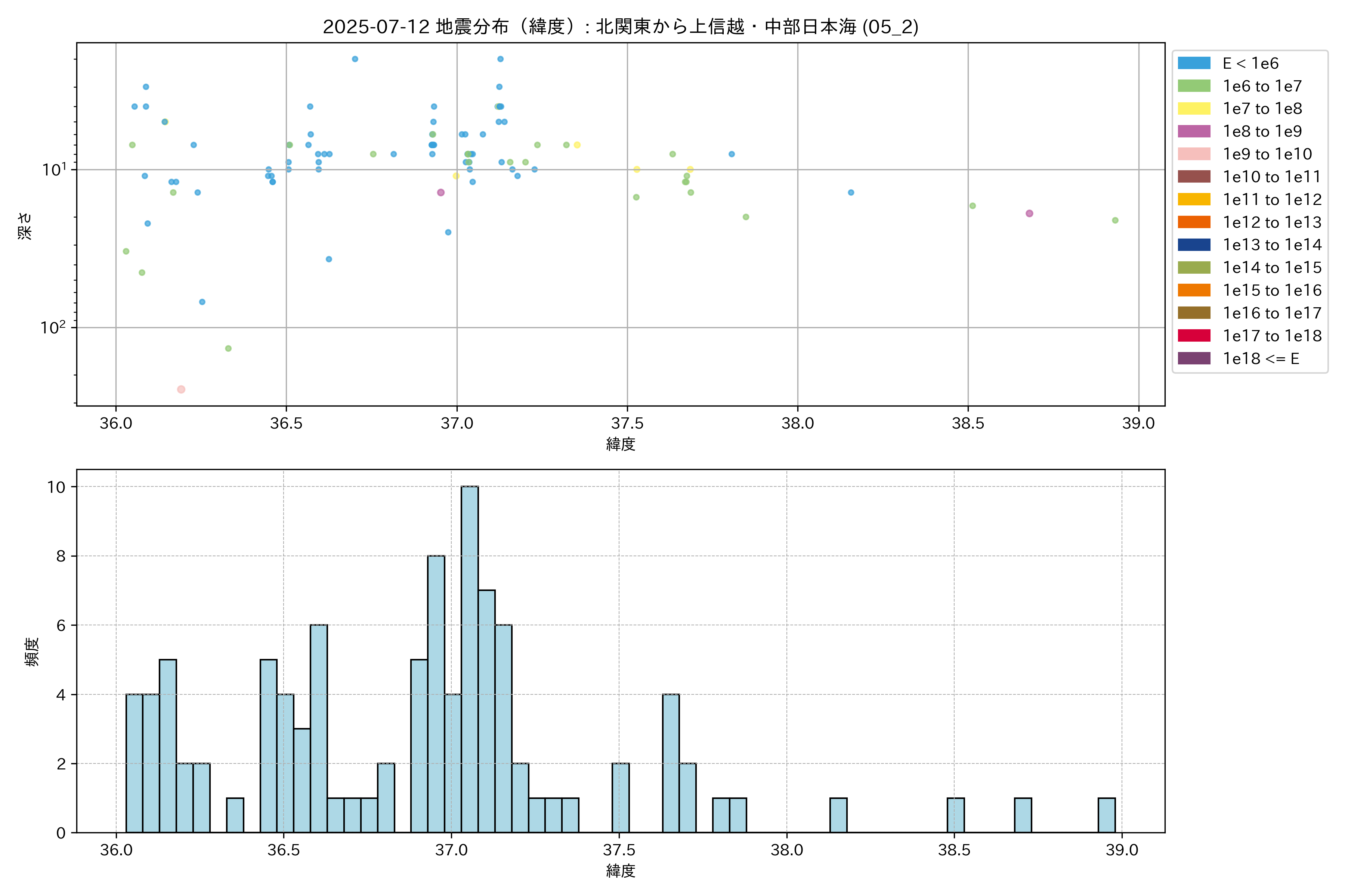 2025年07月12日 北関東から上信越・中部日本海 エリア震源マップ