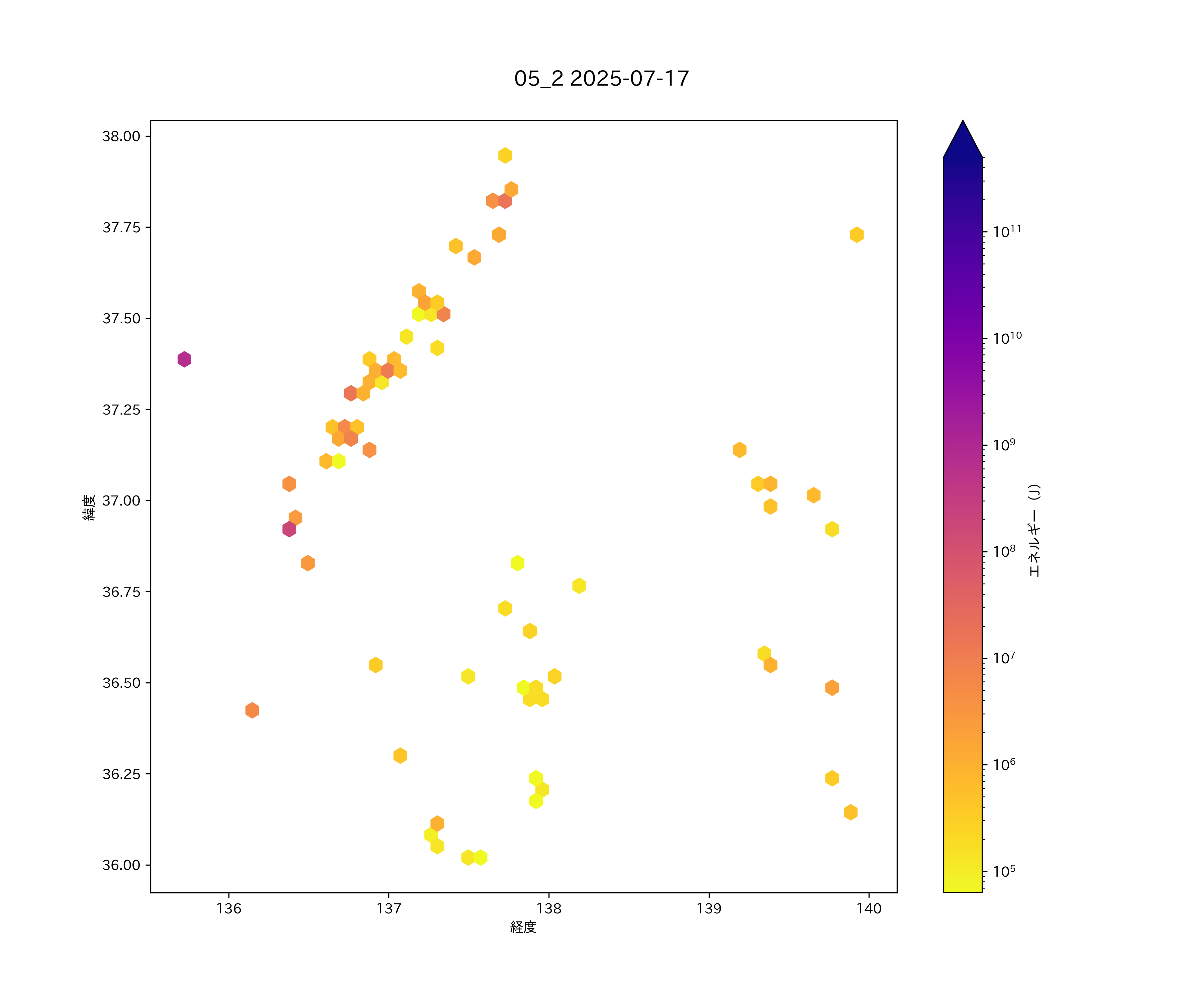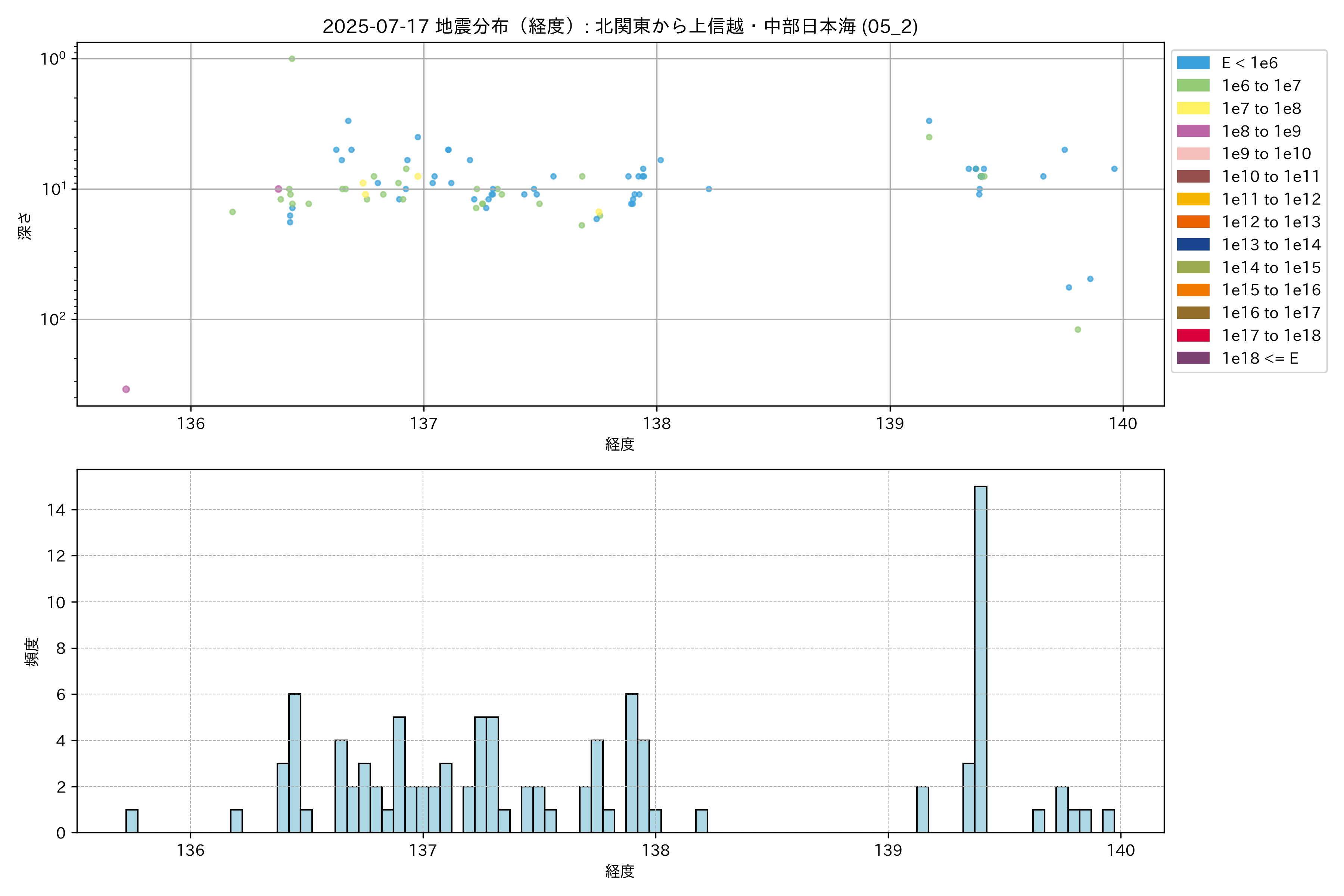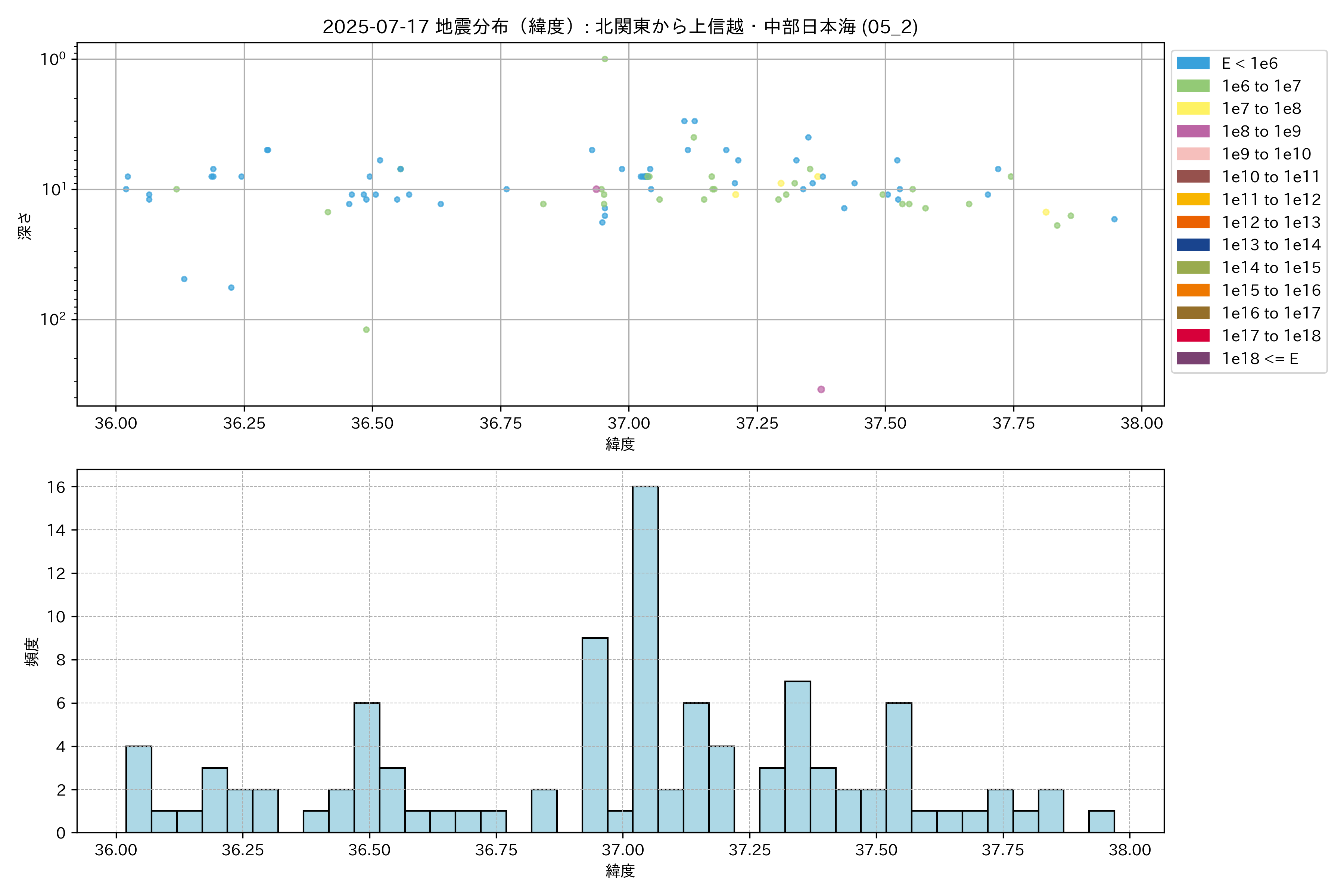2025年07月17日 北関東から上信越・中部日本海 エリア震源マップ