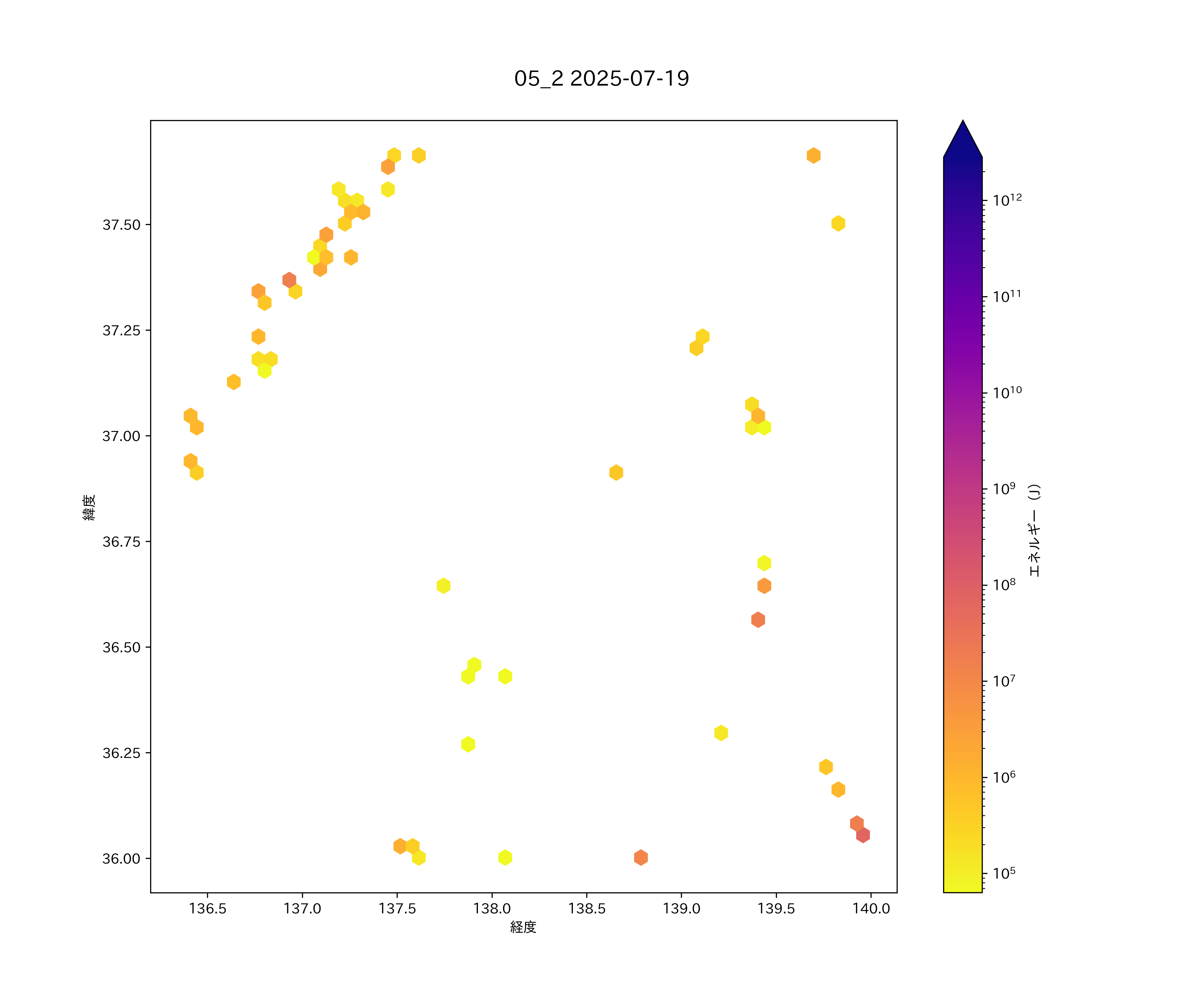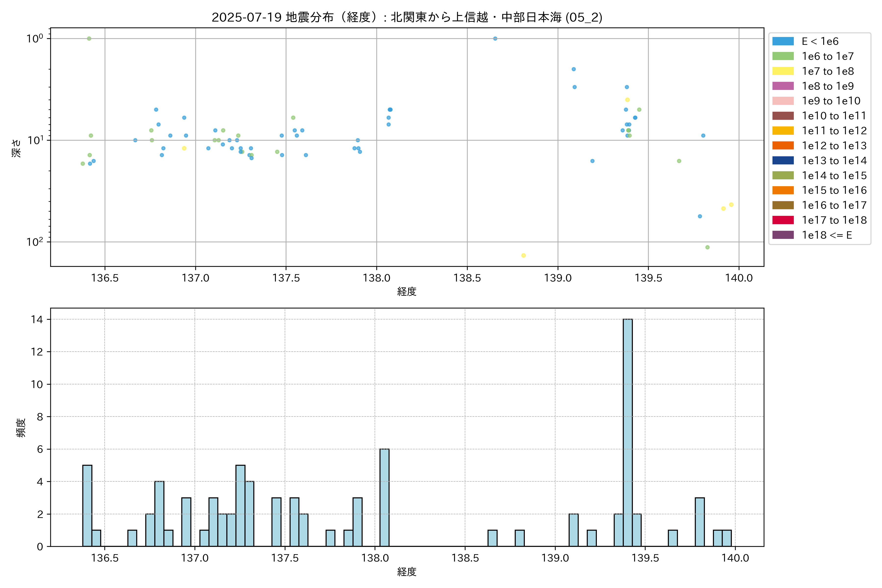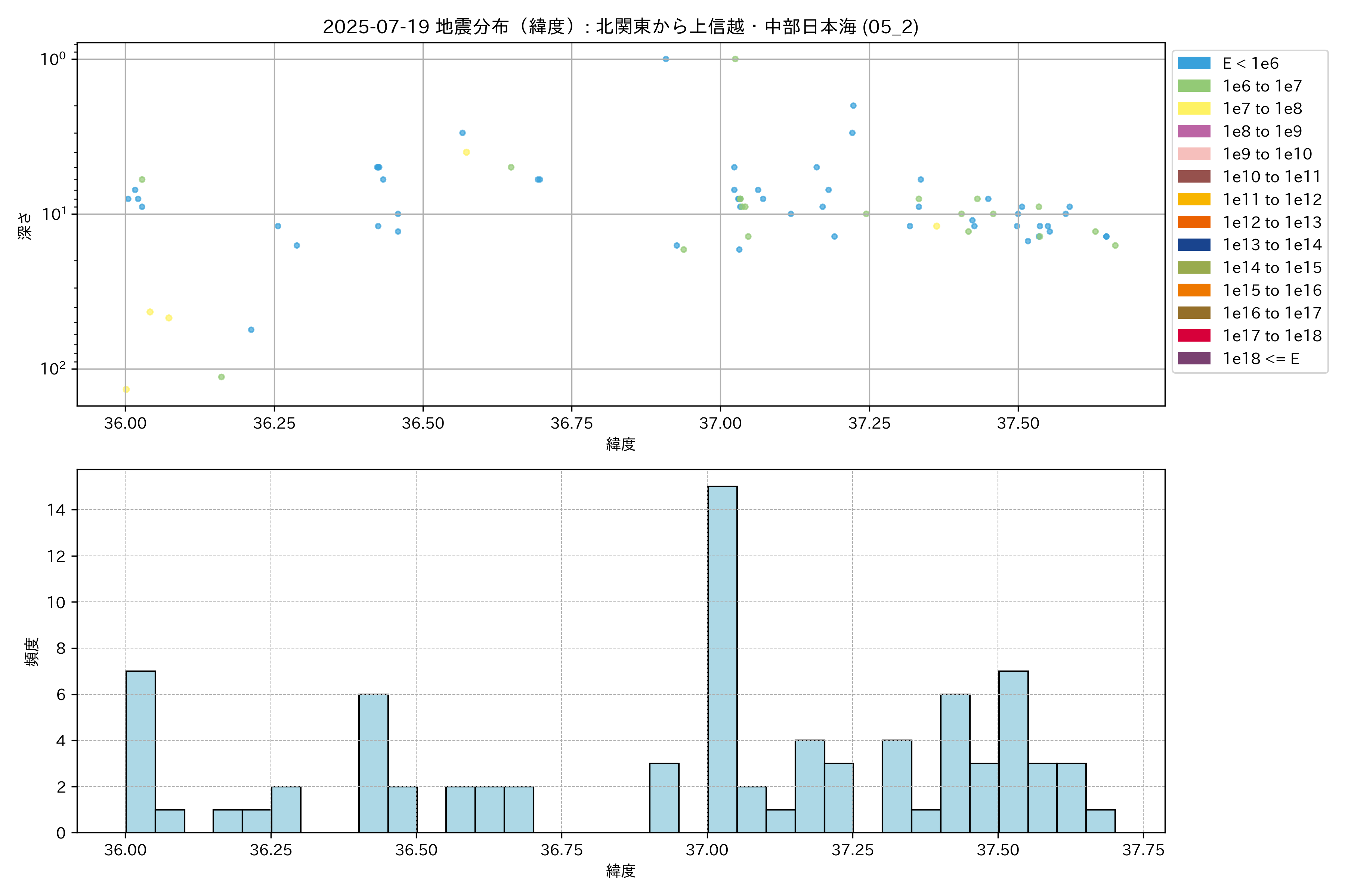 2025年07月19日 北関東から上信越・中部日本海 エリア震源マップ