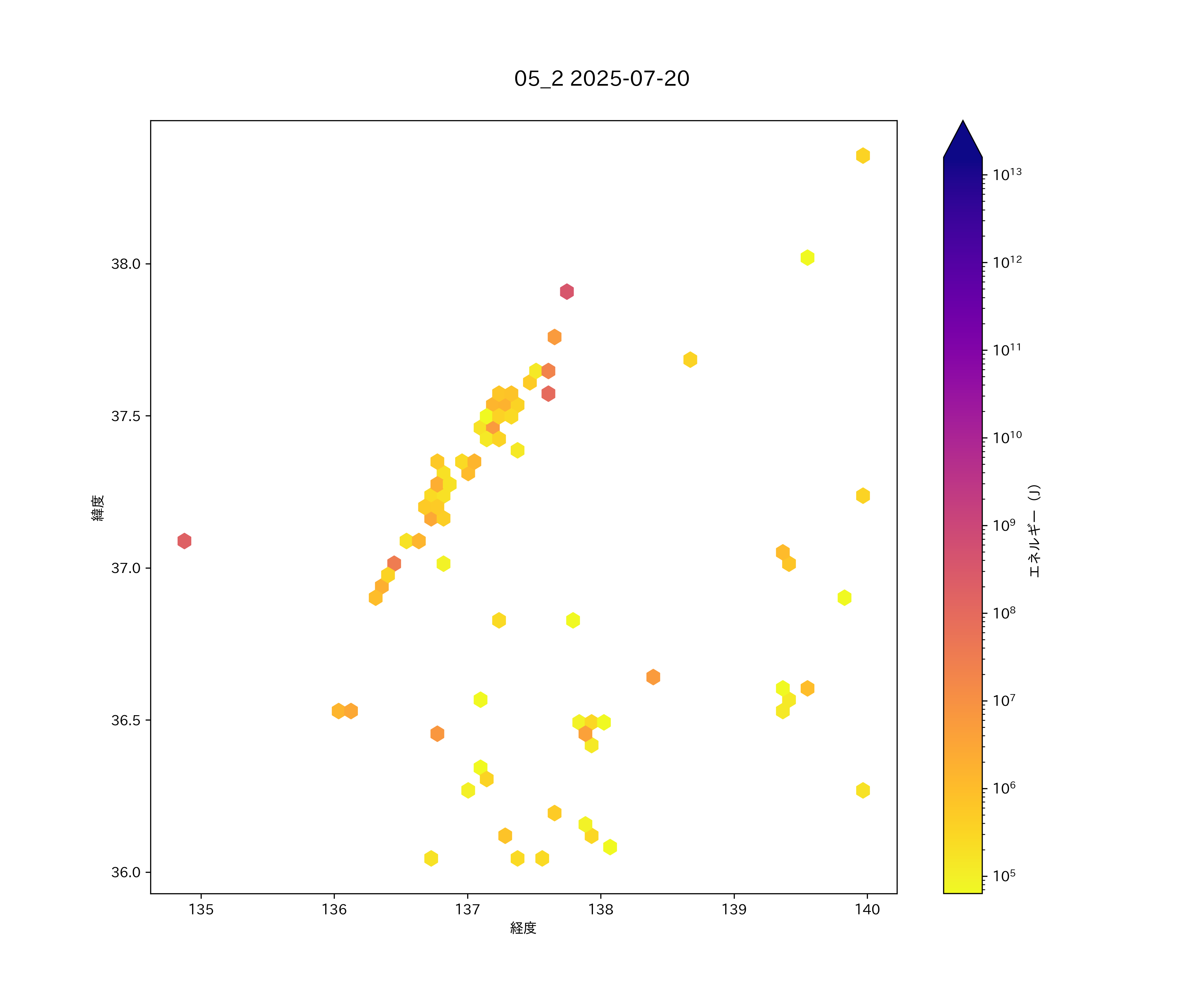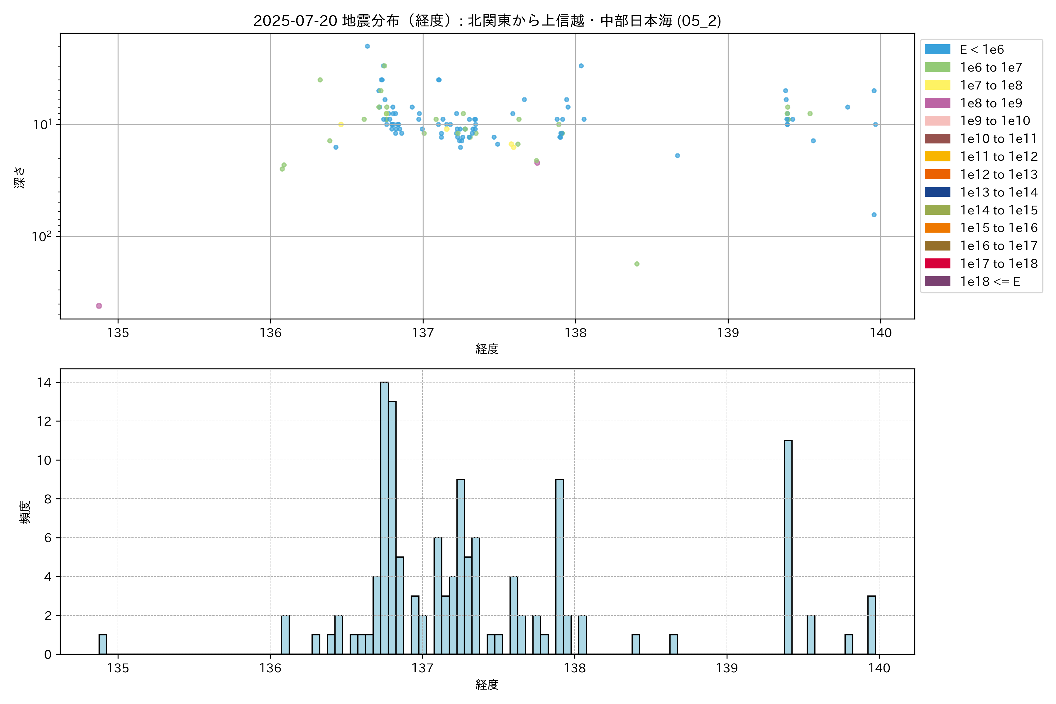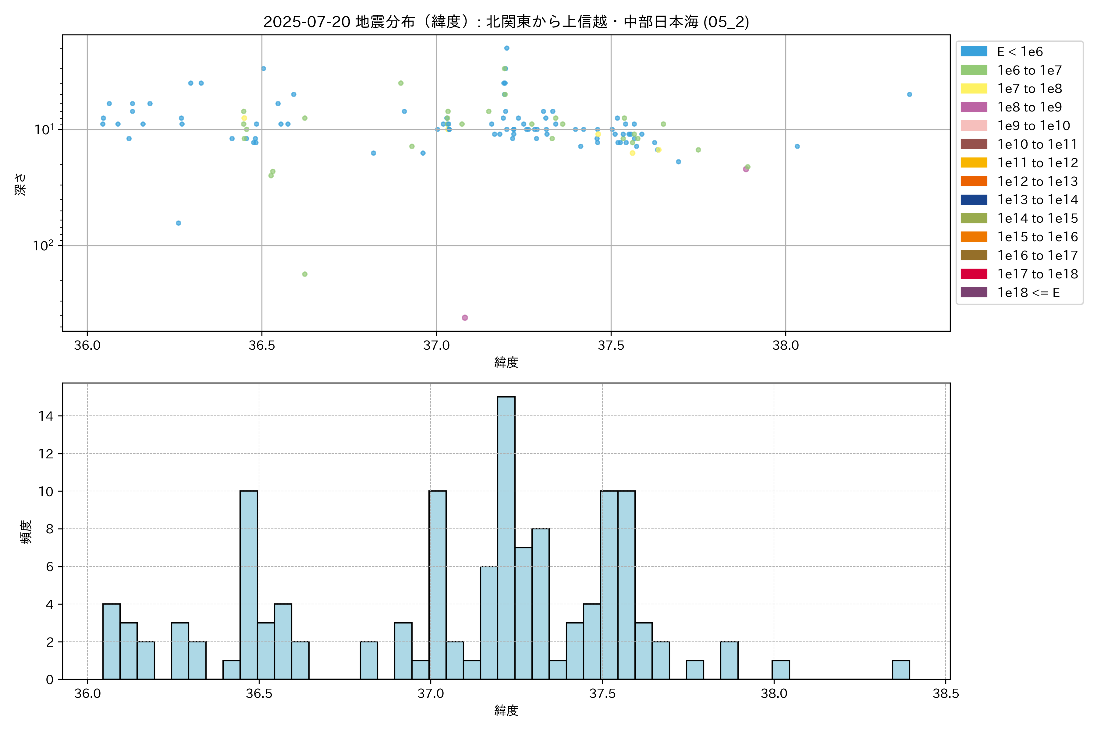 2025年07月20日 北関東から上信越・中部日本海 エリア震源マップ