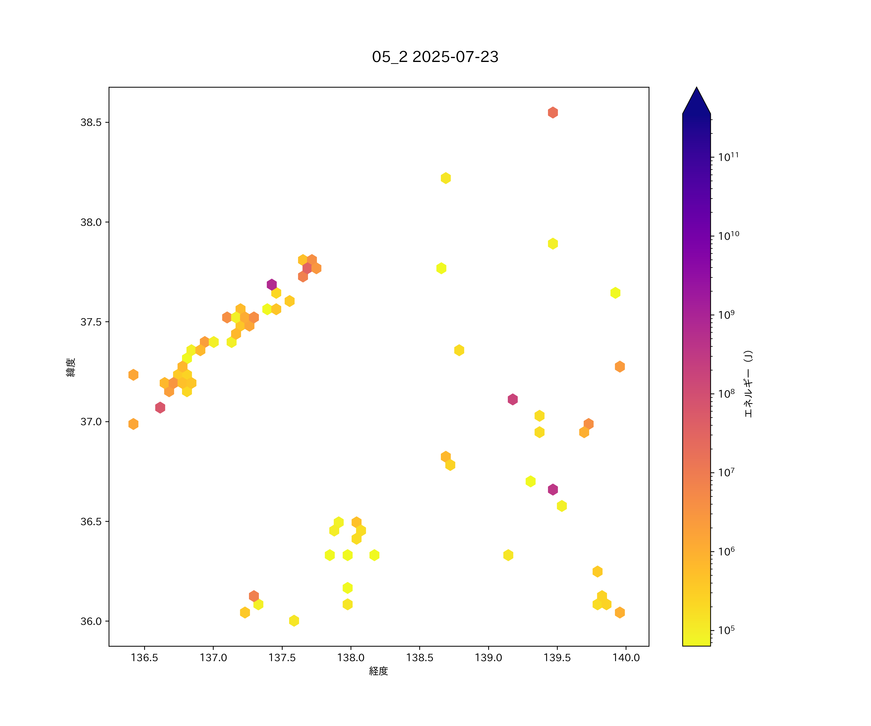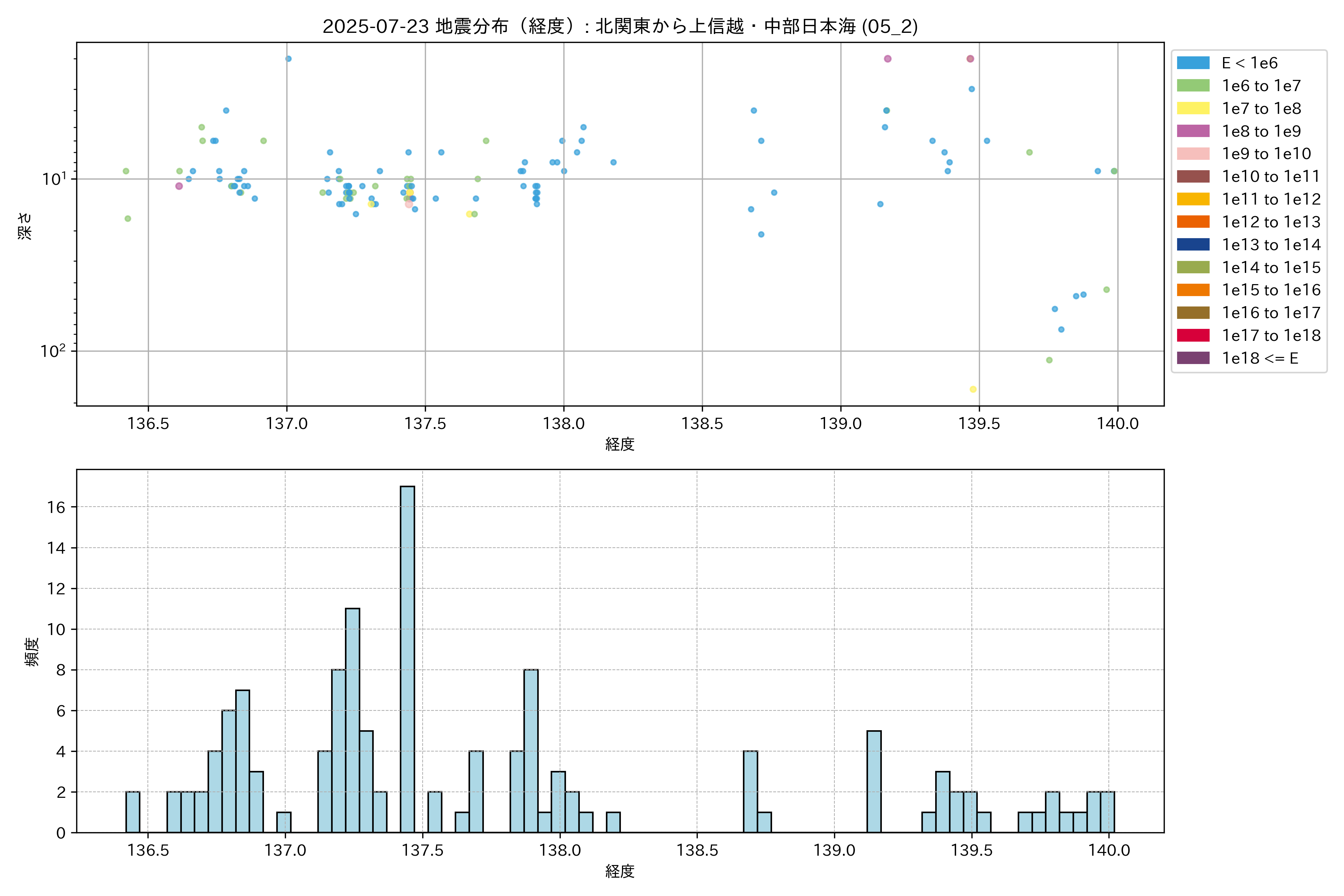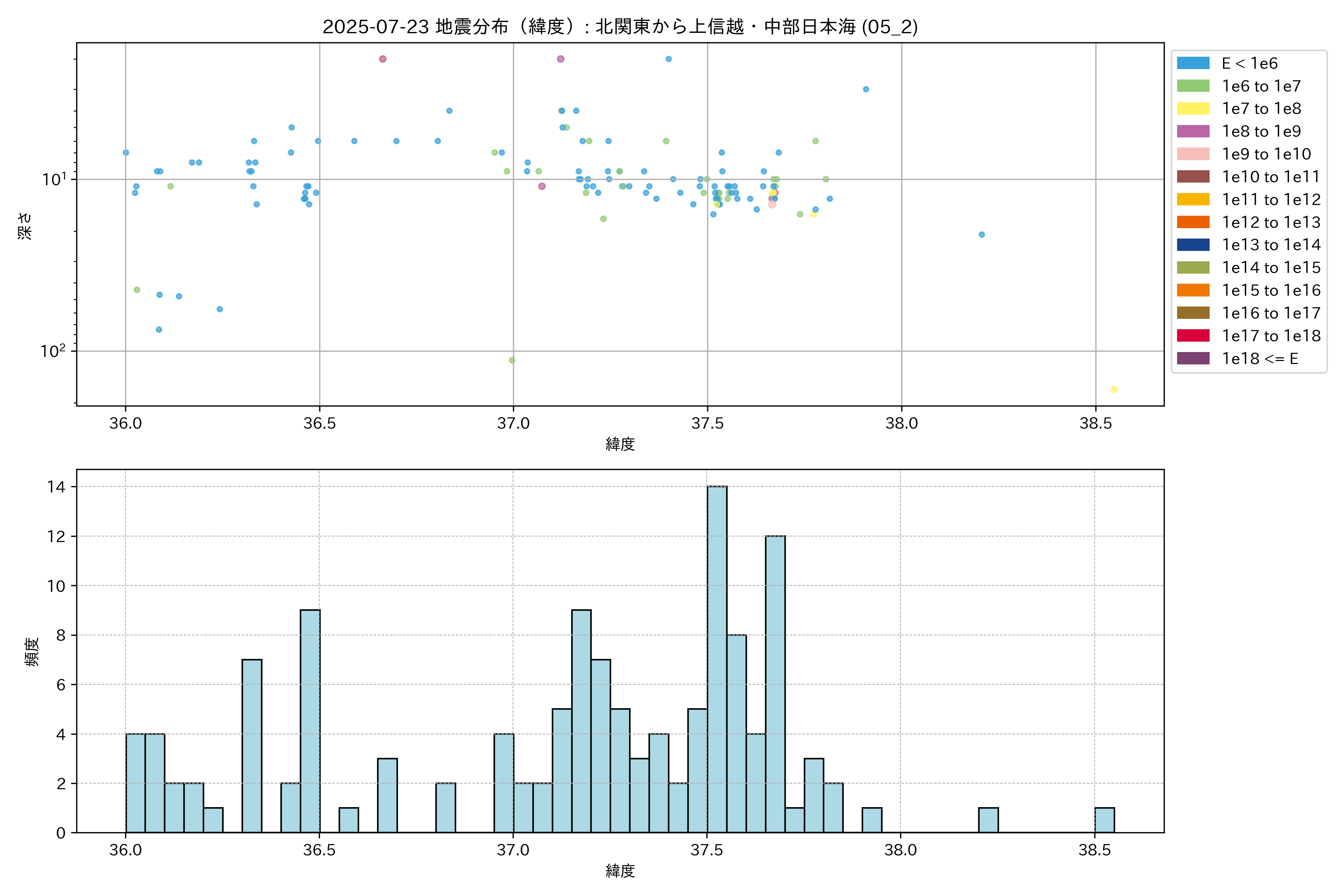 2025年07月23日 北関東から上信越・中部日本海 エリア震源マップ