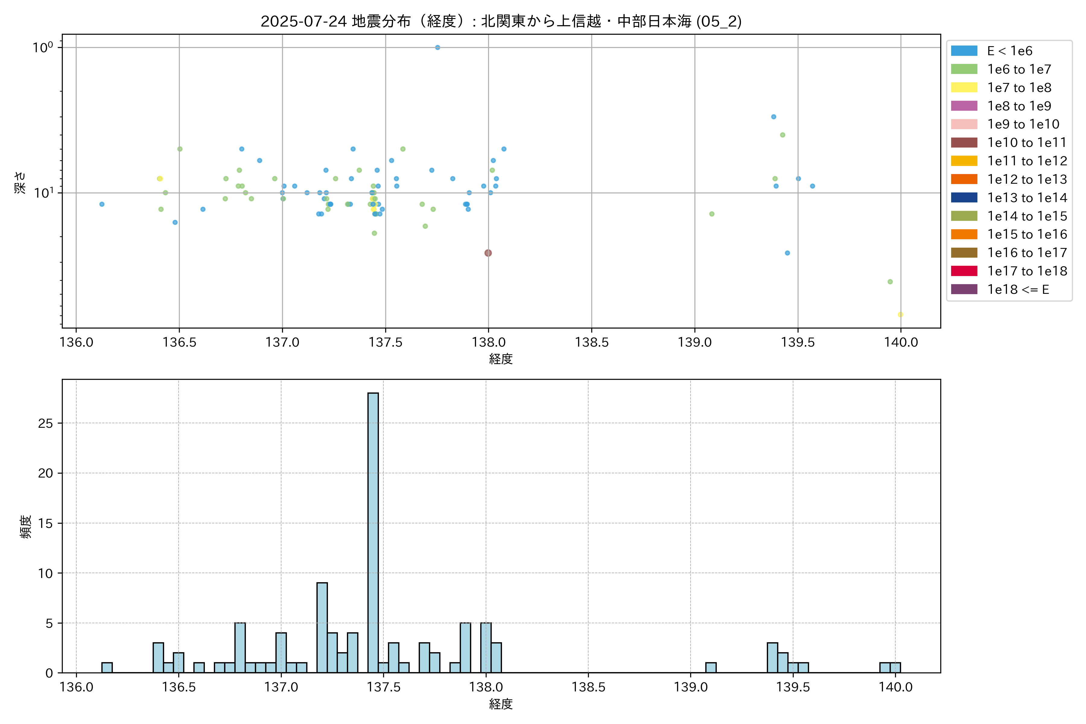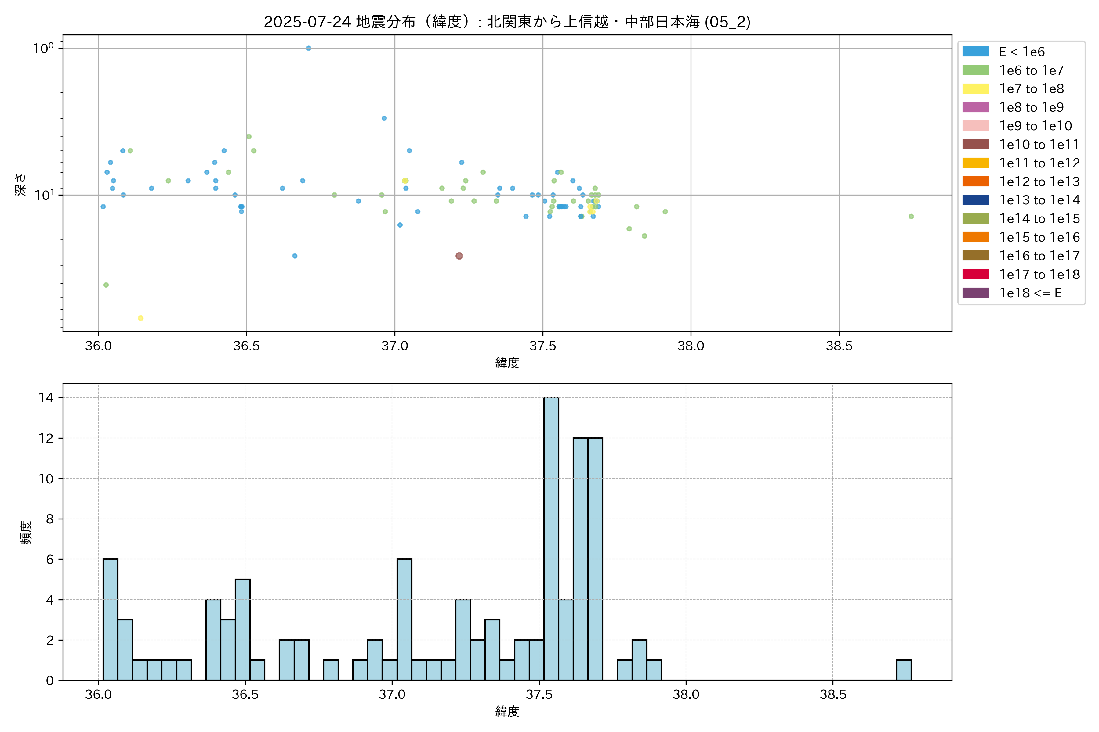 2025年07月24日 北関東から上信越・中部日本海 エリア震源マップ