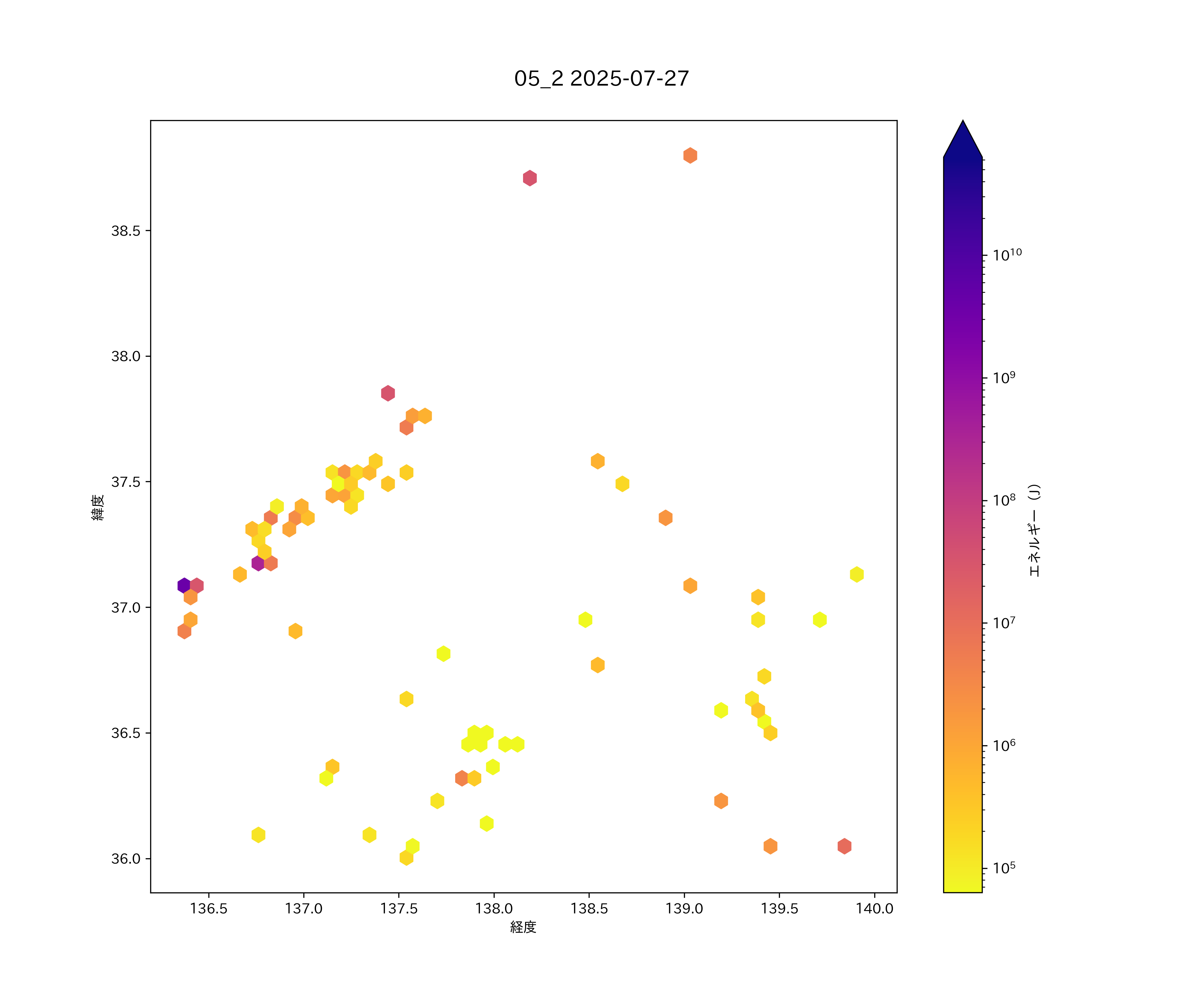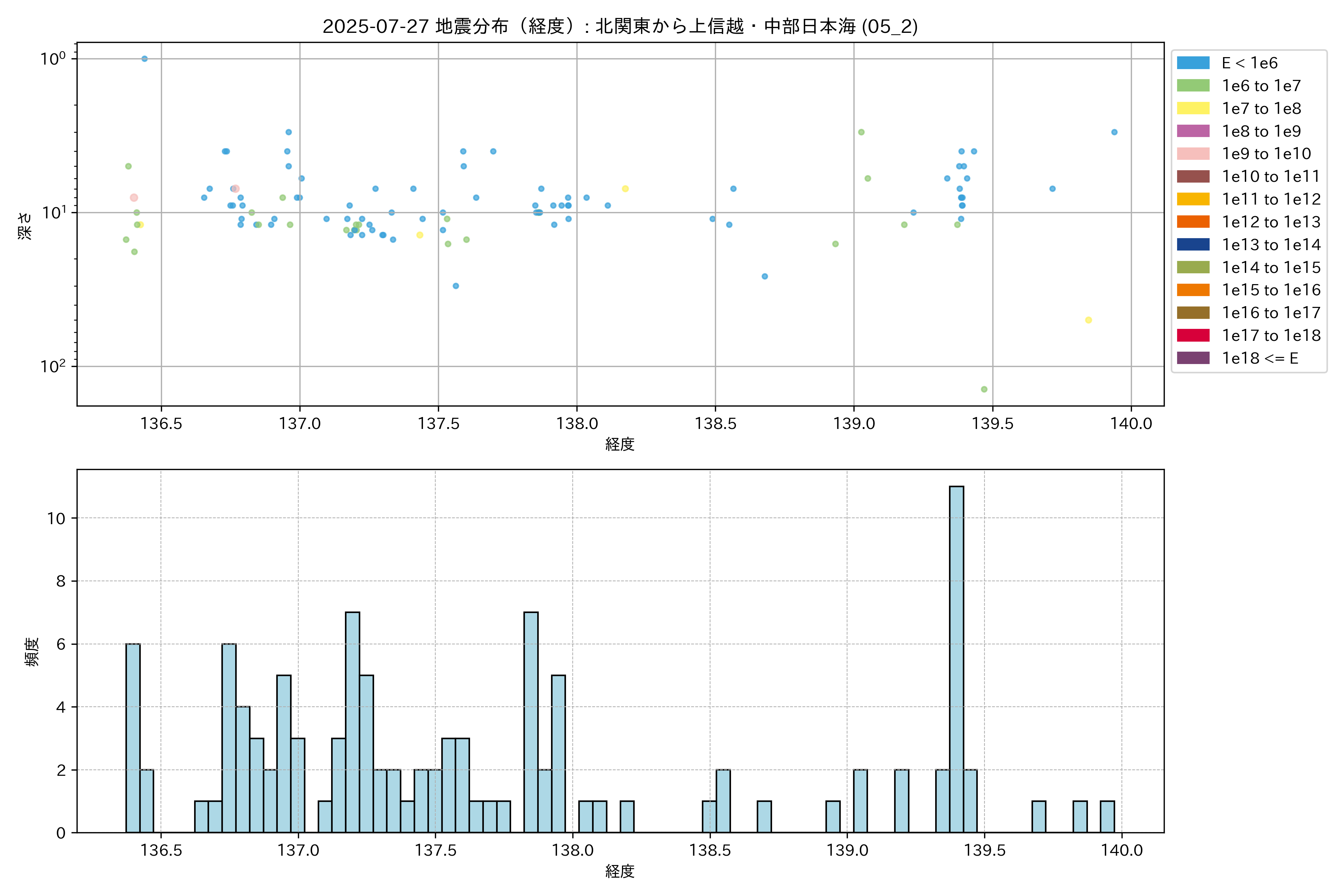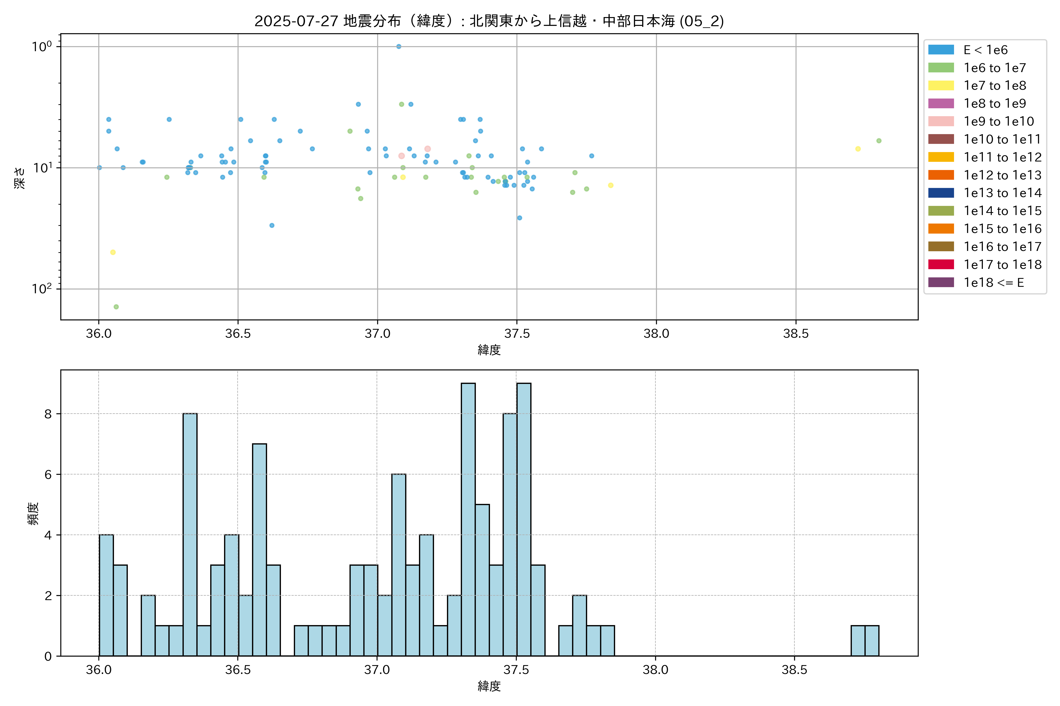 2025年07月27日 北関東から上信越・中部日本海 エリア震源マップ
