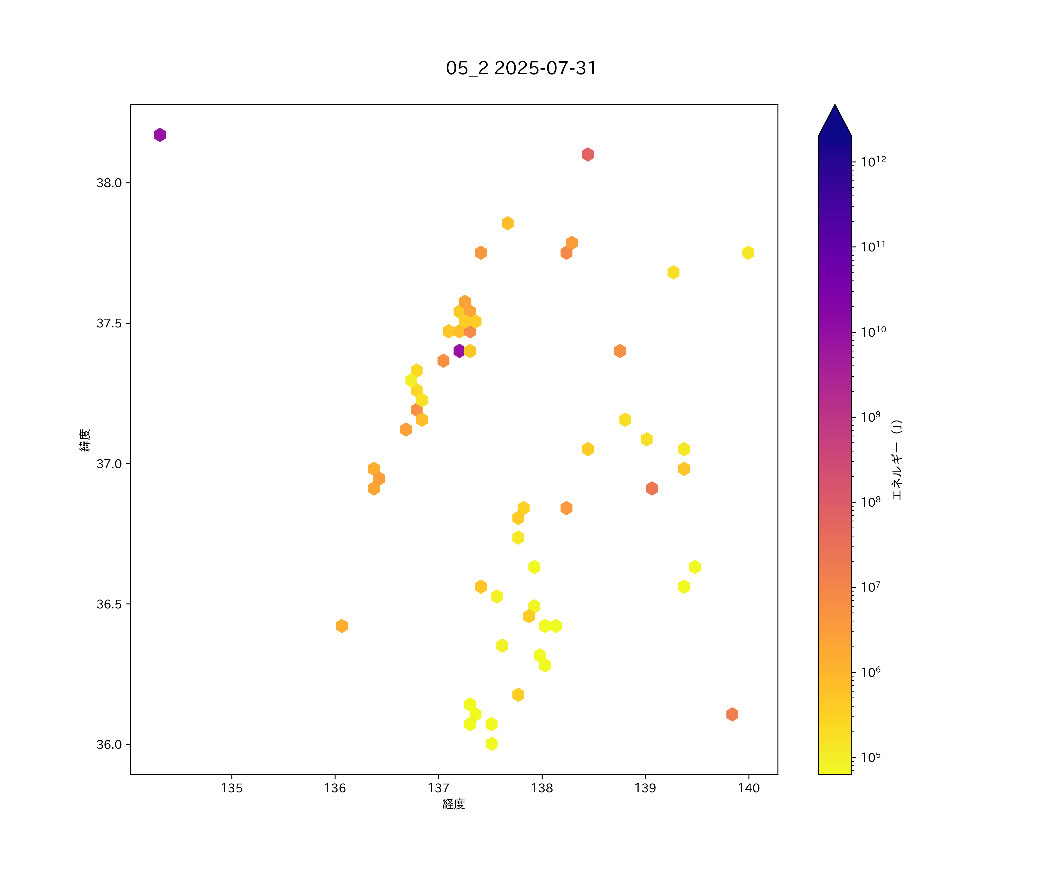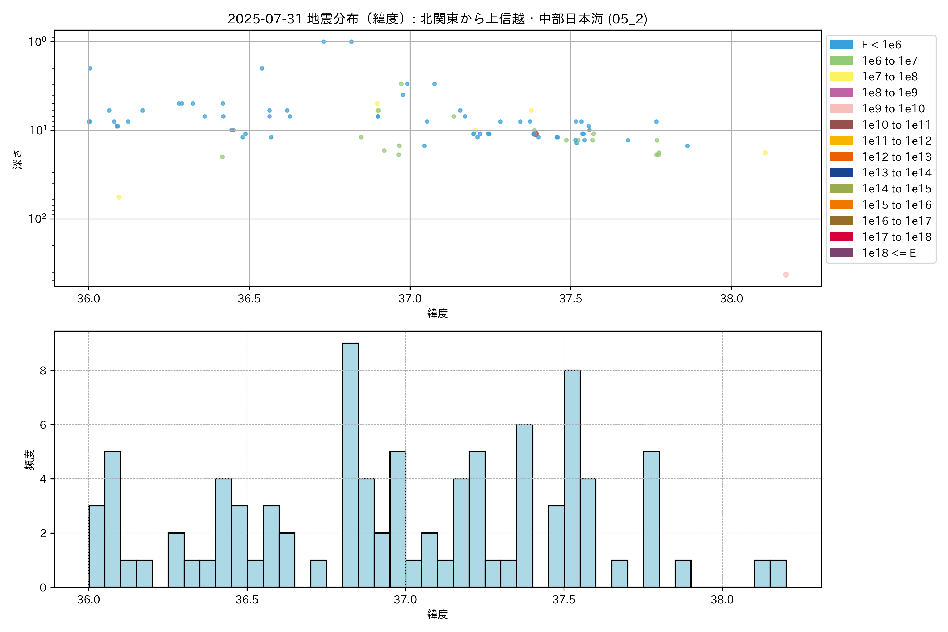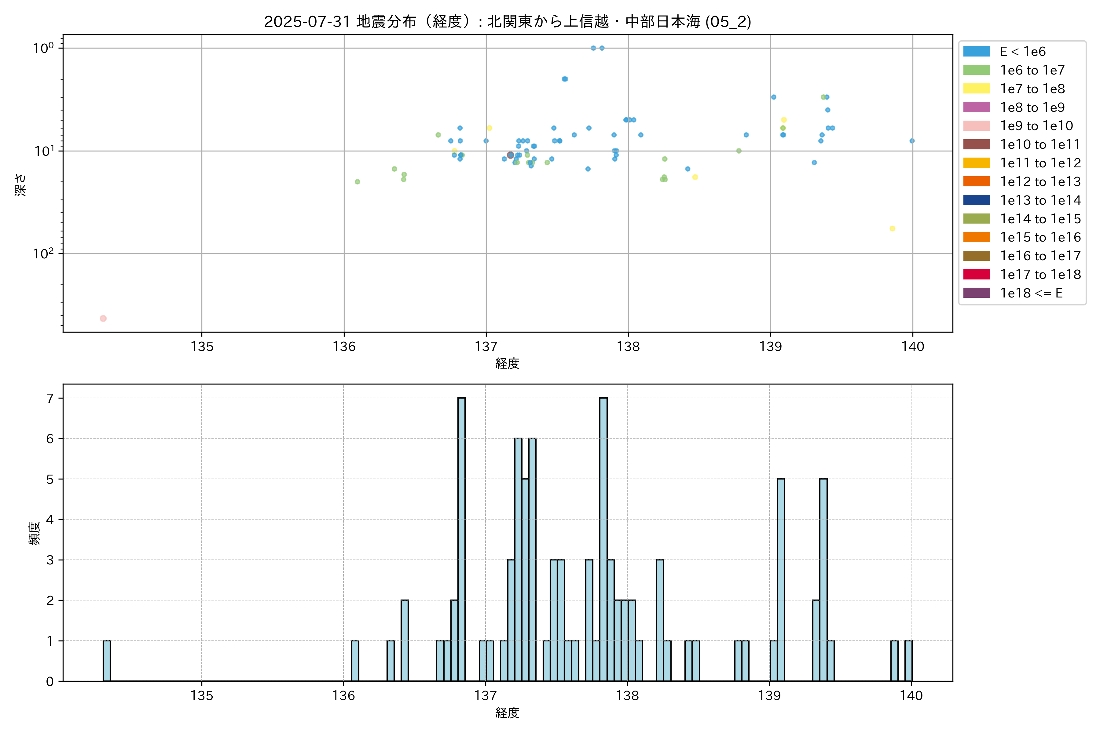 2025年07月31日 北関東から上信越・中部日本海 エリア震源マップ