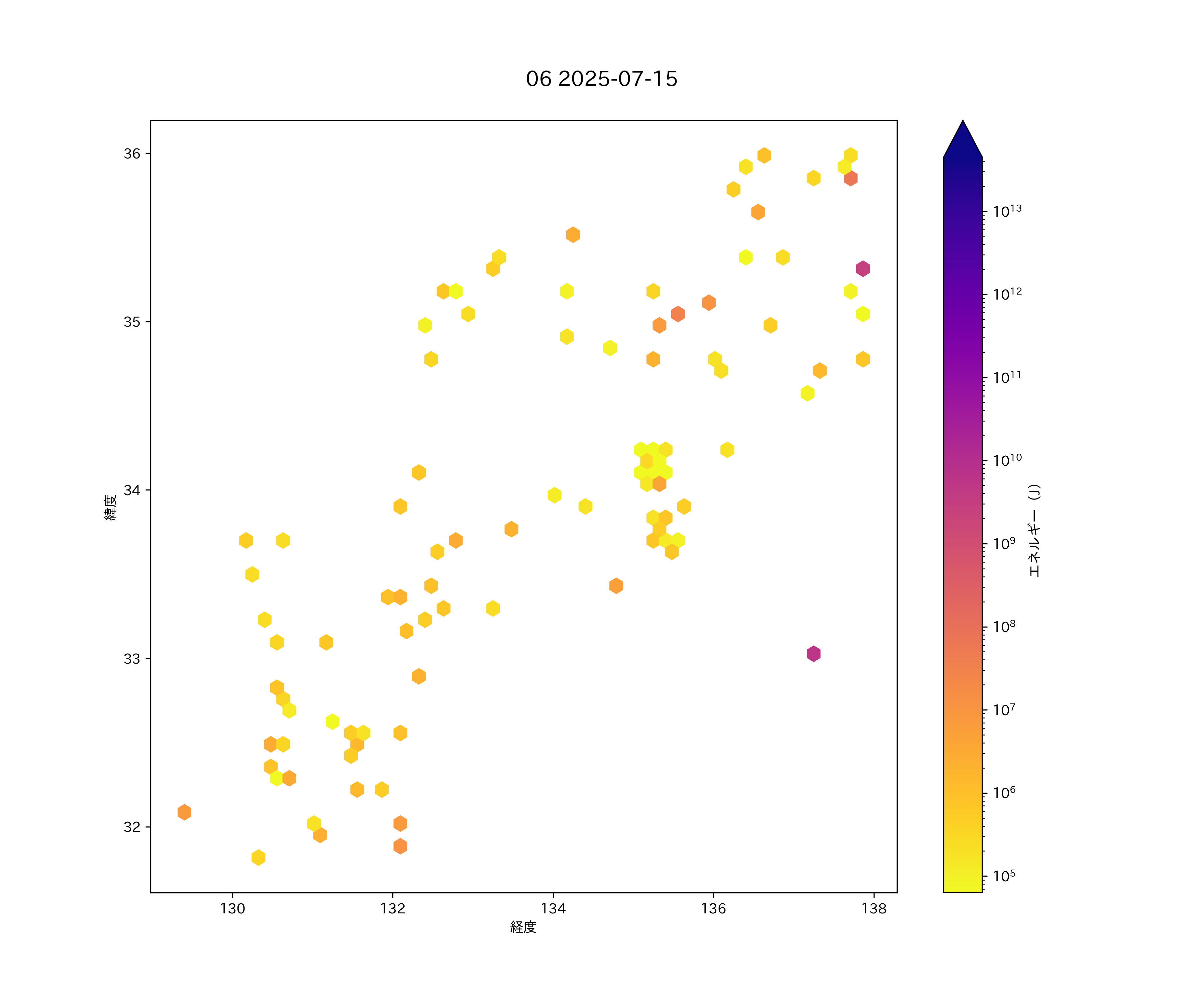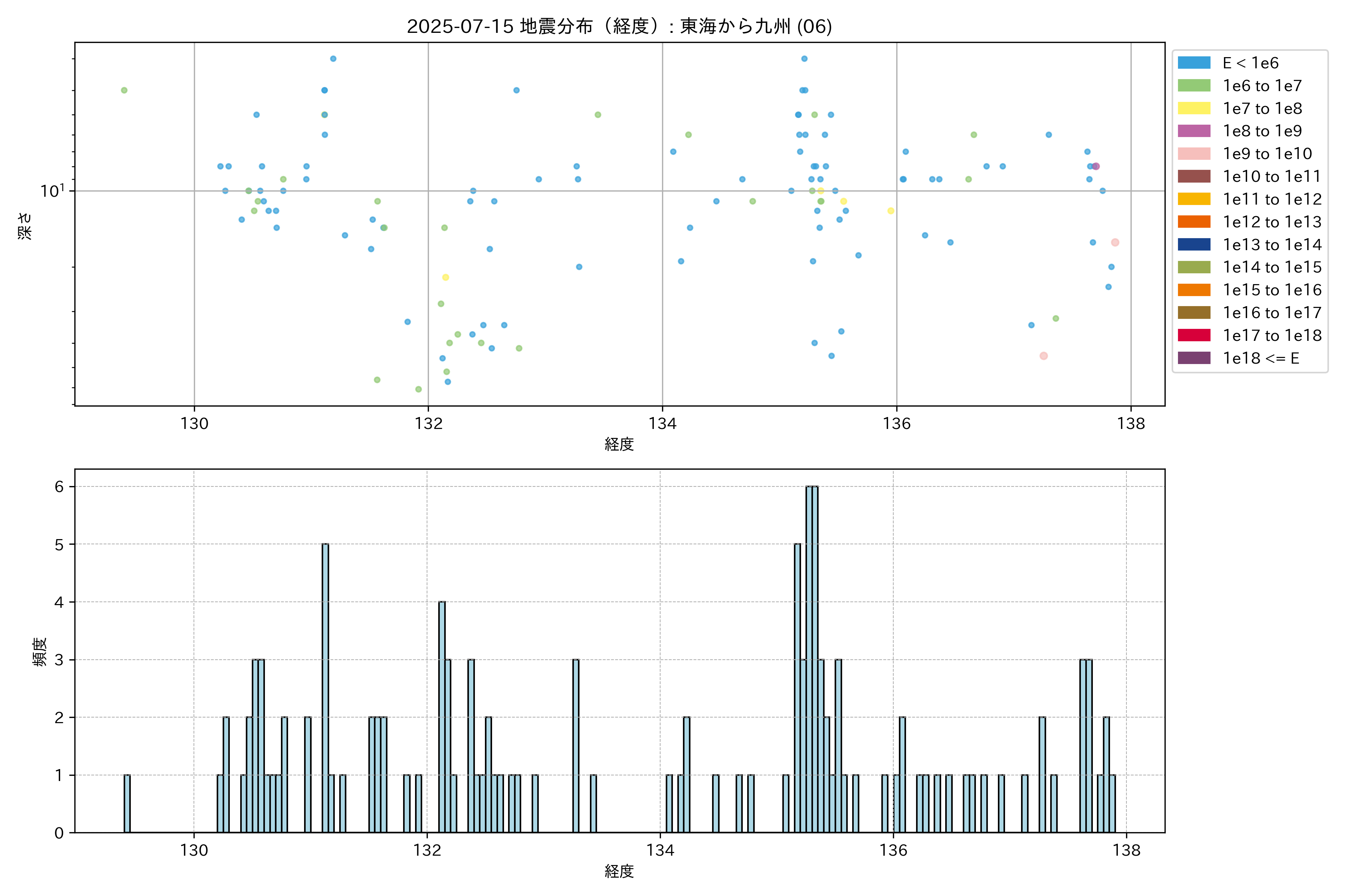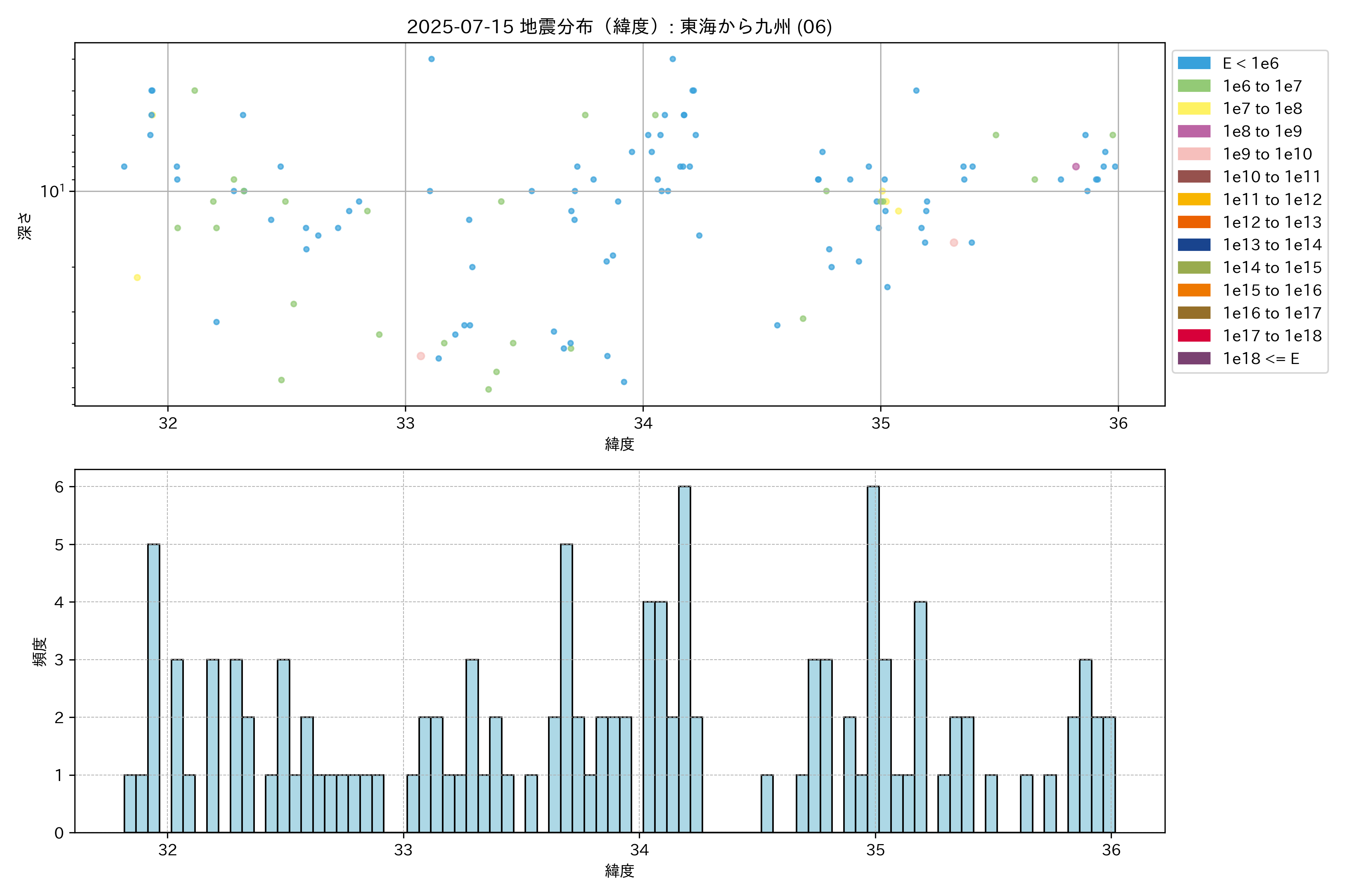2025年07月15日 東海から九州 エリア震源マップ