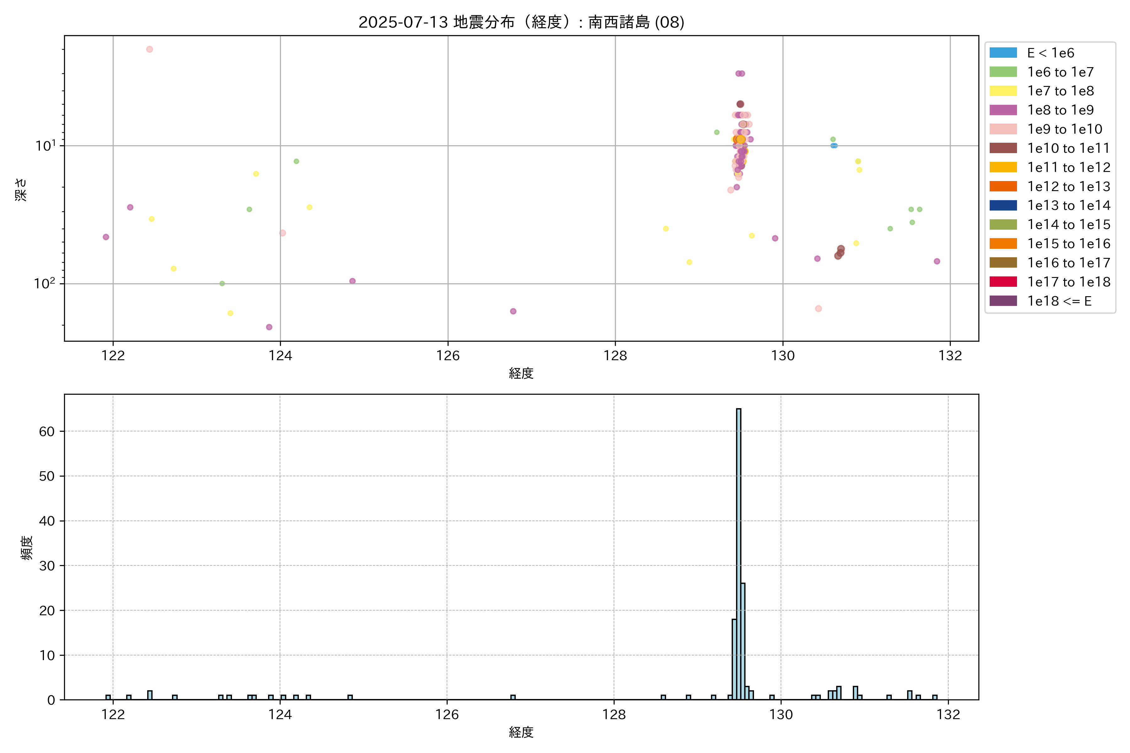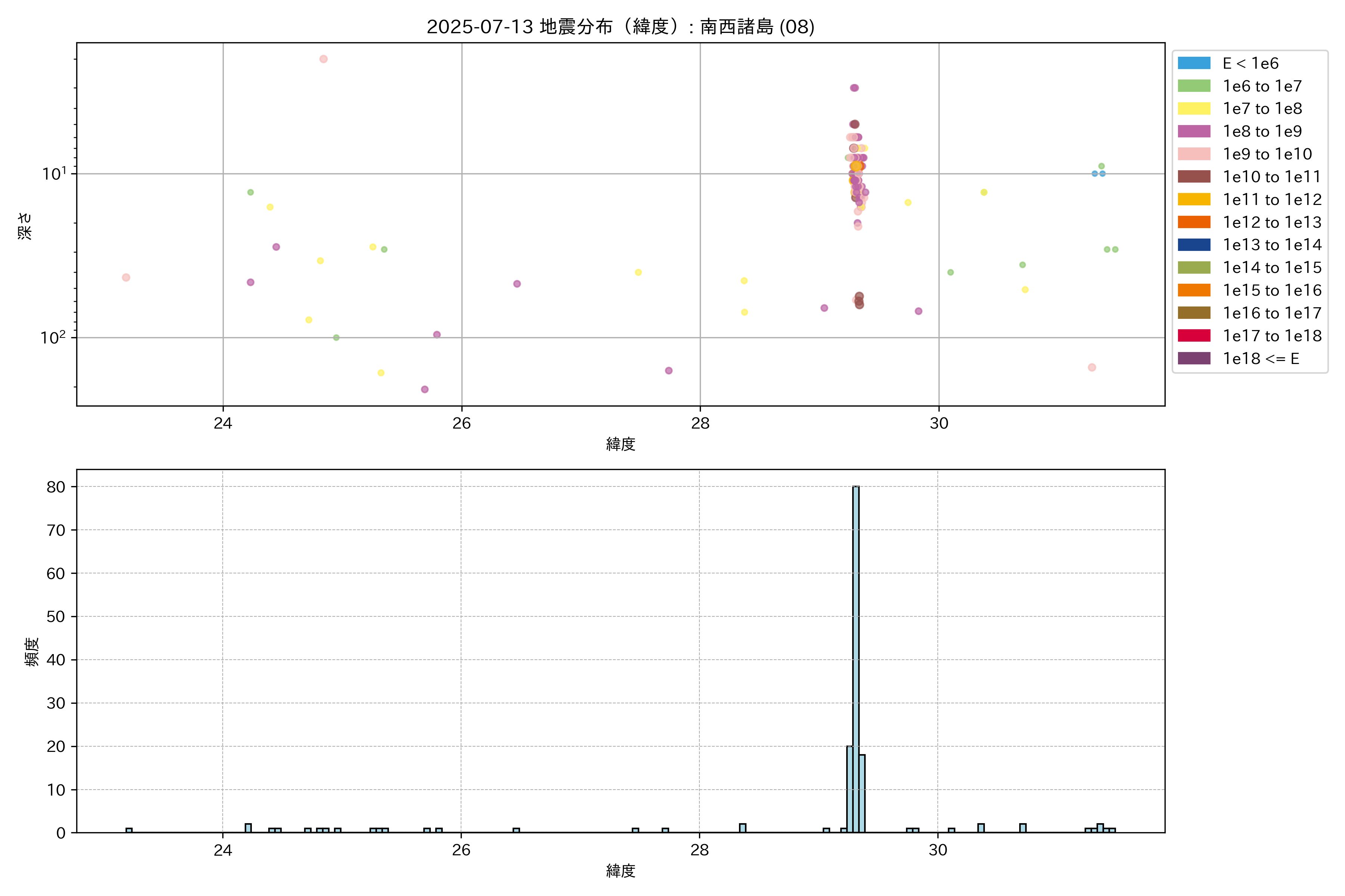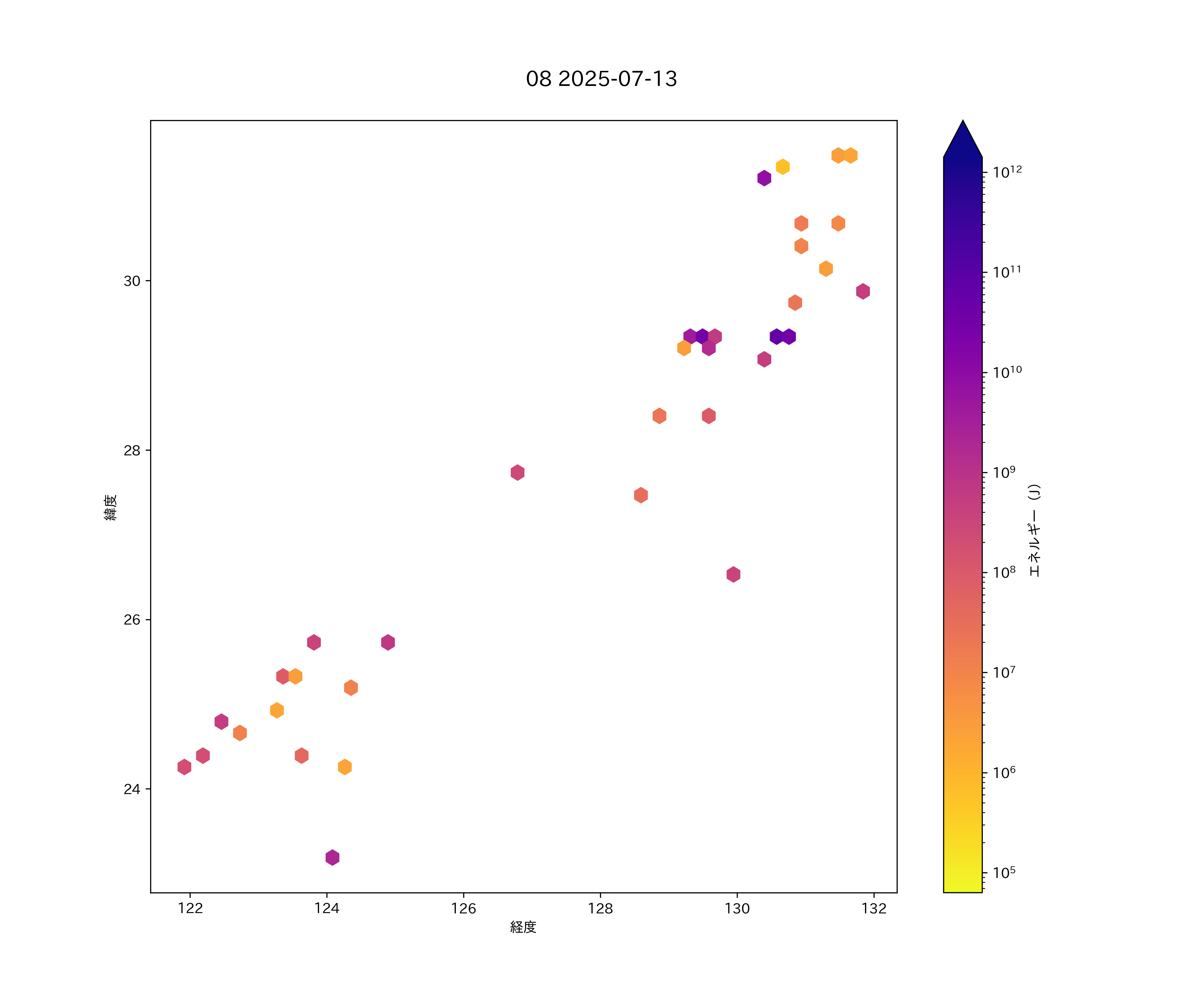 2025年07月13日 南西諸島 エリア震源マップ