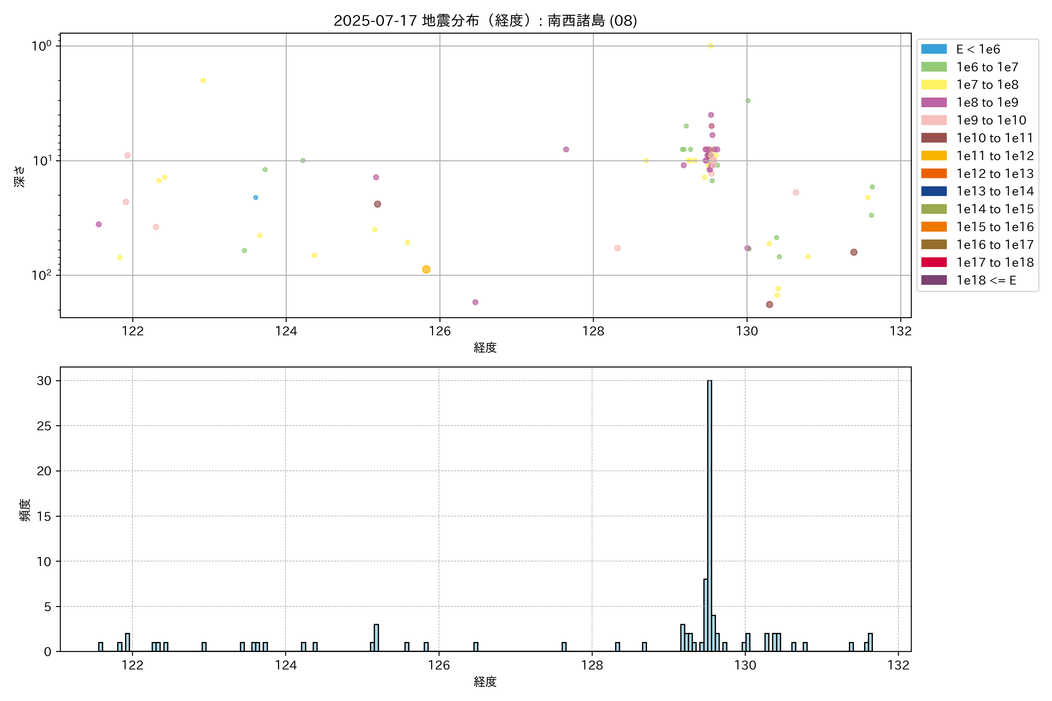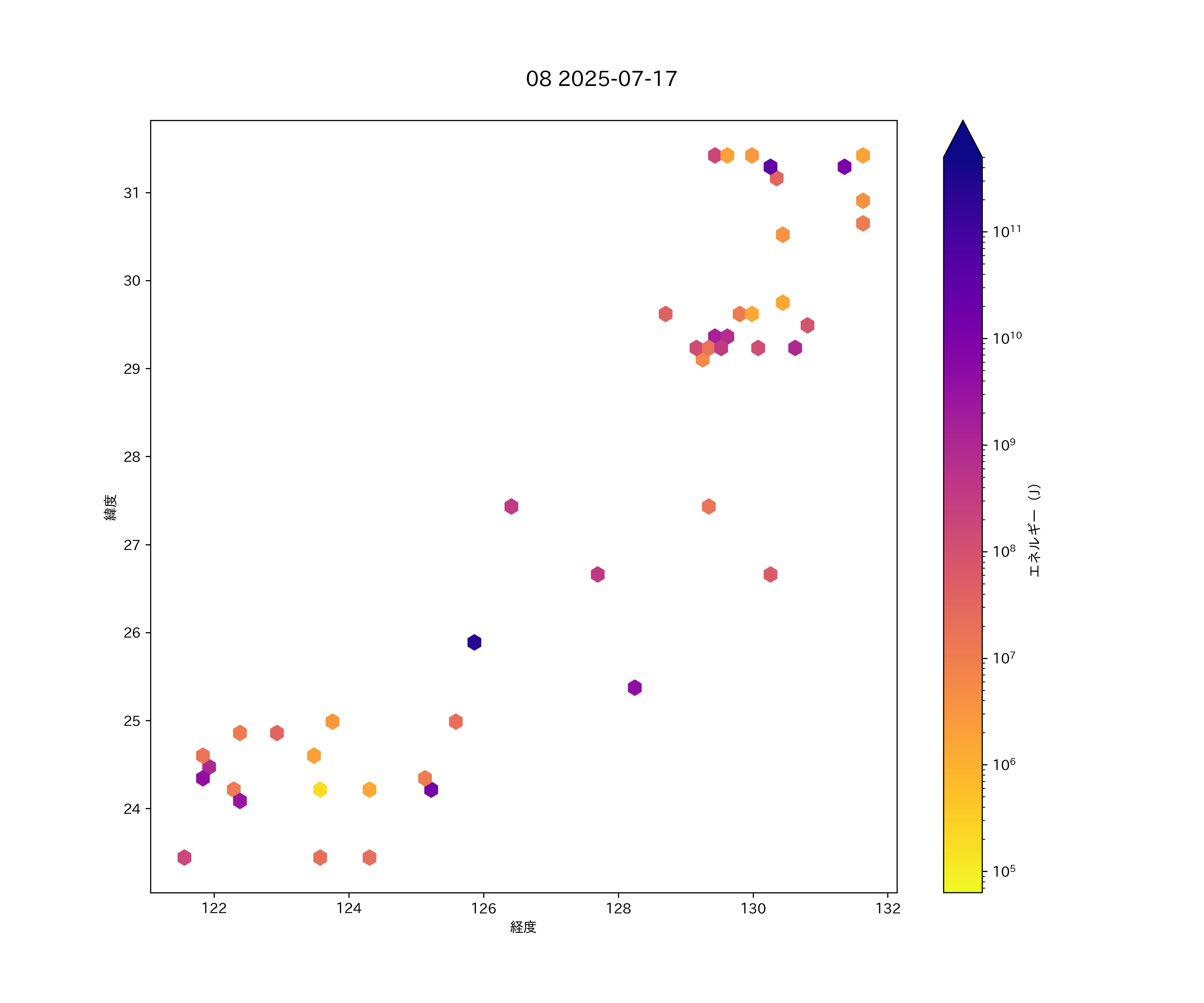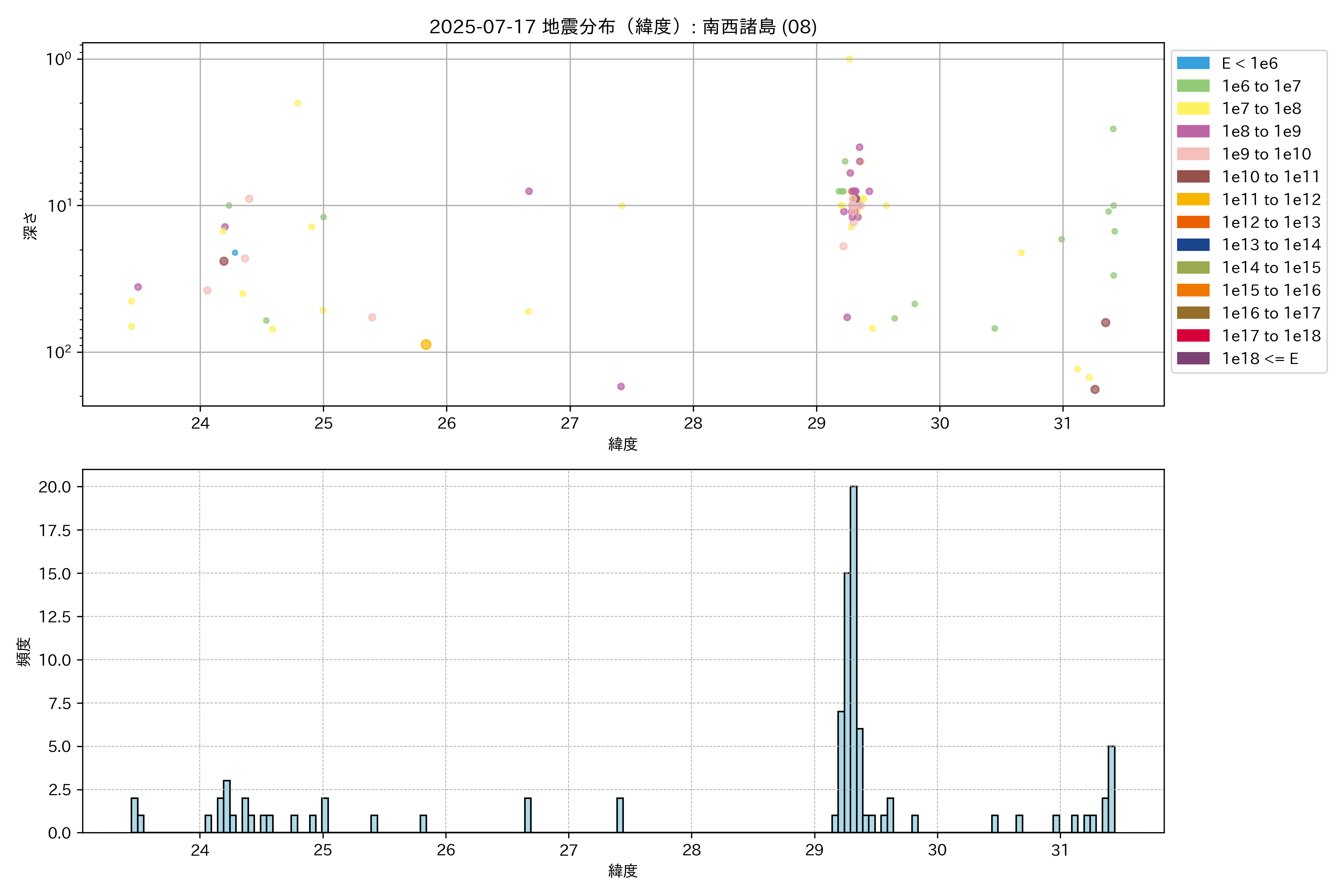 2025年07月17日 南西諸島 エリア震源マップ