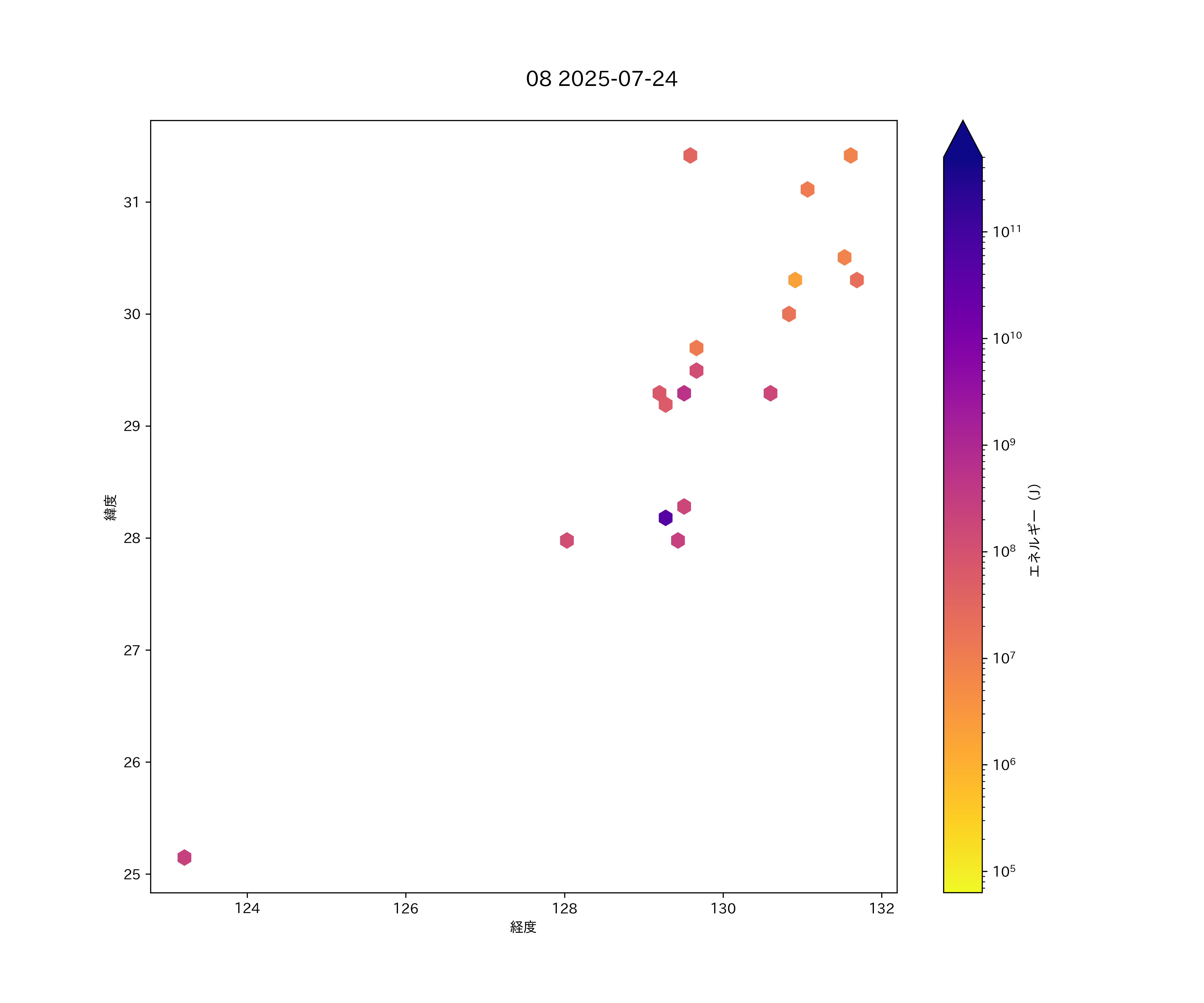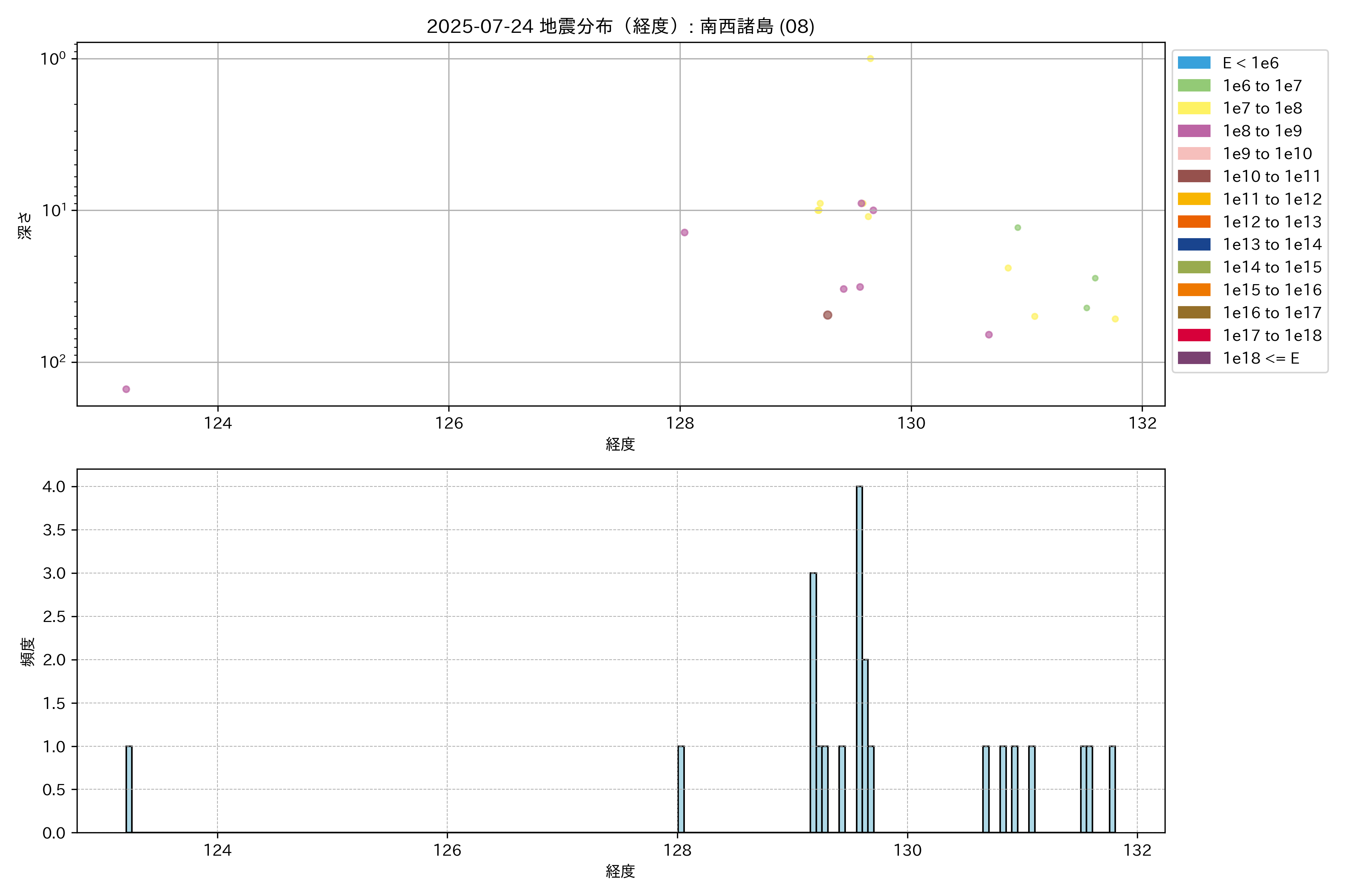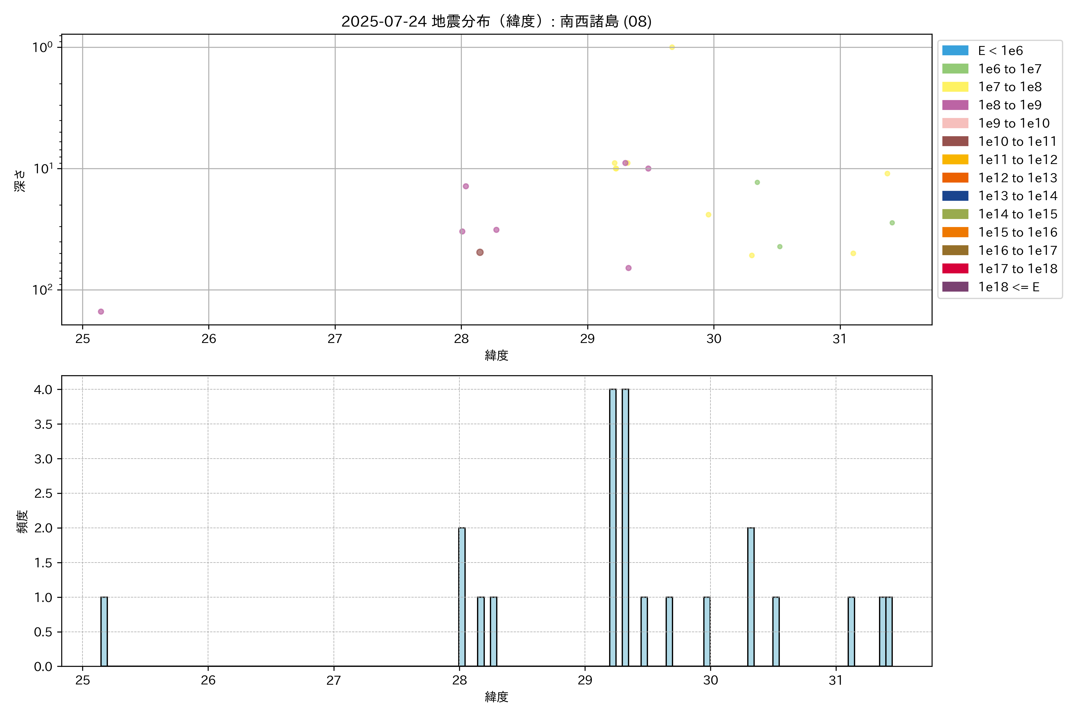 2025年07月24日 南西諸島 エリア震源マップ