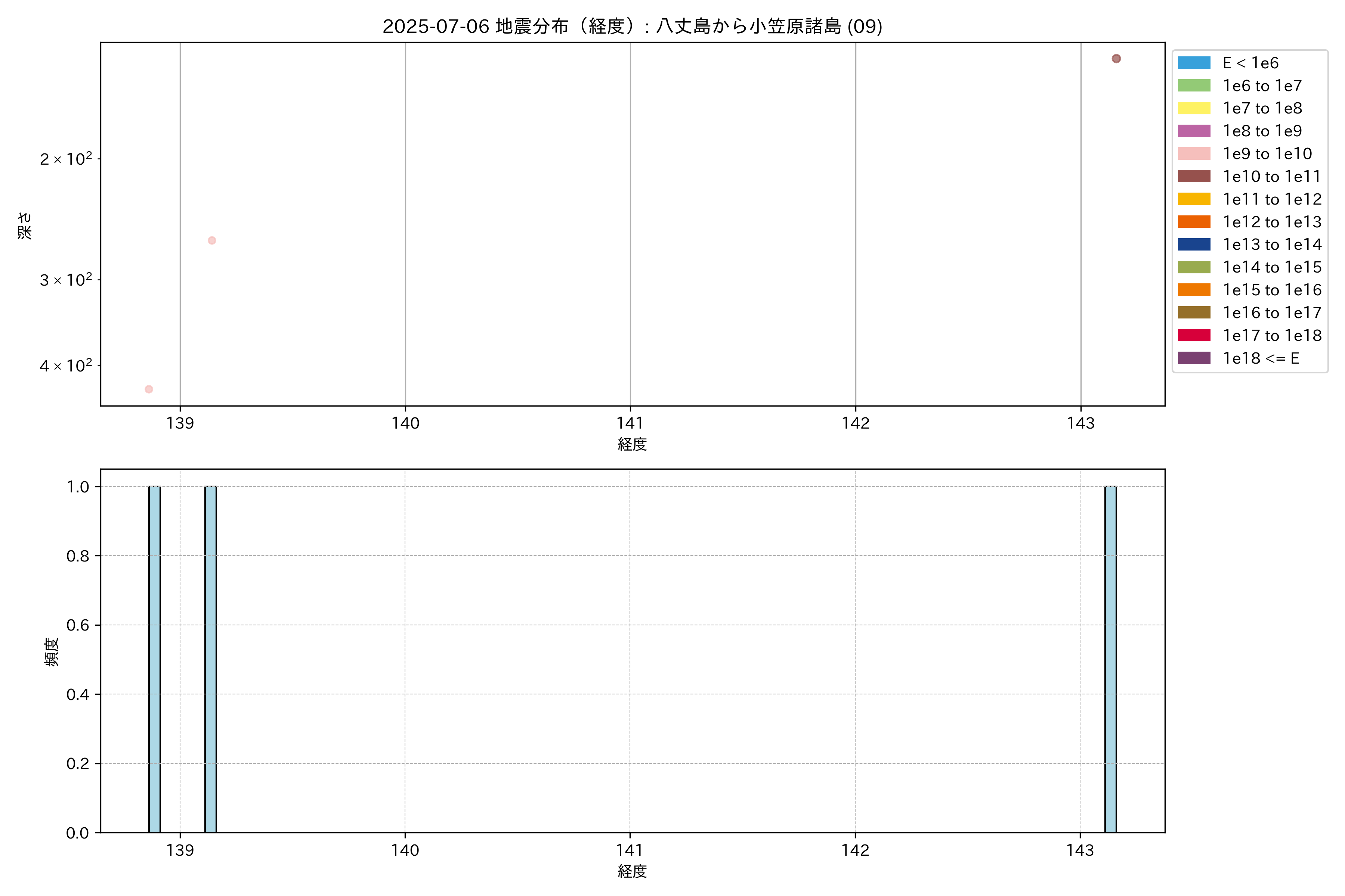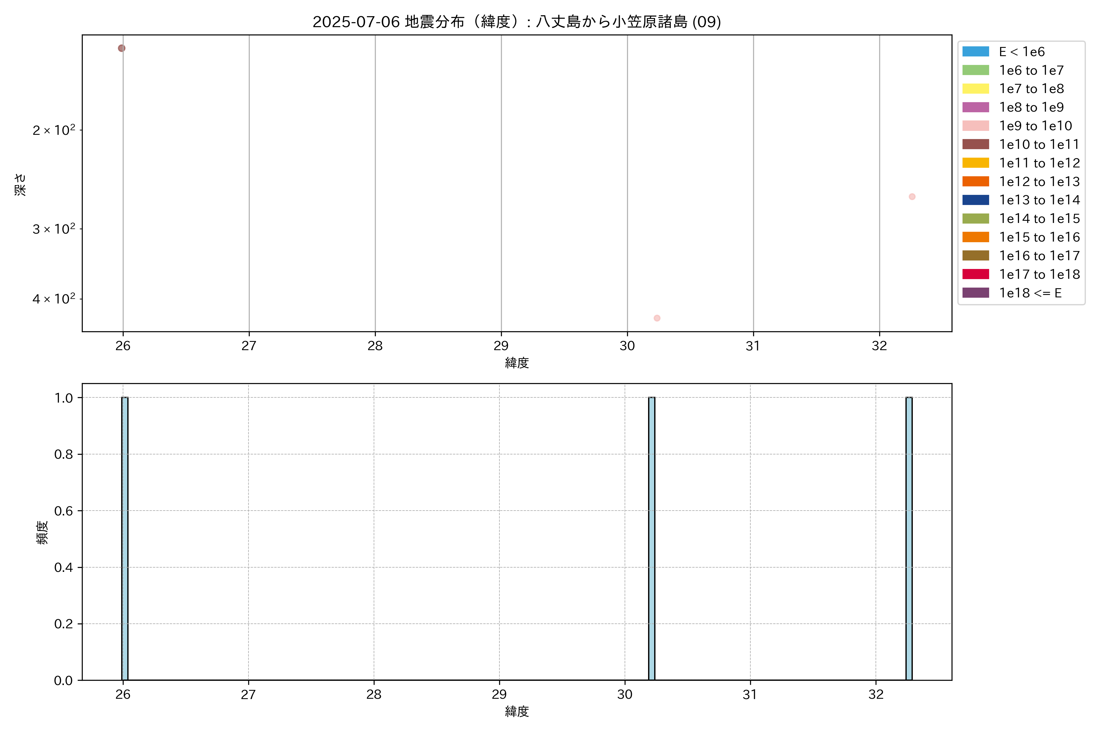 2025年07月06日 八丈島から小笠原諸島 エリア震源マップ
