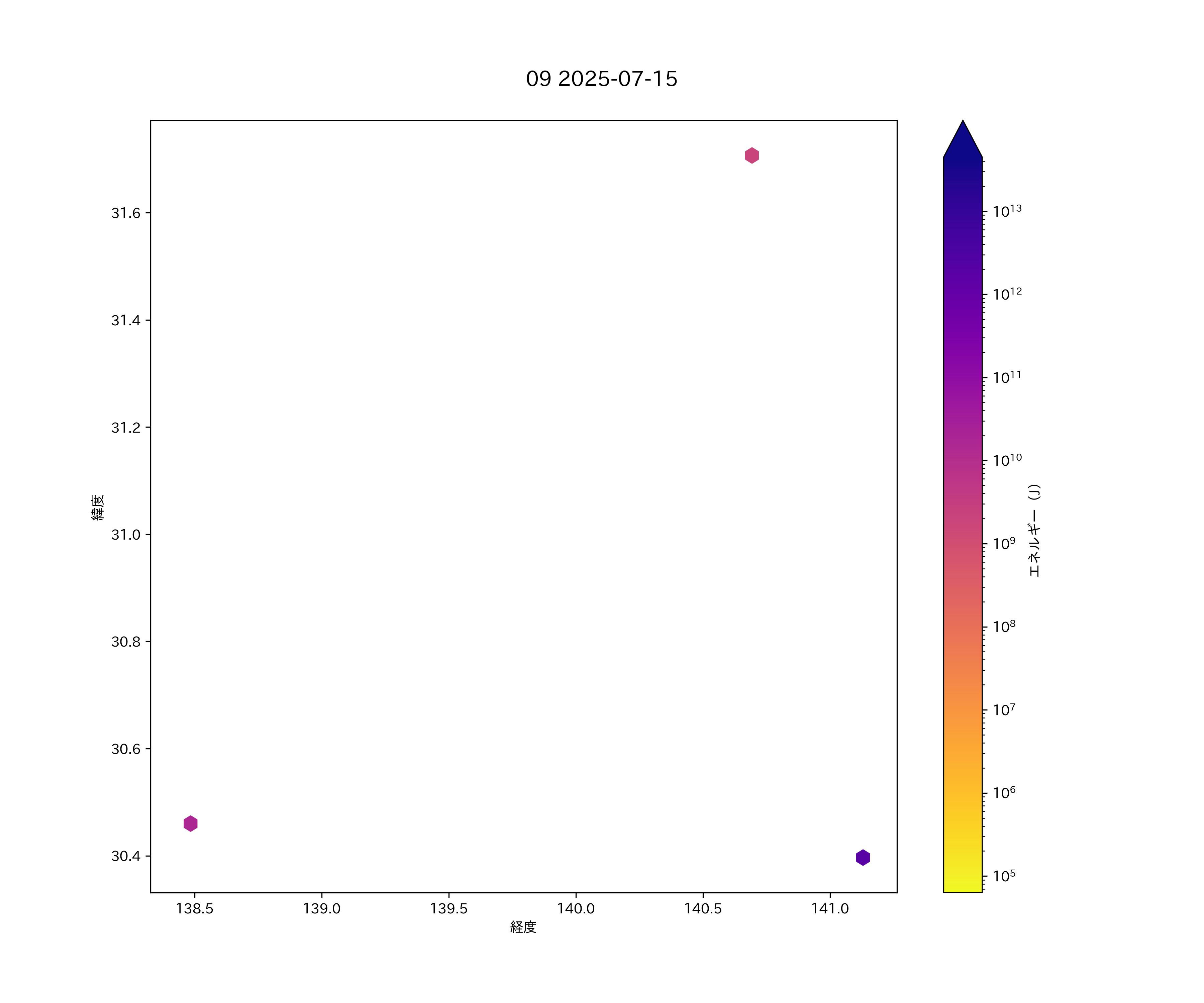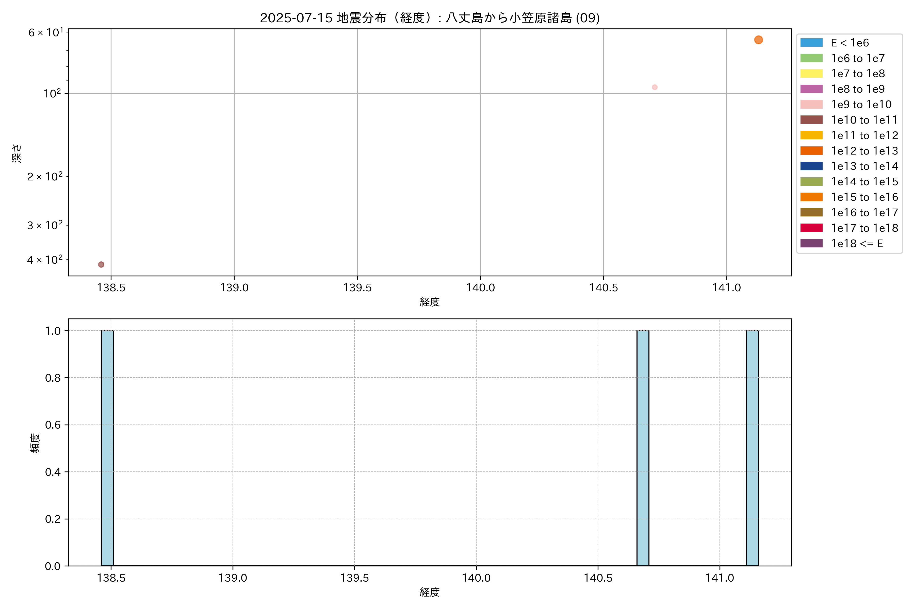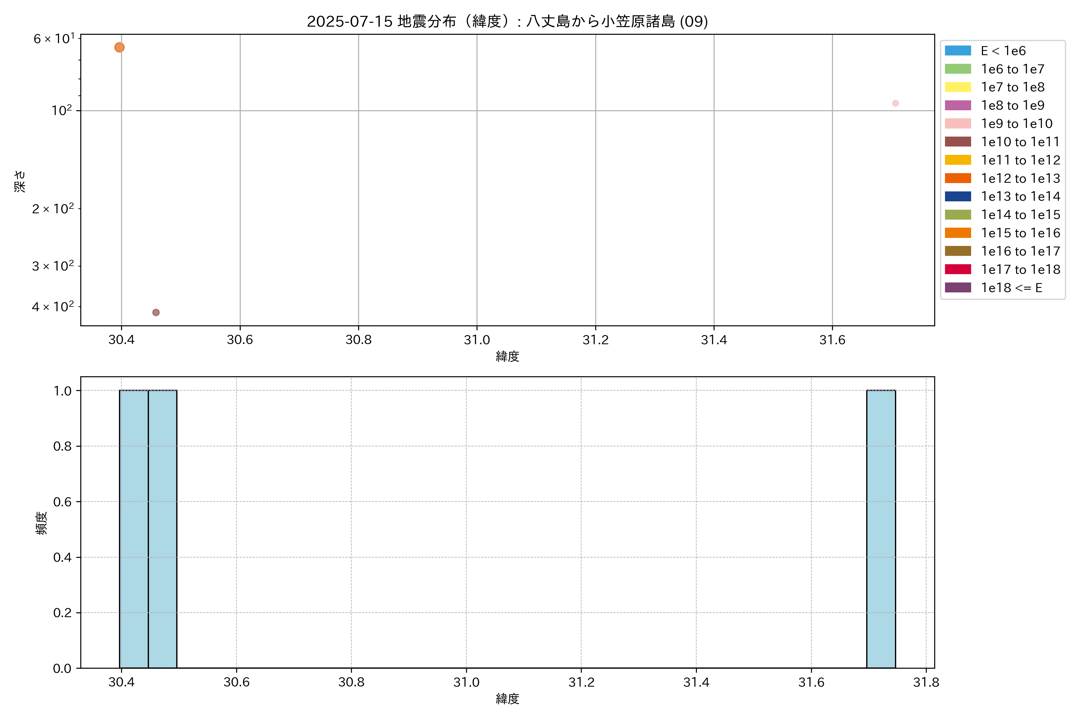 2025年07月15日 八丈島から小笠原諸島 エリア震源マップ