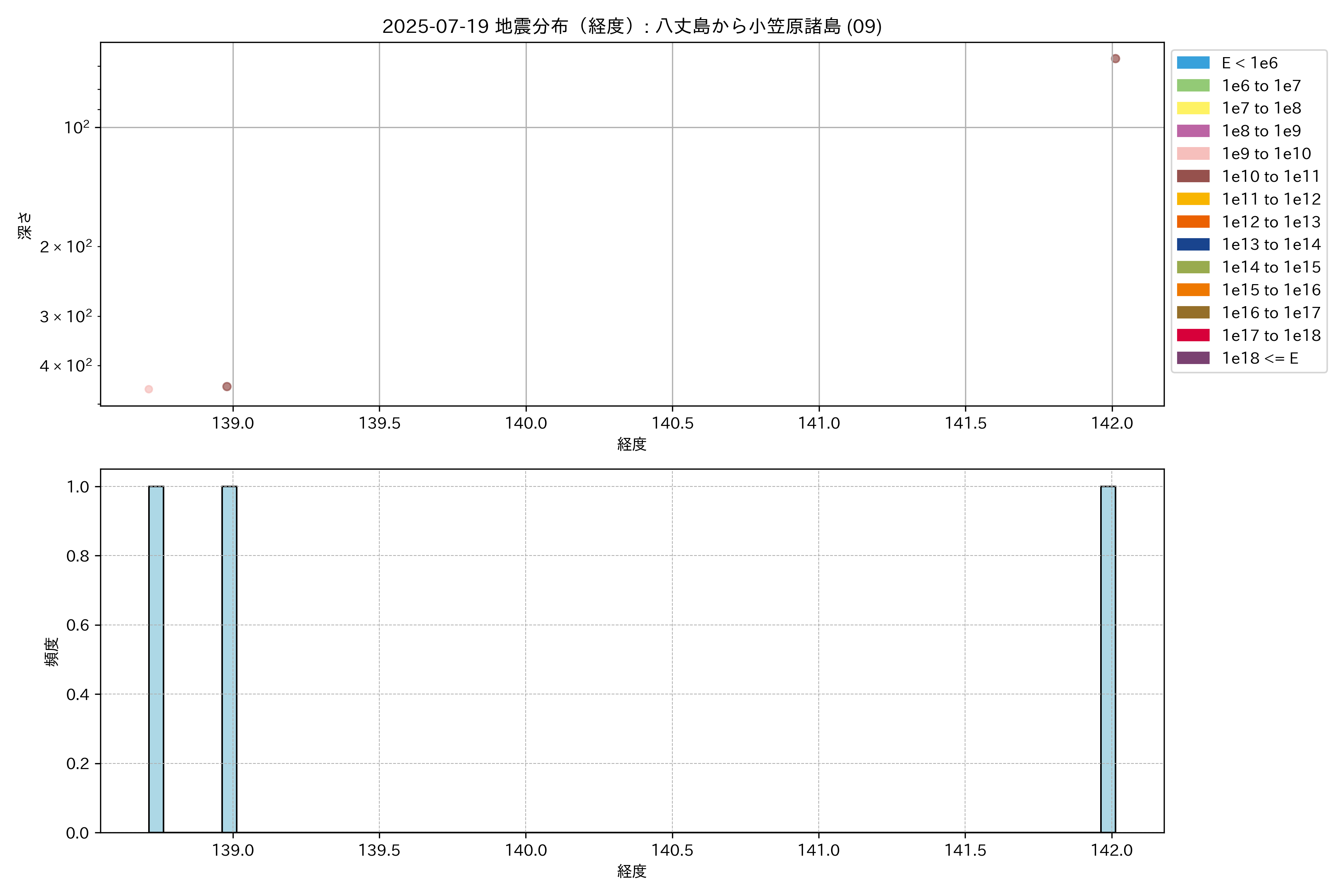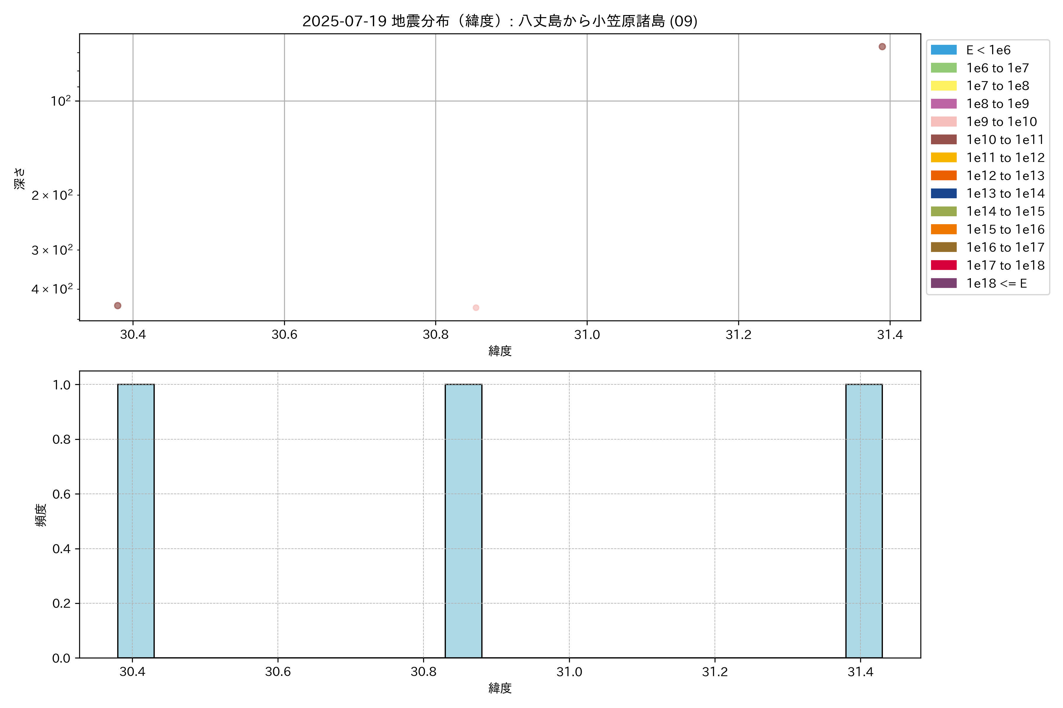 2025年07月19日 八丈島から小笠原諸島 エリア震源マップ