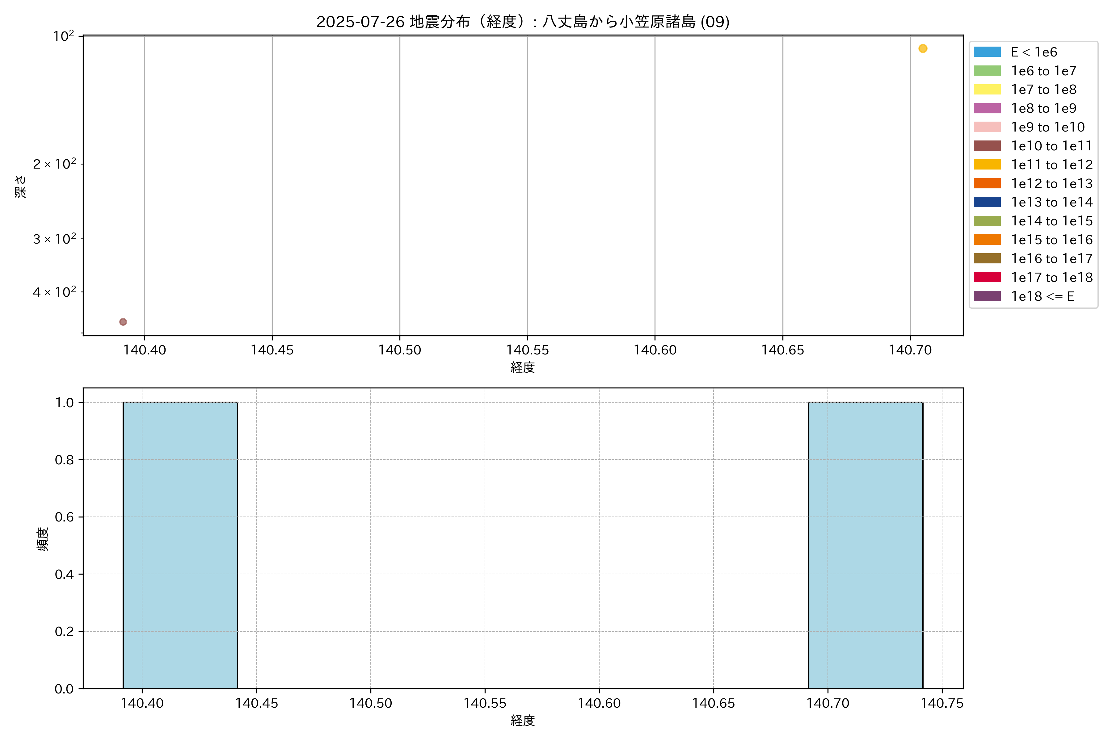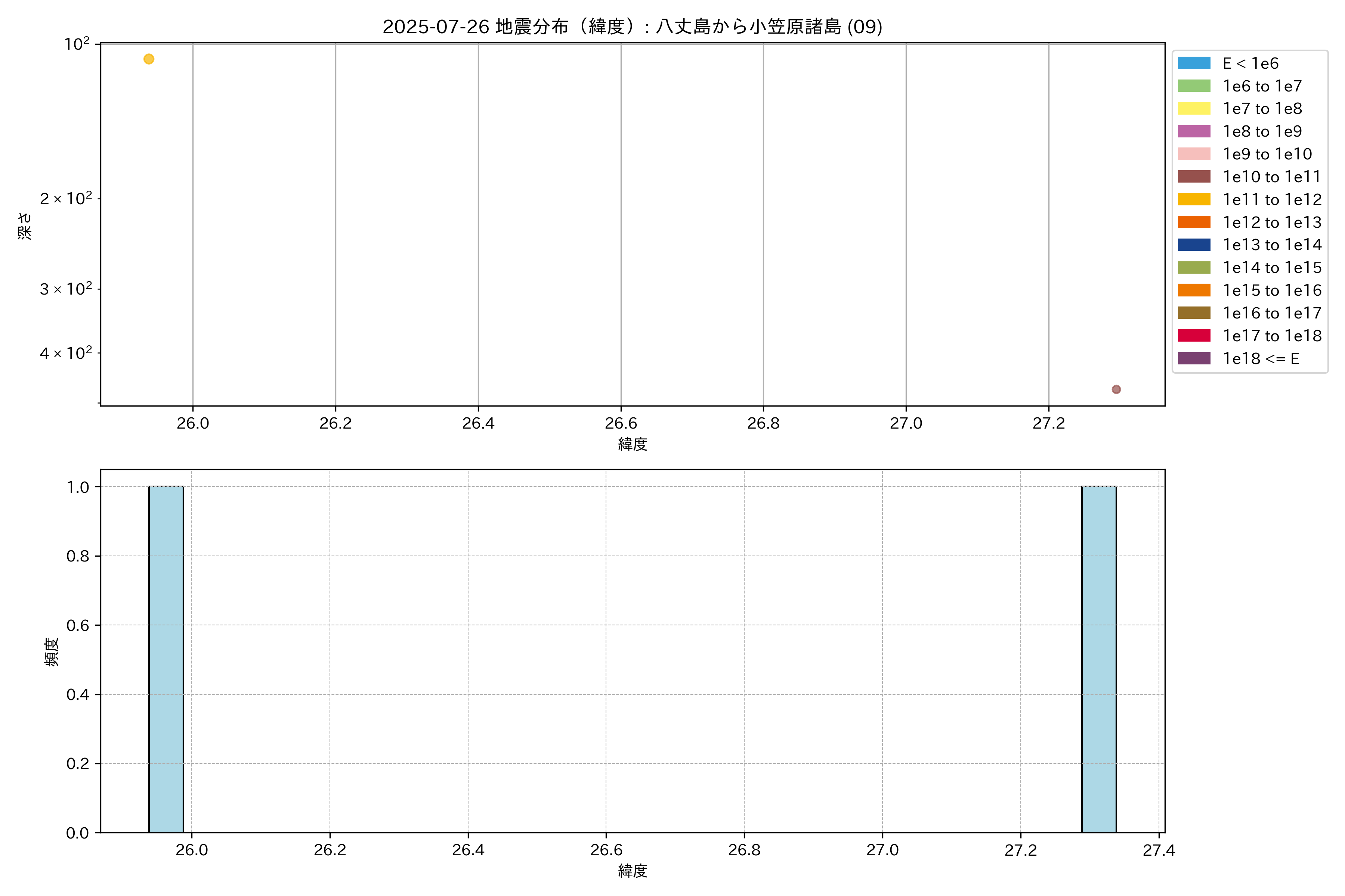 2025年07月26日 八丈島から小笠原諸島 エリア震源マップ