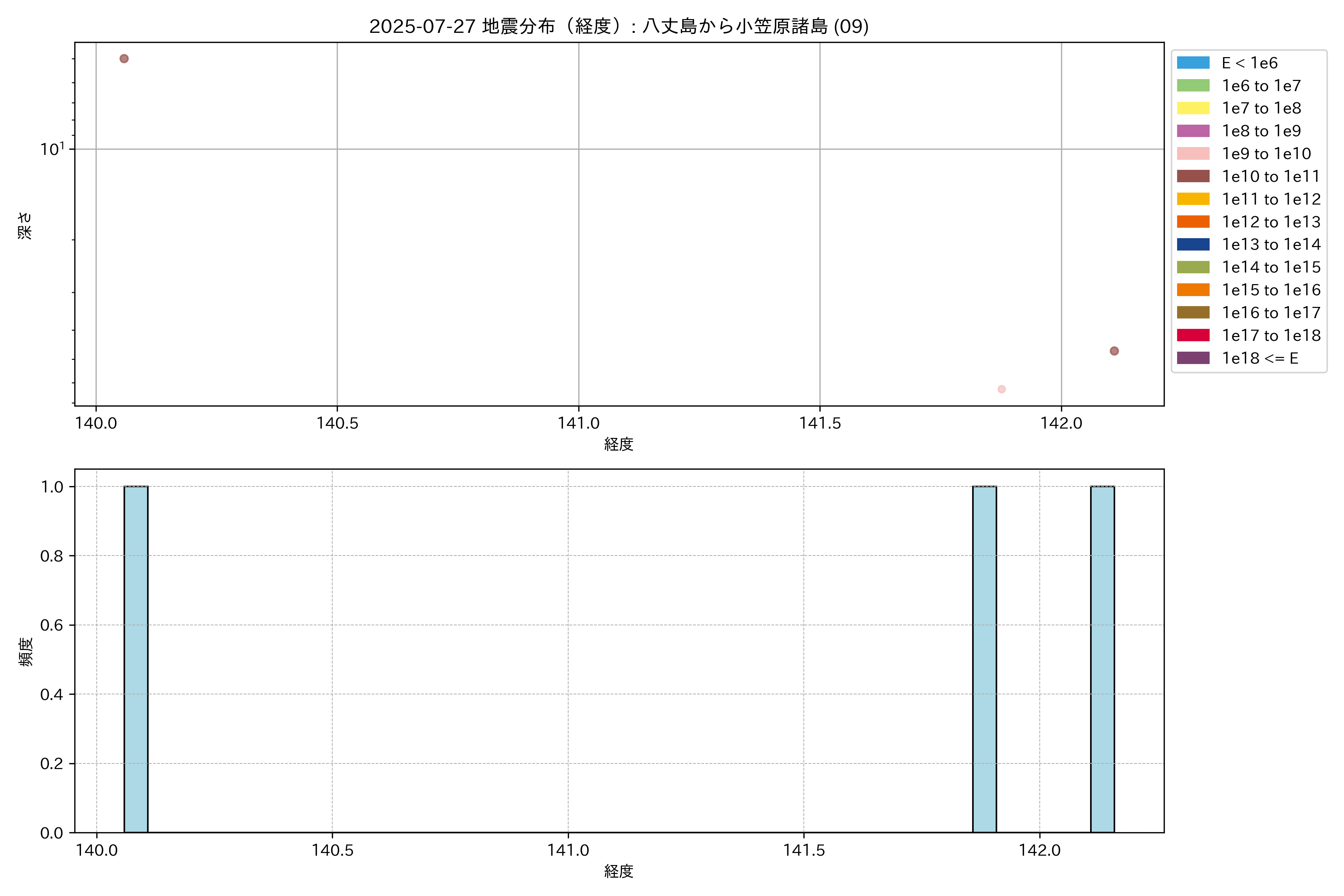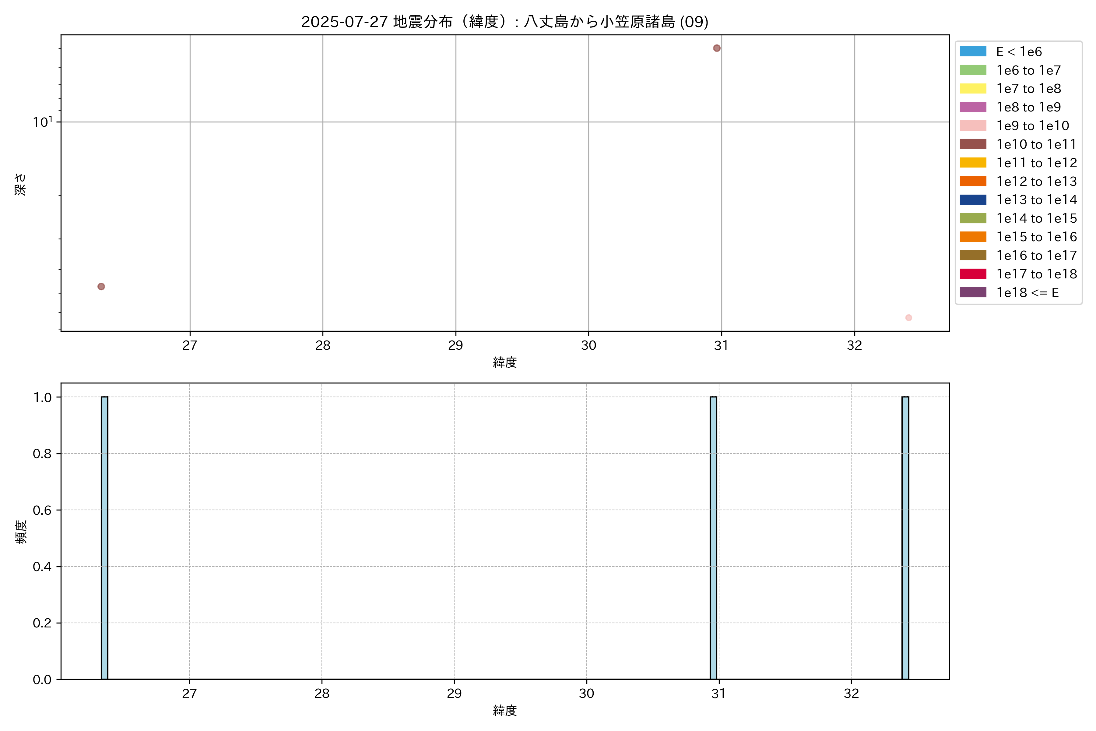 2025年07月27日 八丈島から小笠原諸島 エリア震源マップ
