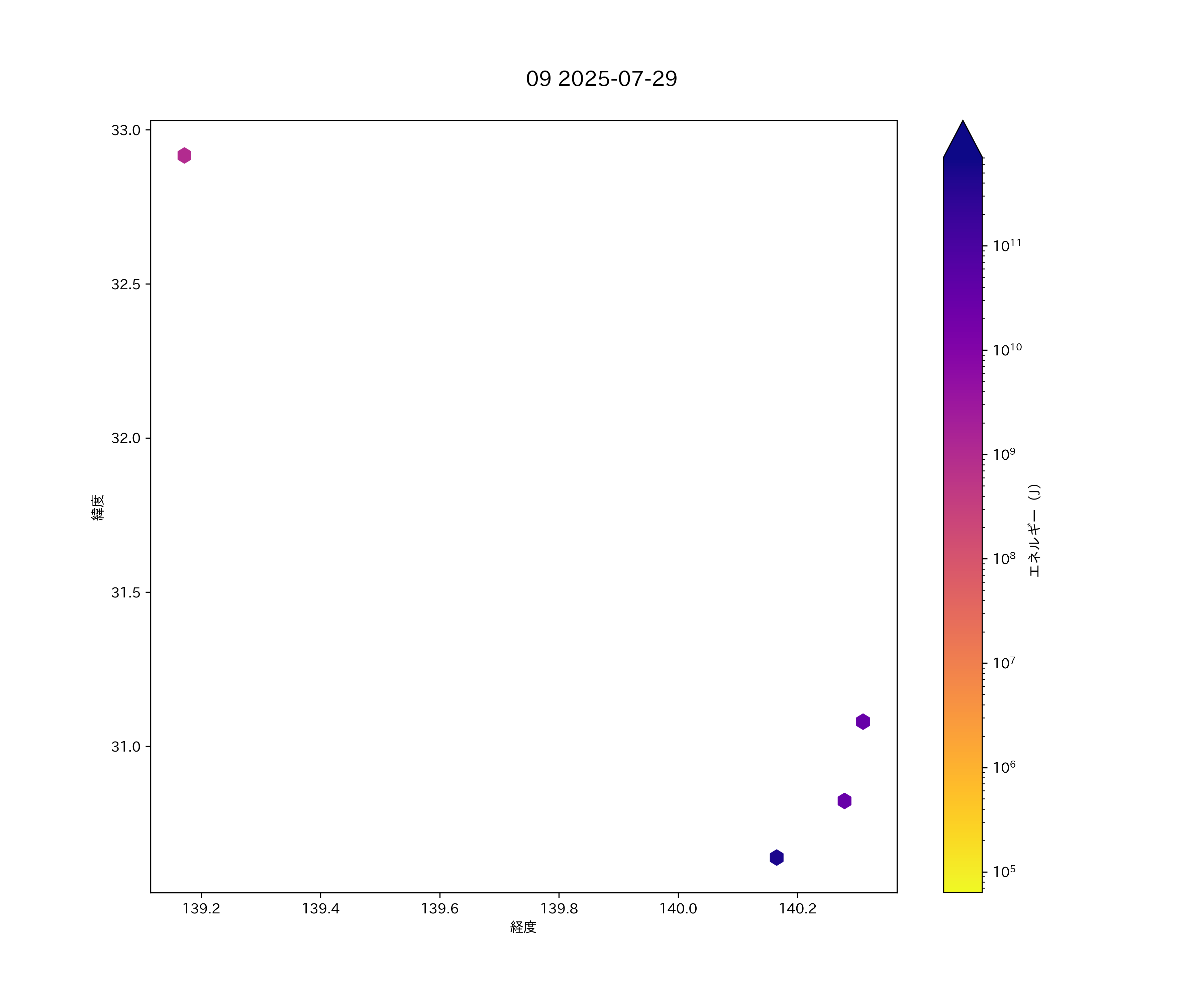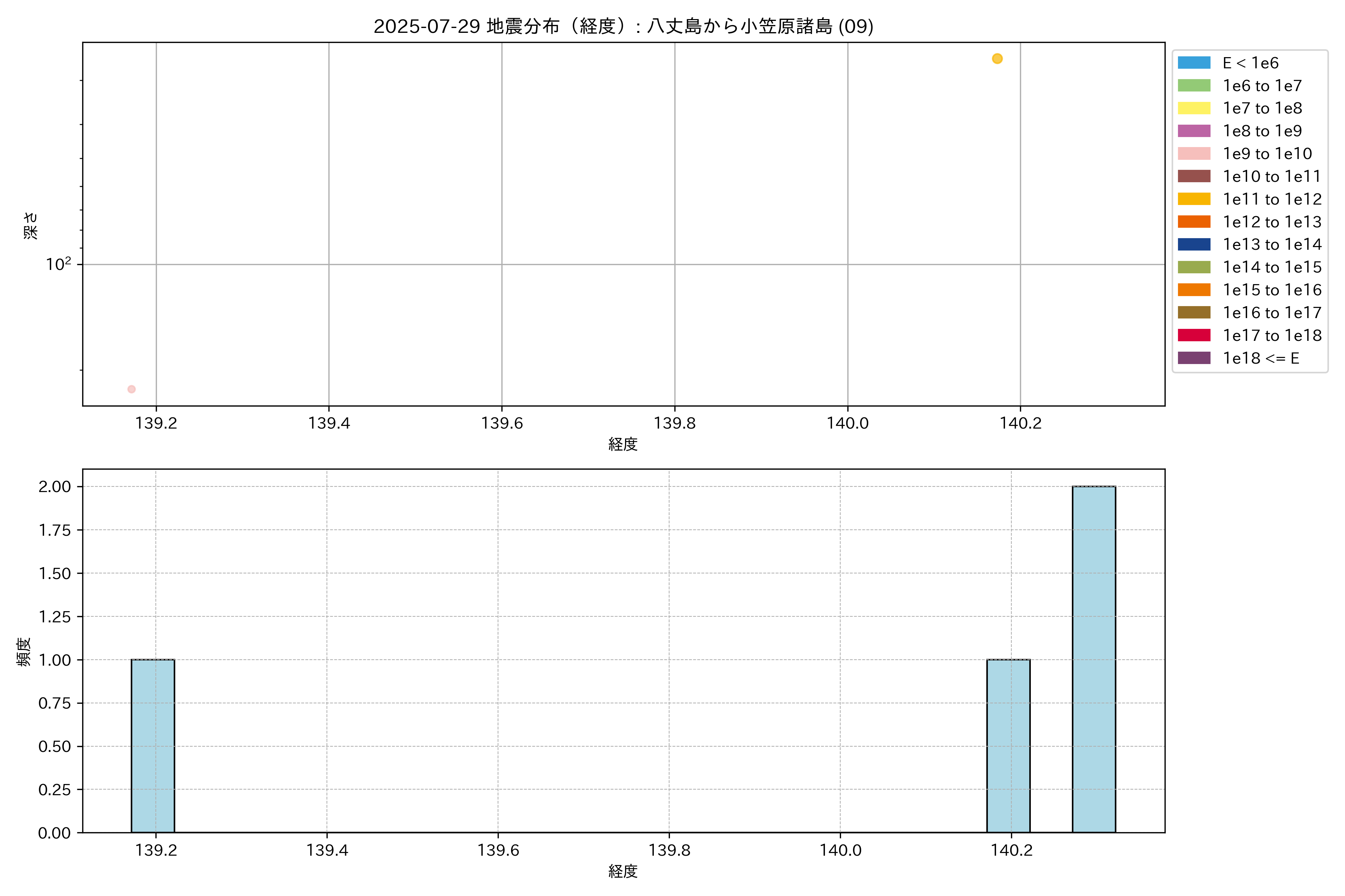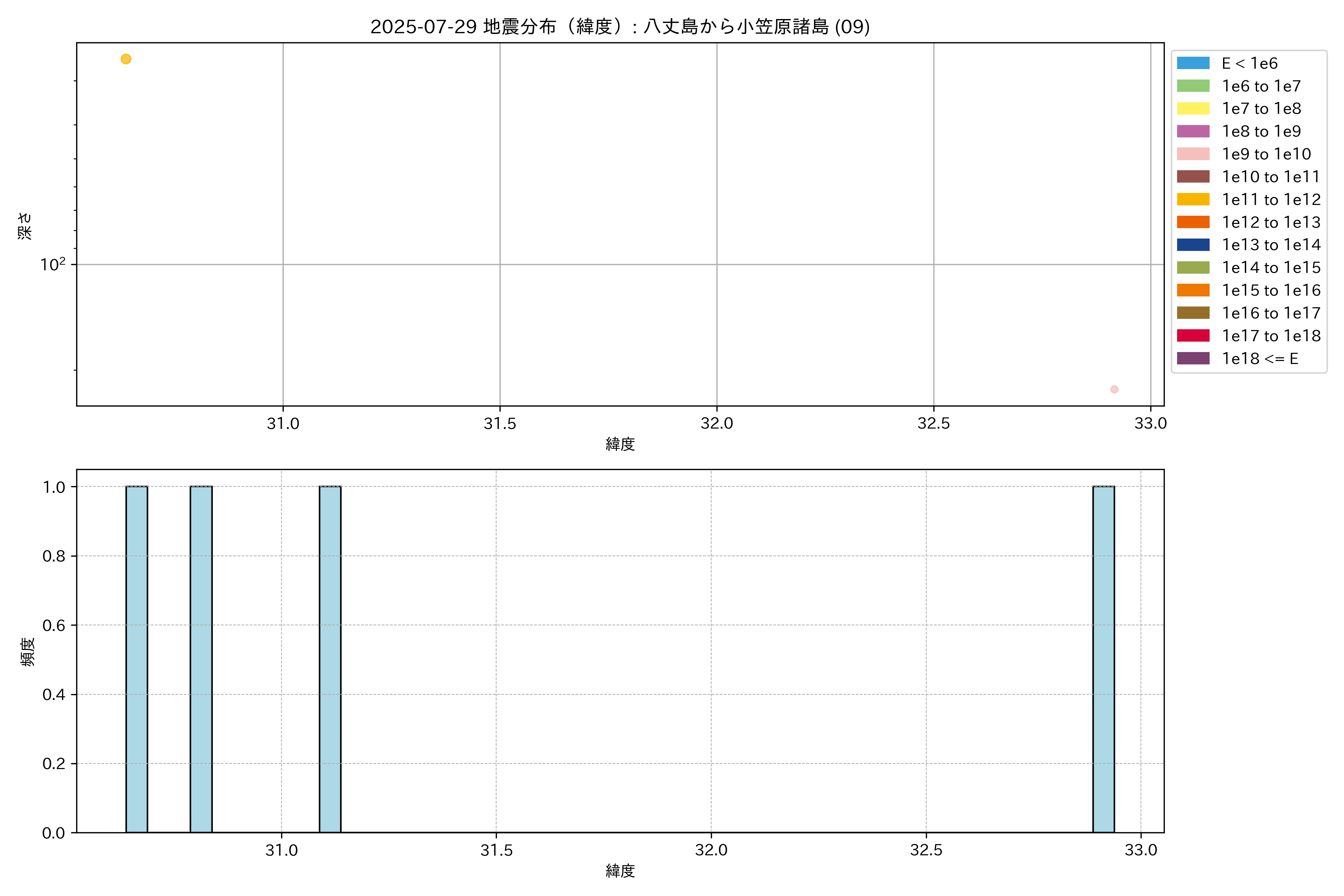 2025年07月29日 八丈島から小笠原諸島 エリア震源マップ