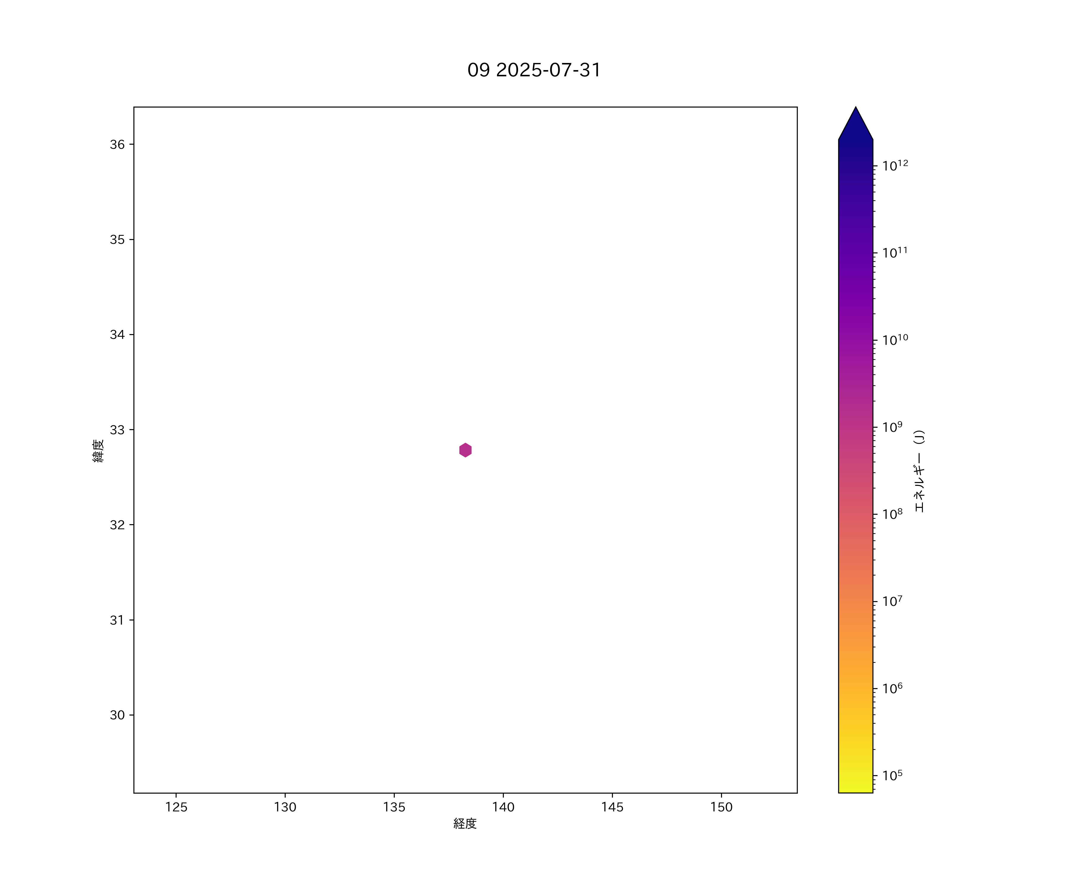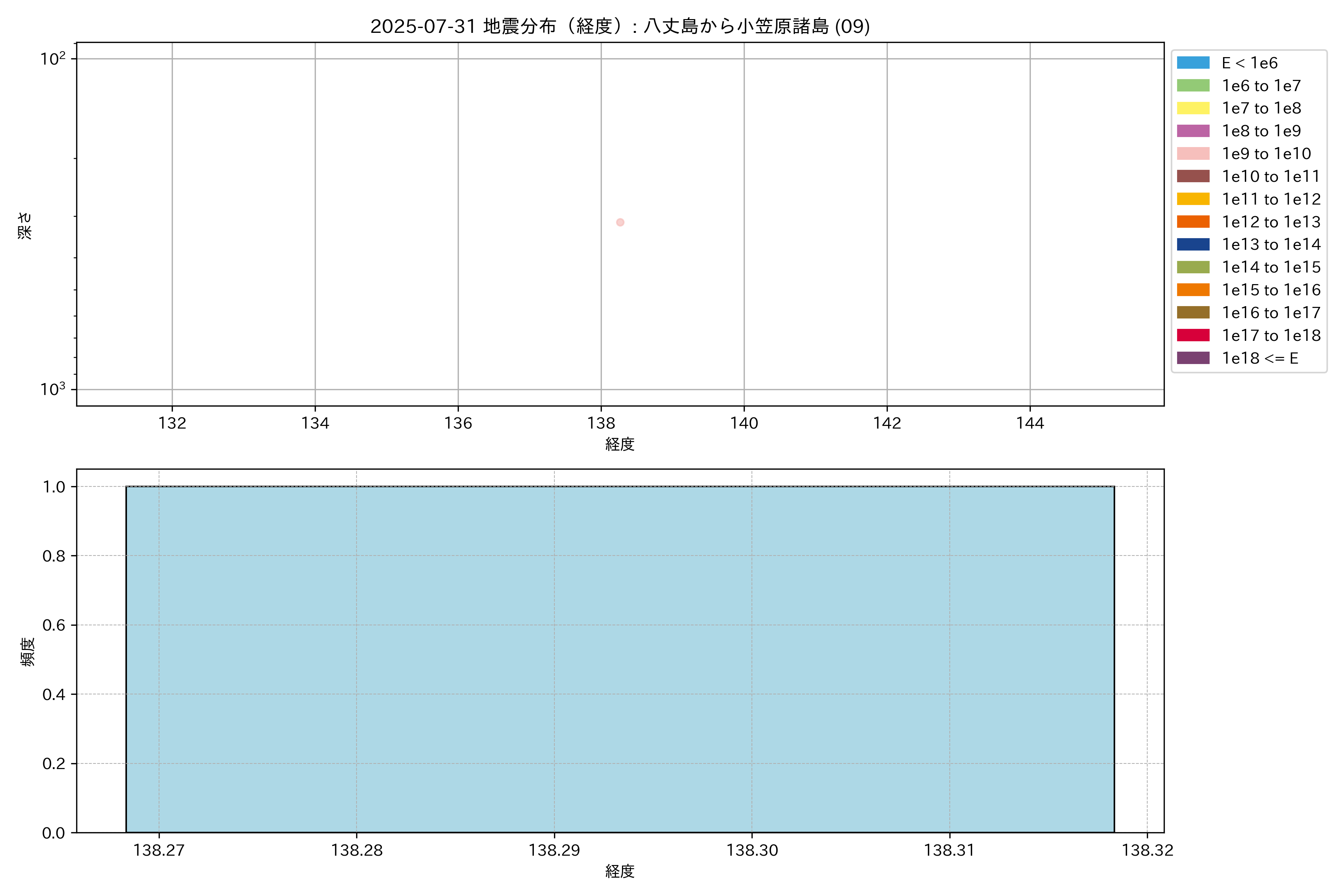 2025年07月31日 八丈島から小笠原諸島 エリア震源マップ
